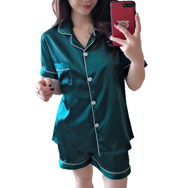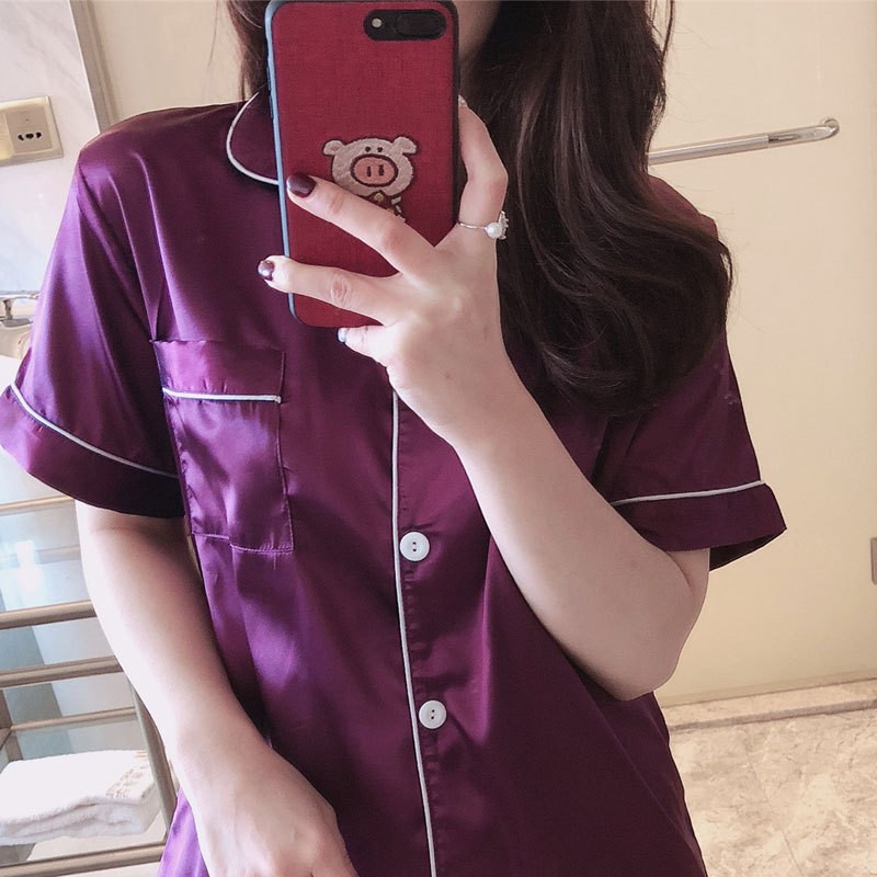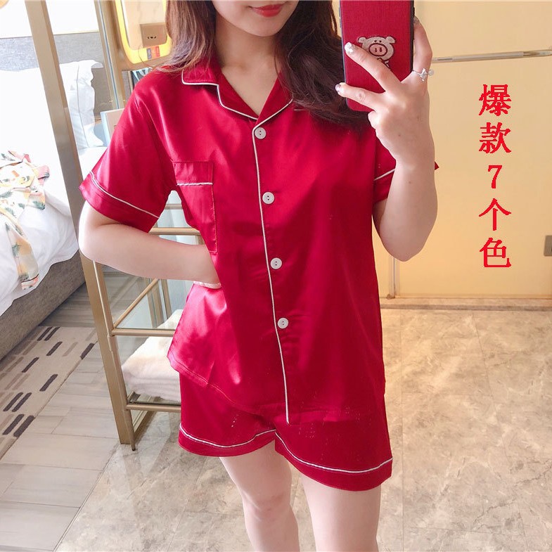 잠옷 여자의 여름 학생 반팔 아이스 실크 모조 실크 가정 옷 여름 달콤한 느슨한 얇은 2 피스 세트