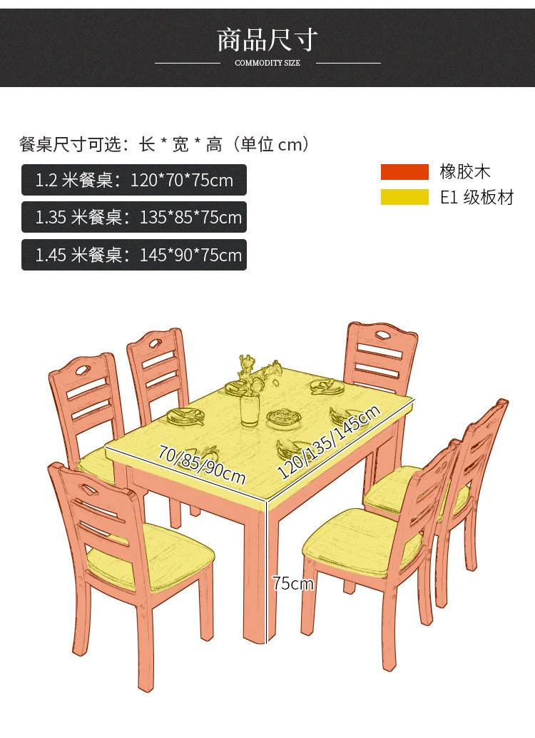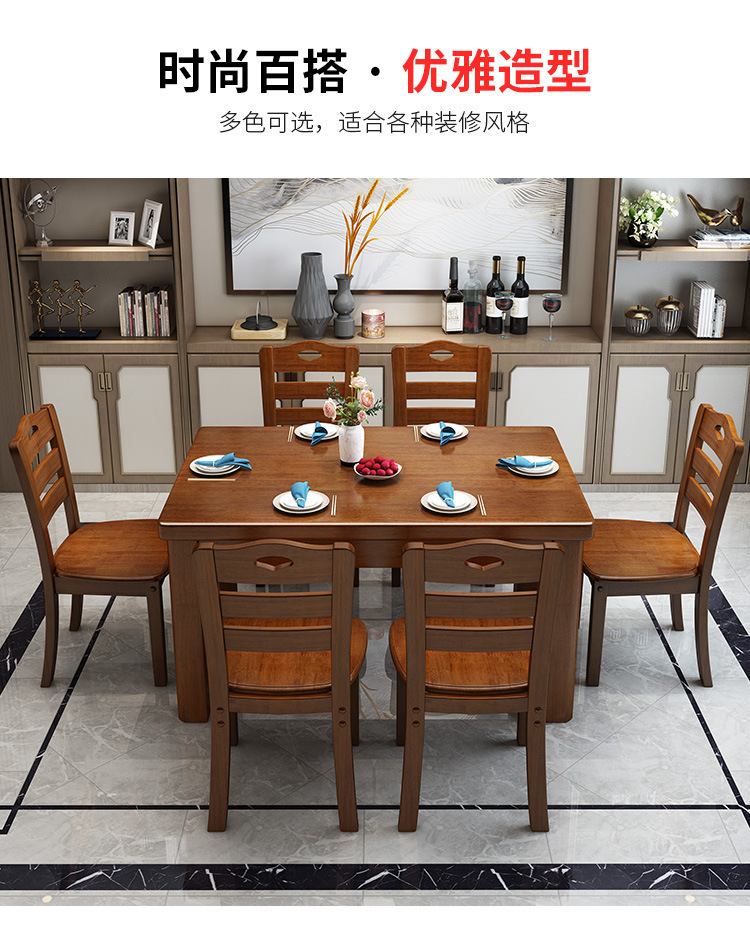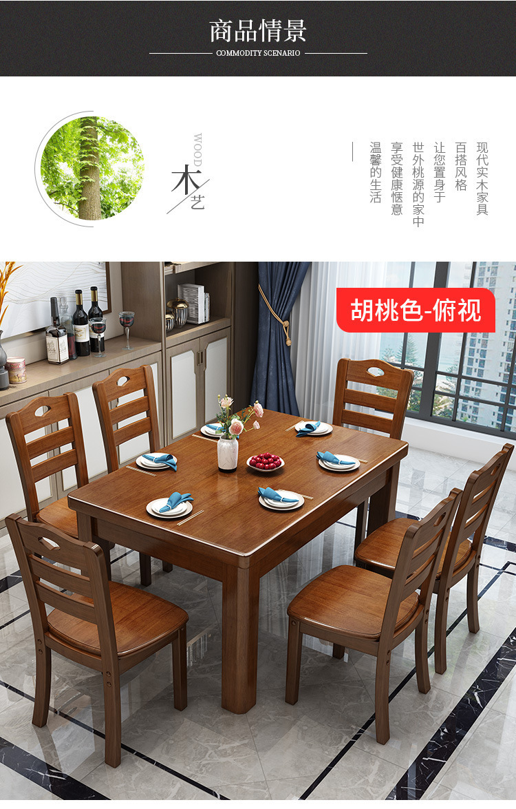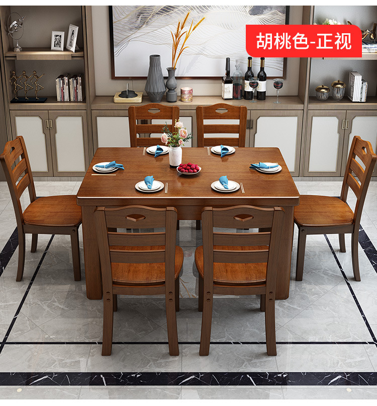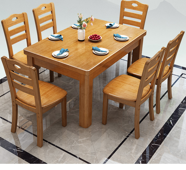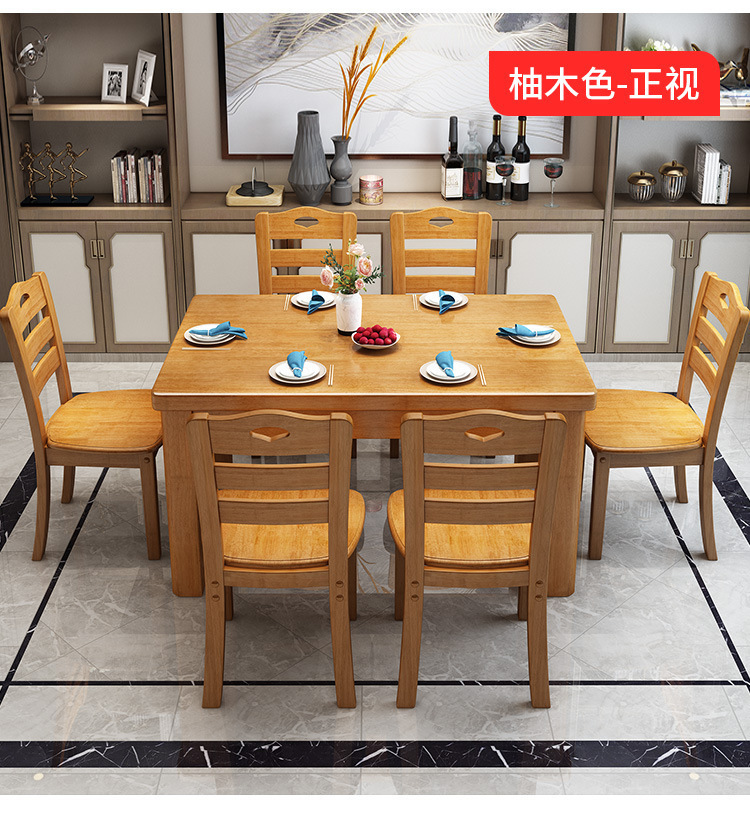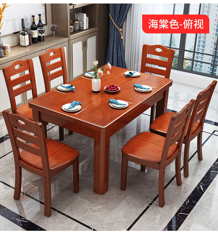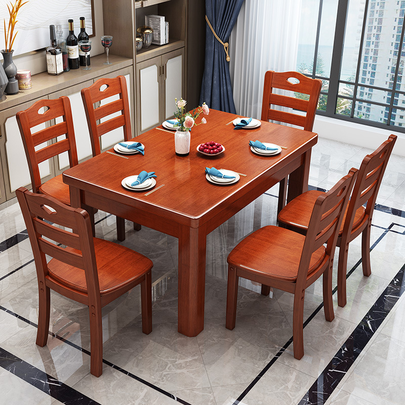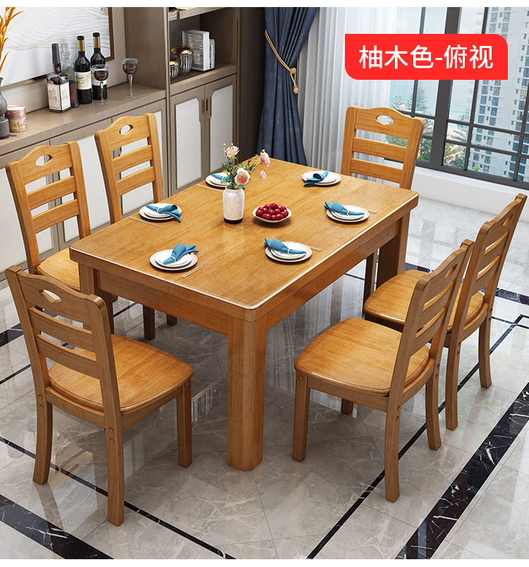 단단한 나무 식탁 직사각형 나무 현대 간단한 식탁 가정용 소형 아파트 4 명 6 명 식탁과 의자 조합