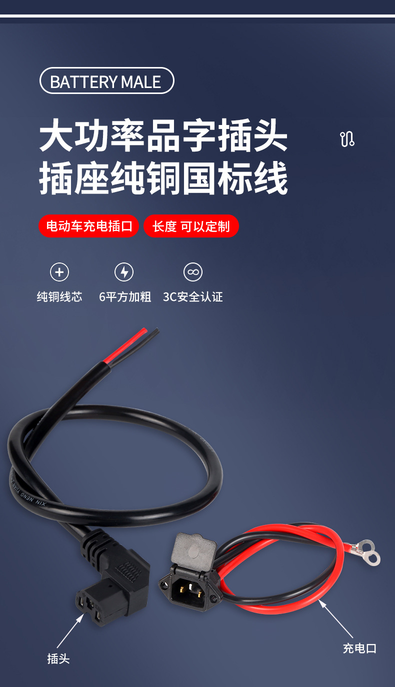 공장 직접 판매 6 평방 4 전기 자동차 팔꿈치 와이어 리튬 배터리 충전 및 방전 와이어 T 형 전기 오토바이 배터리