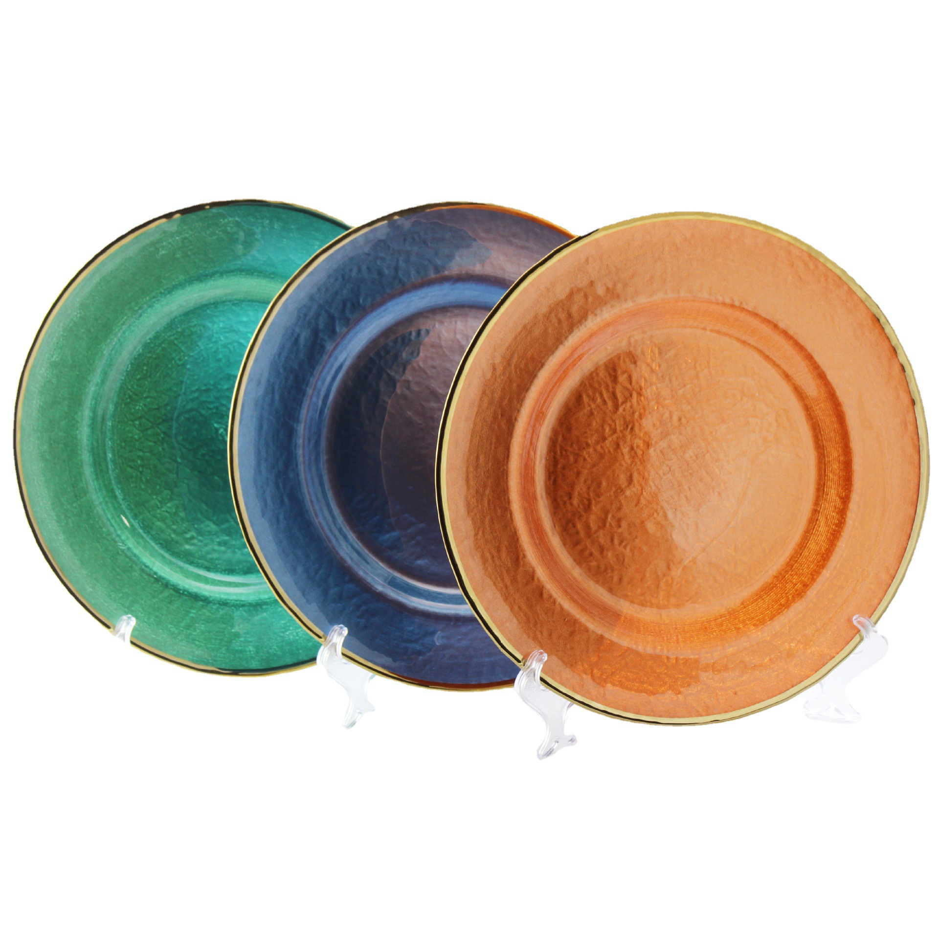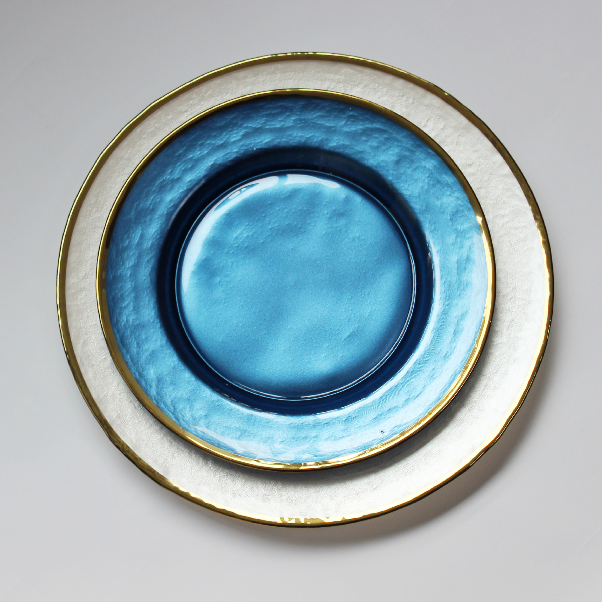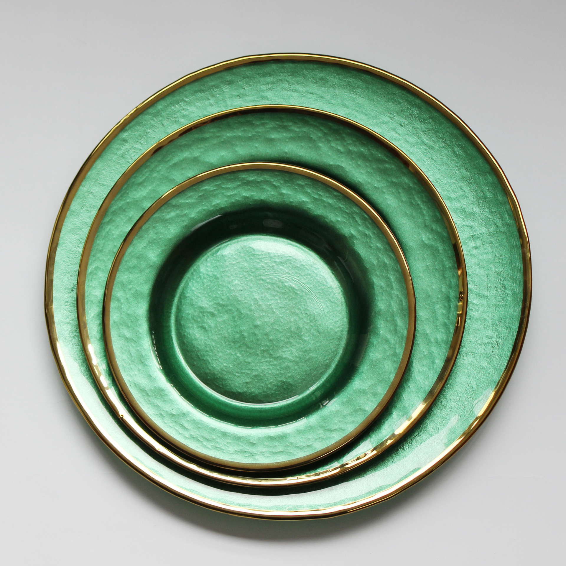 ins玻璃盘子创意彩色电镀金边西式牛排餐盘垫盘 跨境出口餐饮具