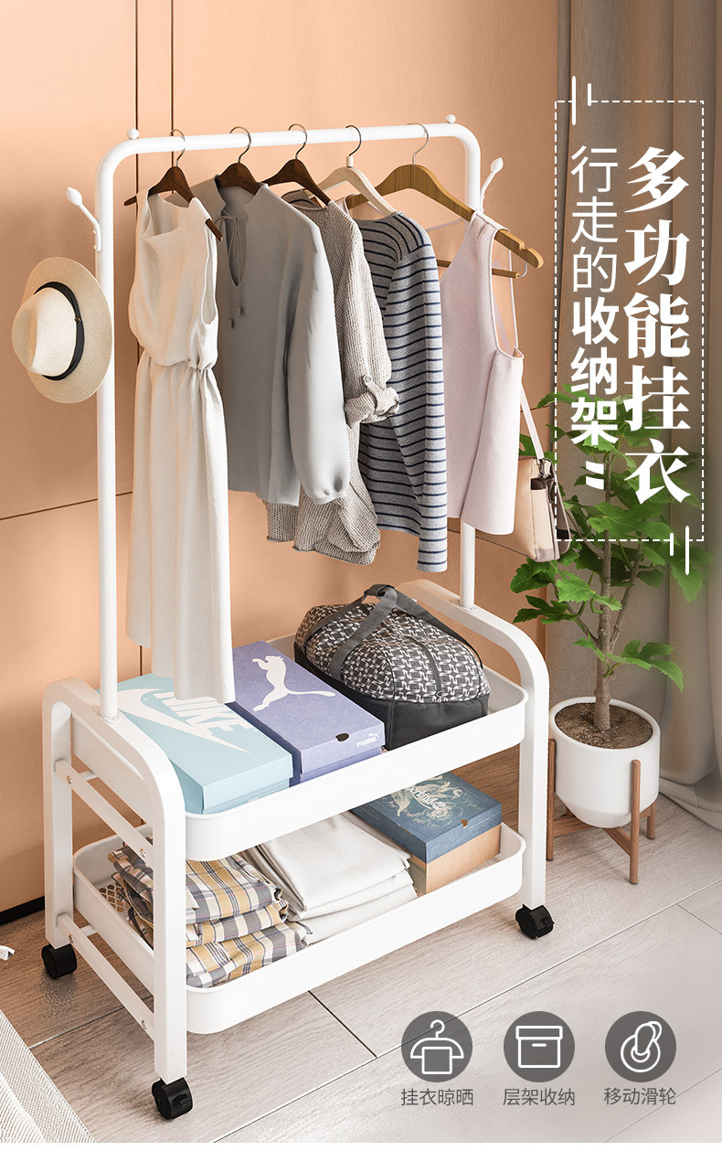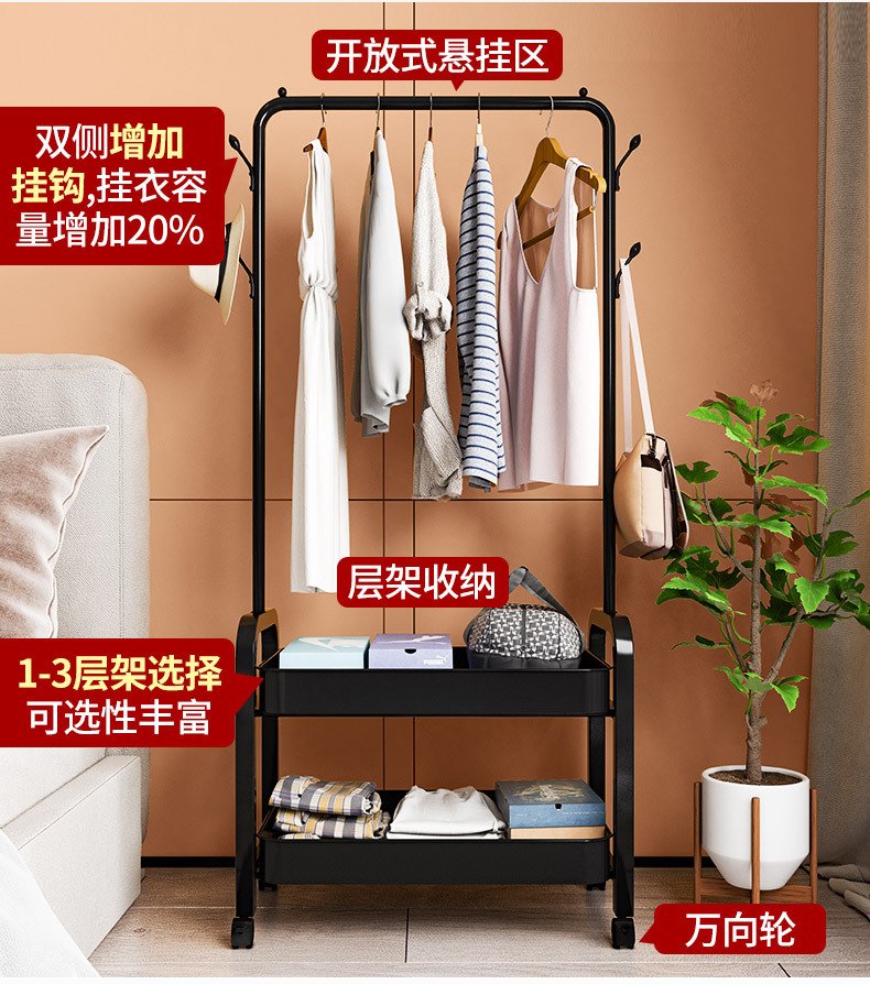 옷걸이 침실 바닥 스탠딩 가정용 모바일 코트 랙 다기능 수납 랙 심플 옷걸이 건조 랙