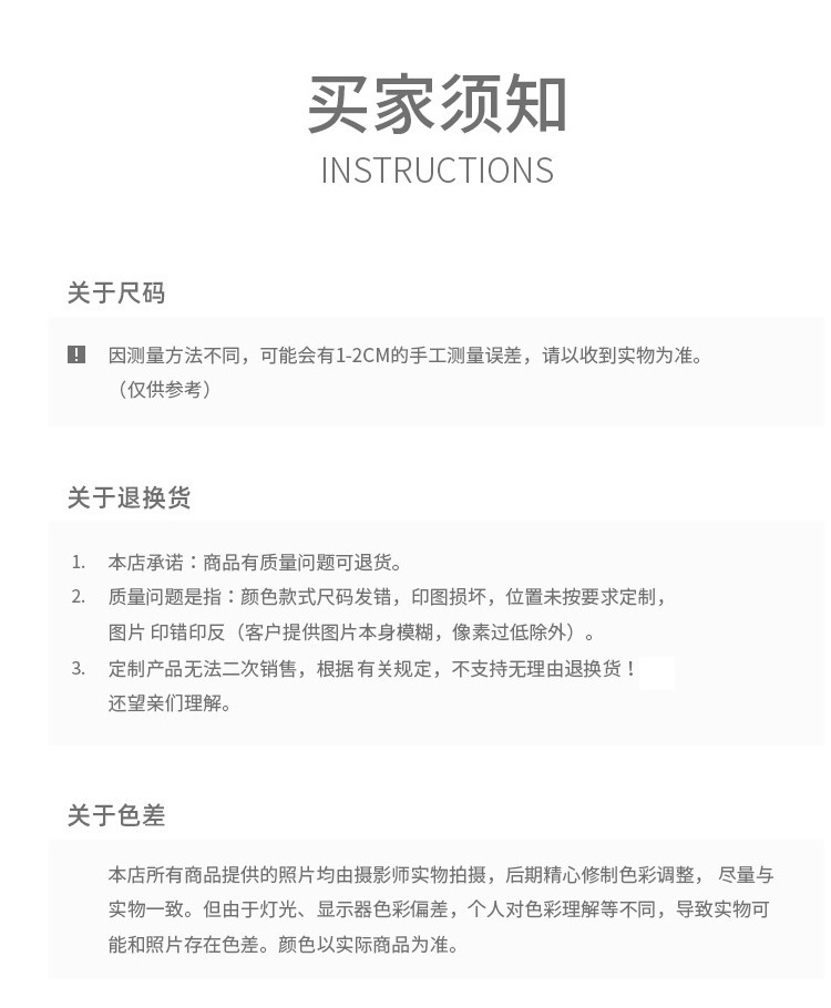 颜色可选:经典黑、白、藏青、灰色、军绿、宝蓝、粉色、黄色等 40 + 基础纯色,可根据需求定制印花配色、专属色系;