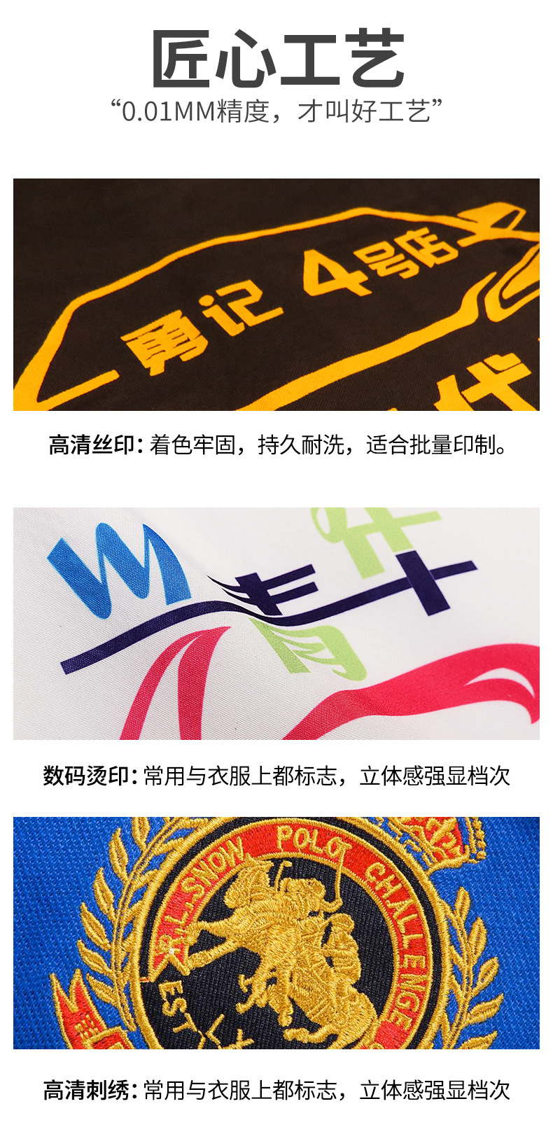 可定制企业 LOGO、品牌印花、刺绣图案、校园校徽,烫印 / 刺绣工艺可选,做工精细不掉落,位置可按需定制;
