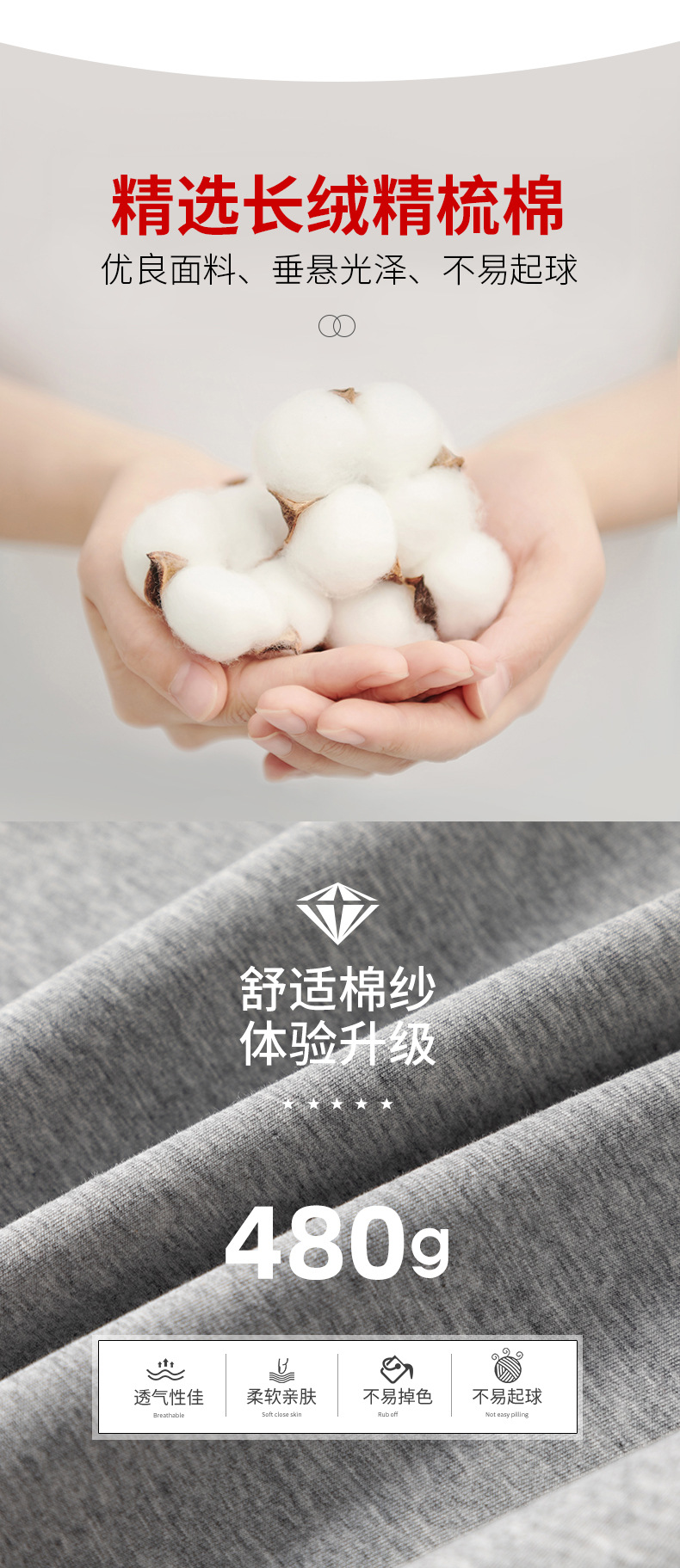 100% 新疆精梳长绒棉,双纱织造工艺,面料柔软细腻贴肤不扎身,透气率≥85%,春秋单穿不闷汗、打底不臃肿;
