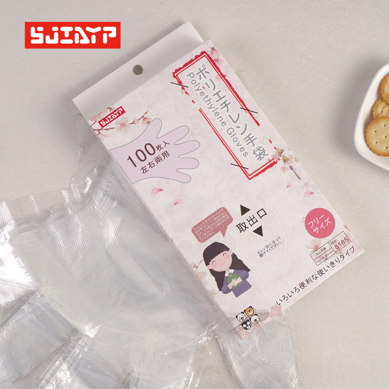 일본 일회용 장갑 케이터링 미용 손 마스크 식품 랍스터 투명 플라스틱 PE 필름 장갑 100 PC