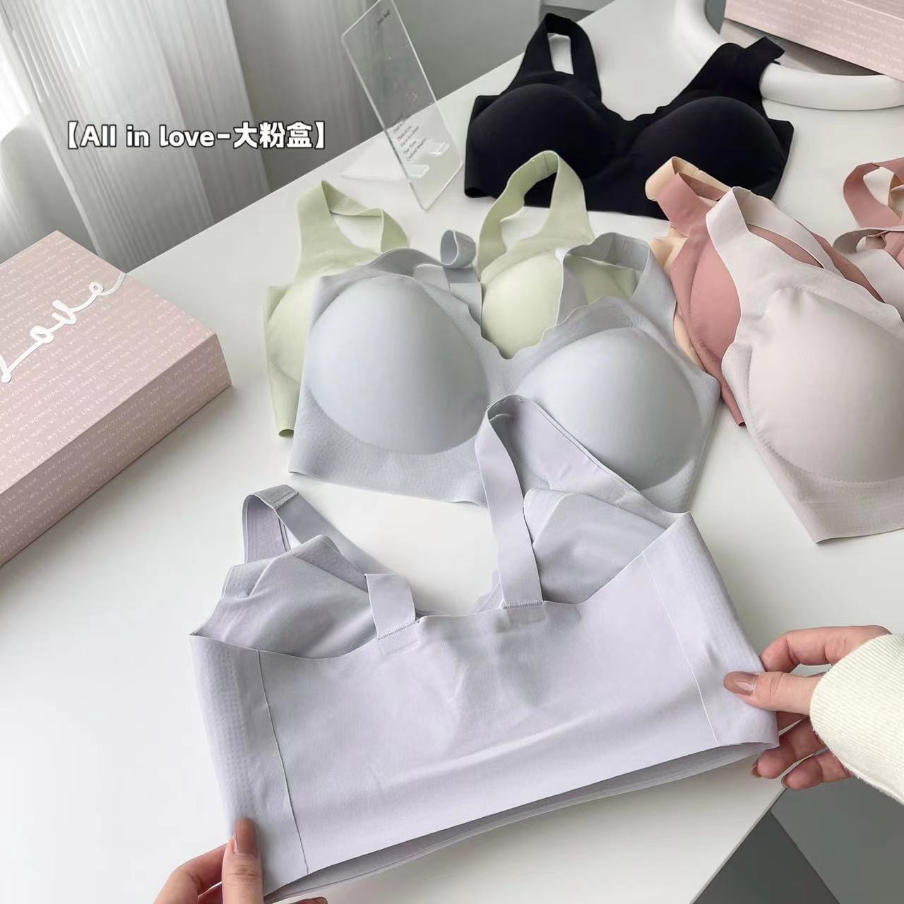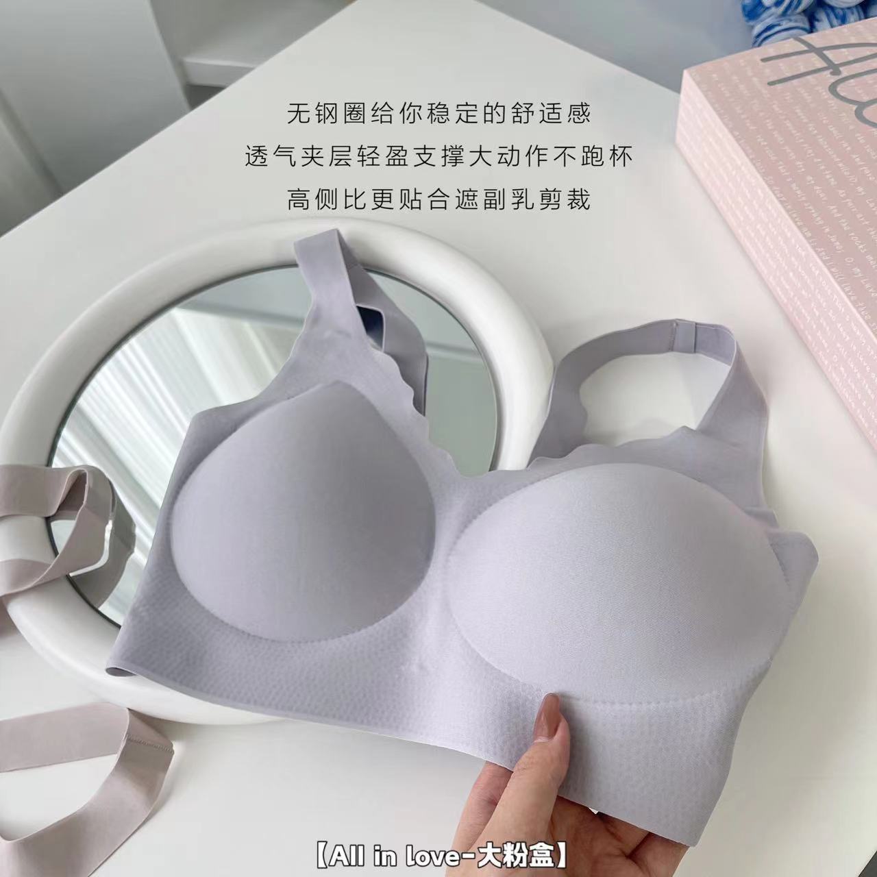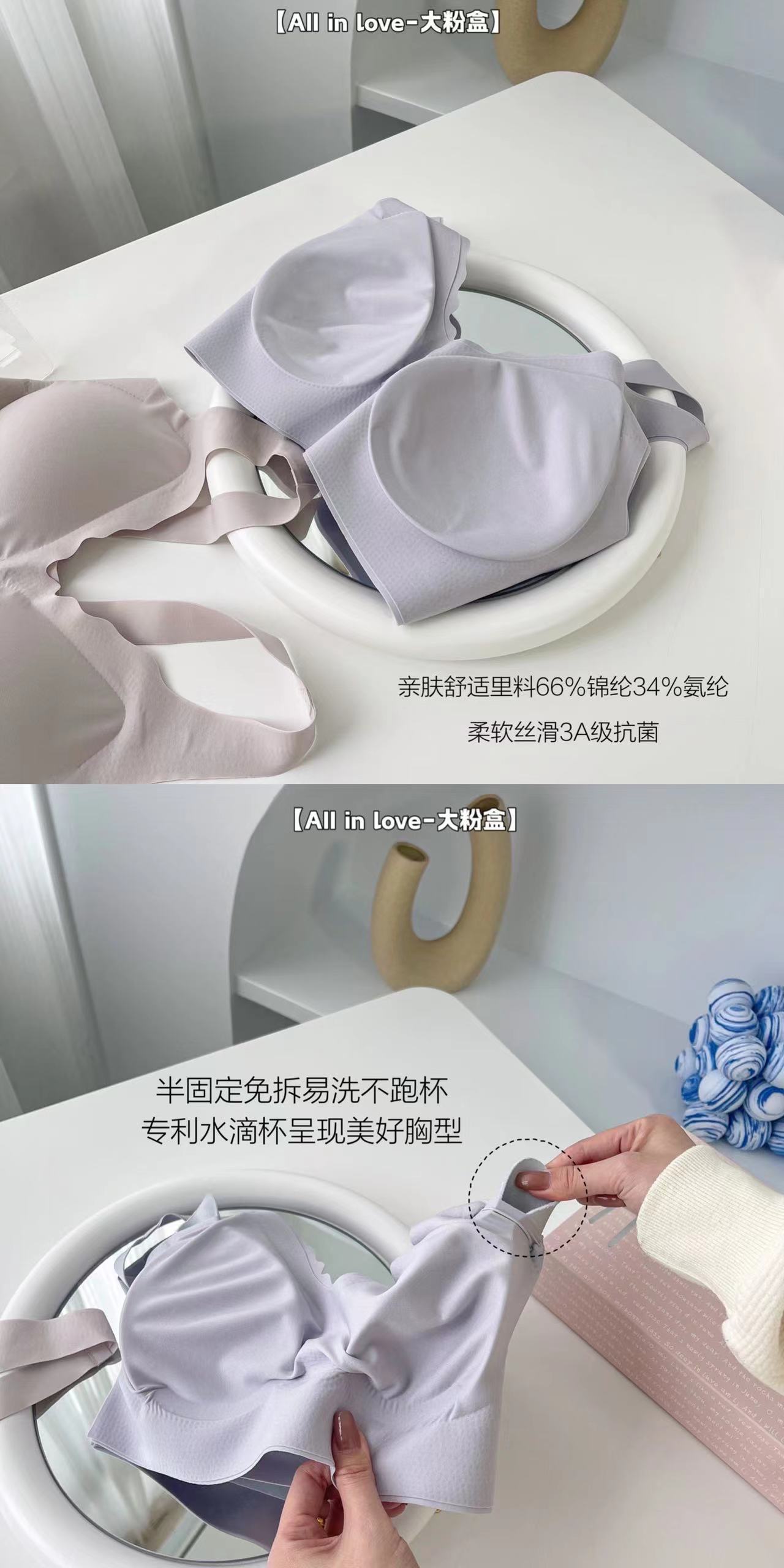 대형 파우더 박스 속옷 팬티 세트 No 스틸 링 브라 팬티 순면 파일 여성 속옷 없음 마크 고정 컵