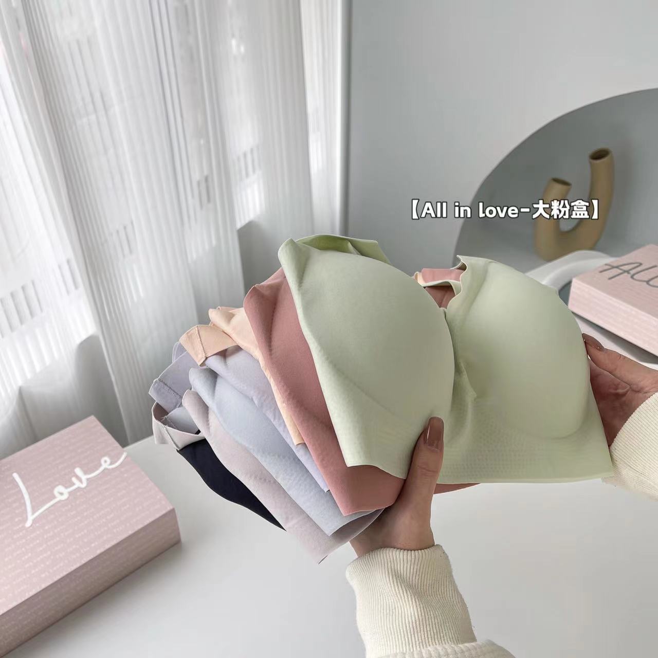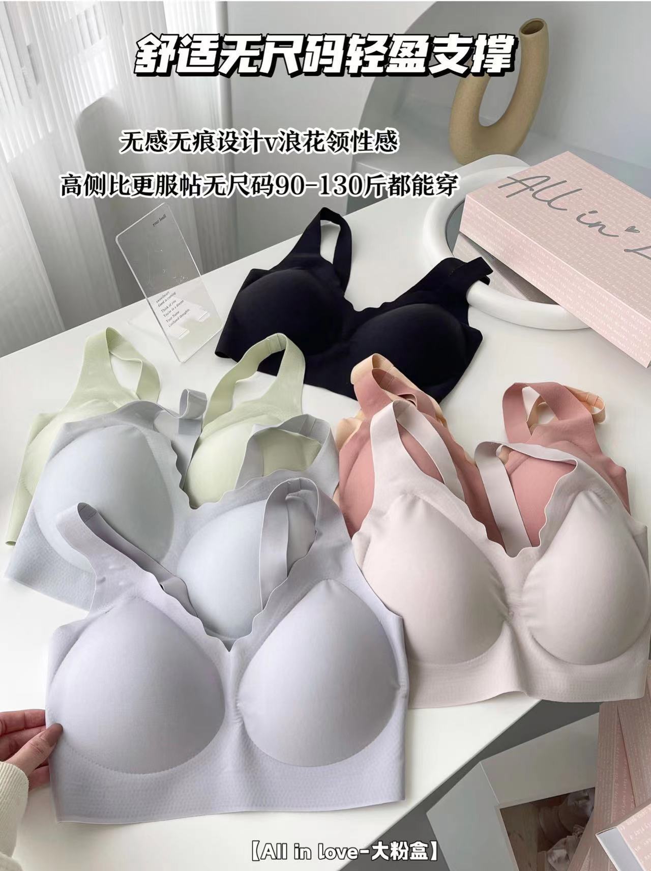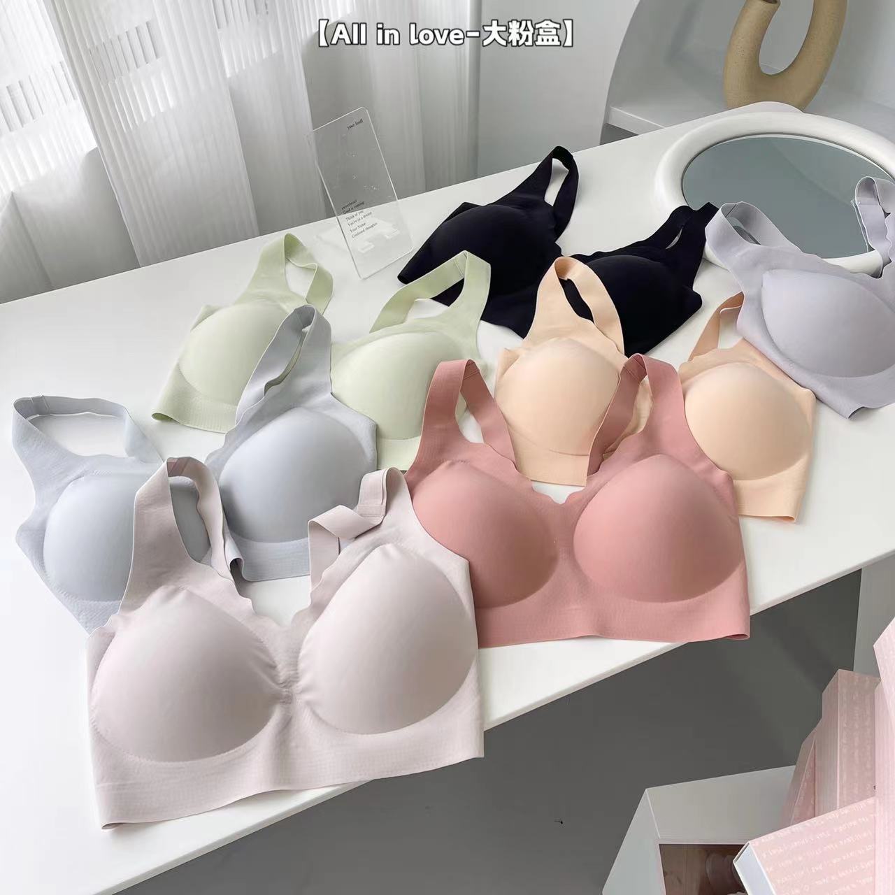 대형 파우더 박스 속옷 팬티 세트 No 스틸 링 브라 팬티 순면 파일 여성 속옷 없음 마크 고정 컵