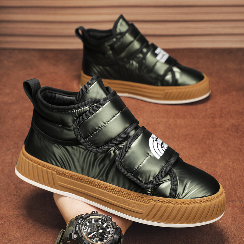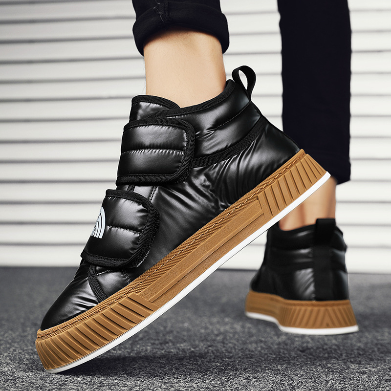 라이브 겨울 새로운 기모 두꺼운 따뜻한 야외 스노우 부츠 가죽 방수 유행 경량 다리 남성용 면 신발