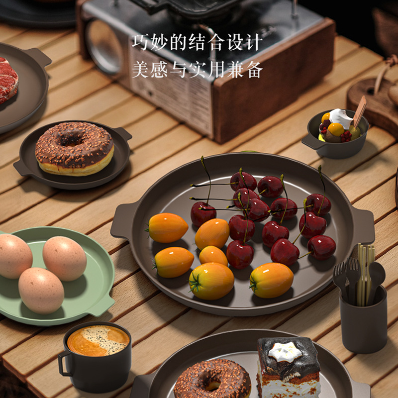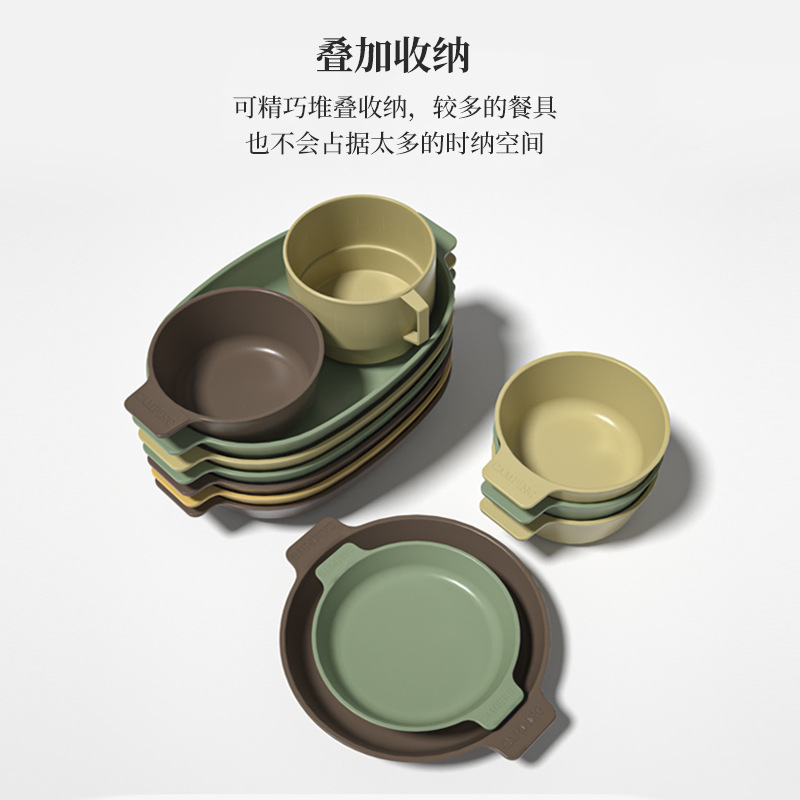 야외 캠핑 식기 세트 컵 요리 경량 휴대용 캠핑 용품 캠핑 플라스틱 식기 조합