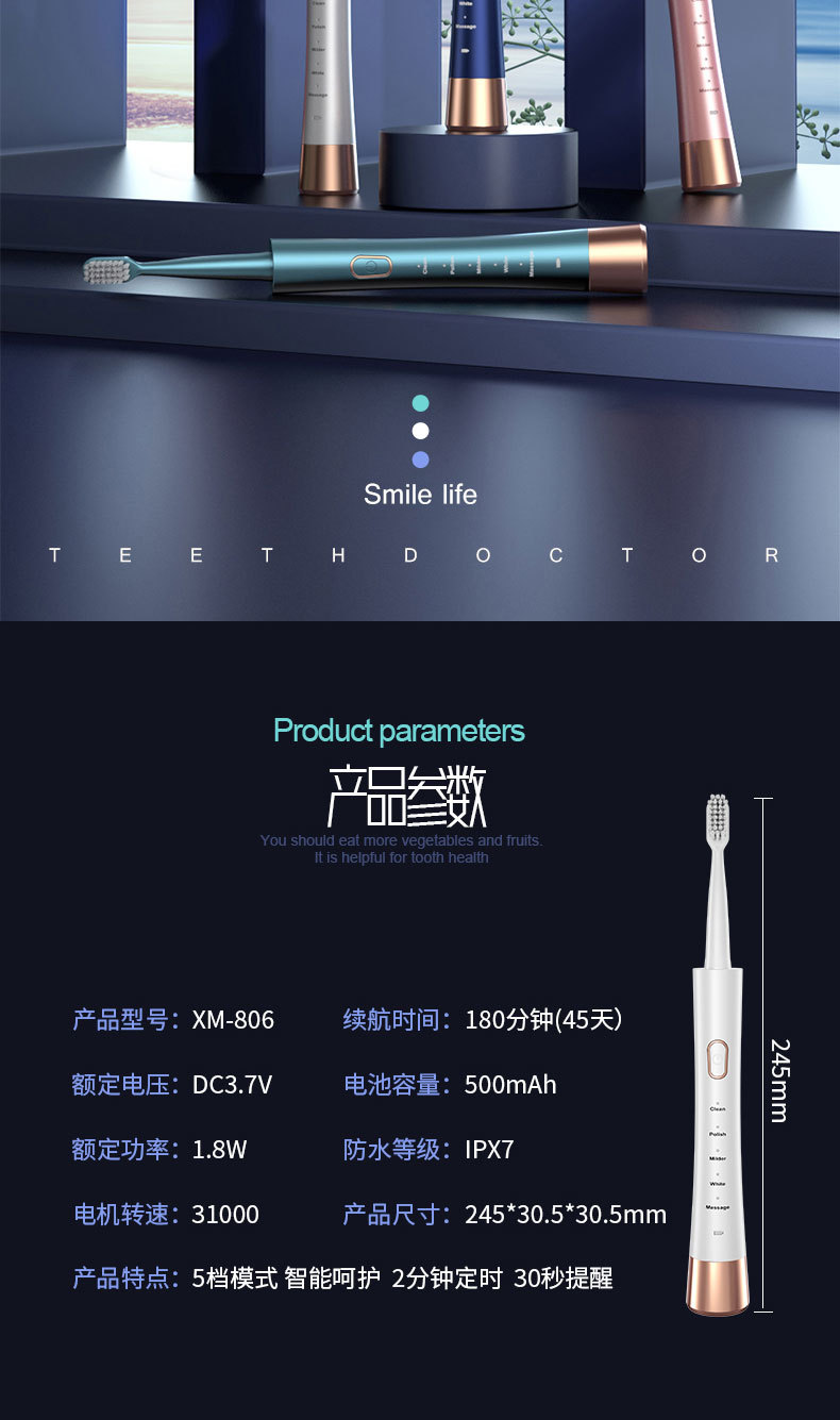 牙刷重量:140g 尺寸:25.4*7*3.2(cm)