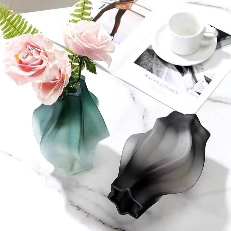 북유럽 인 간단한 빛 고급 유리 꽃병 장식품 높은 색상 가치 꽃 꽃 배열 홈 데스크탑 장식 소품