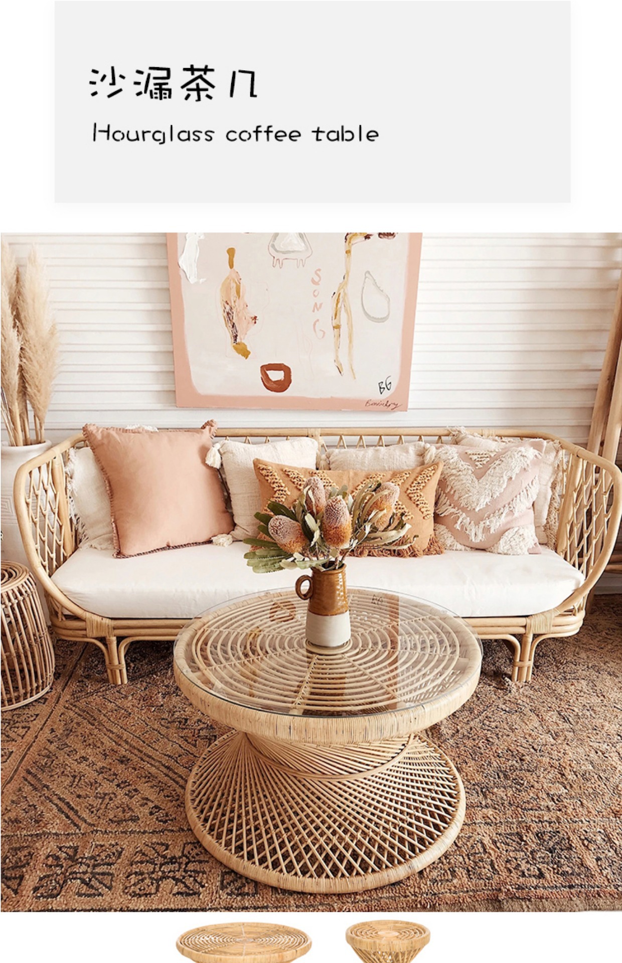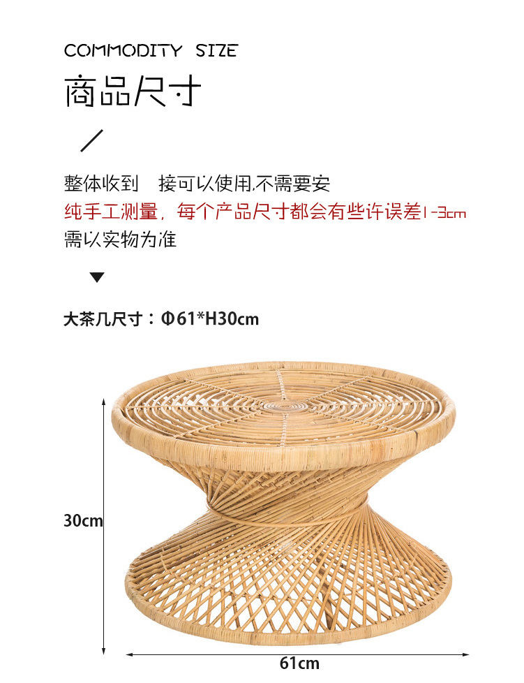 실제 등나무 작은 커피 테이블 코너 작은 아파트 간단한 현대 북유럽 가정 거실 작은 원형 테이블 홈스테이 크리 에이 티브