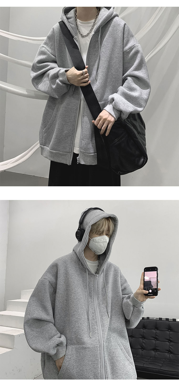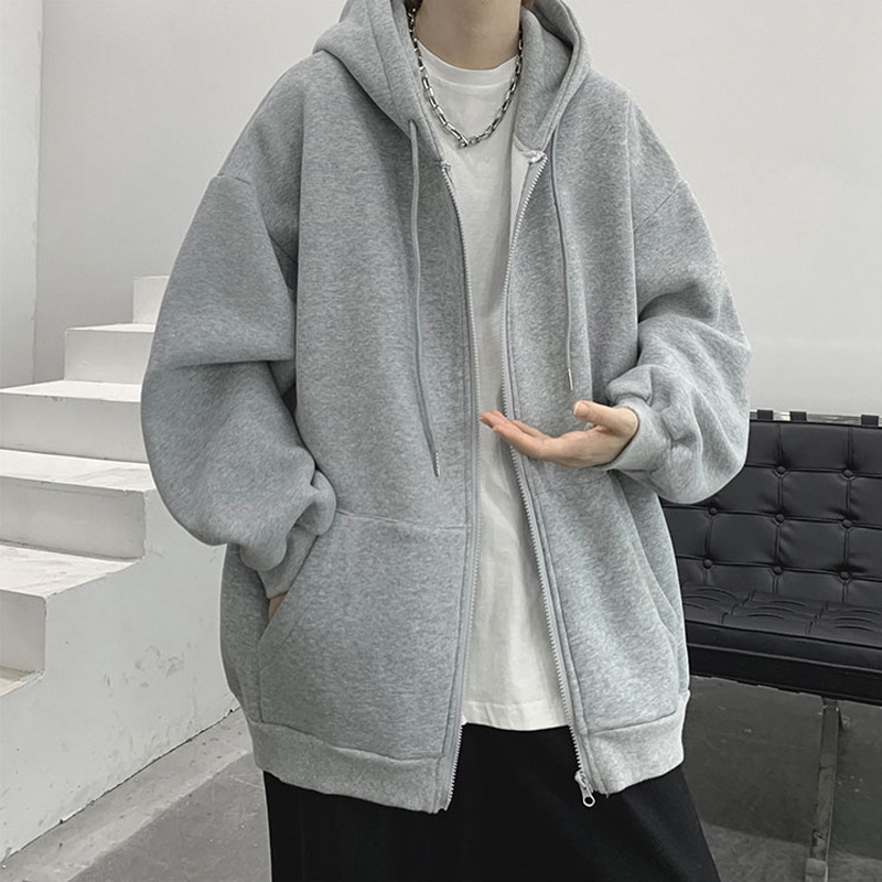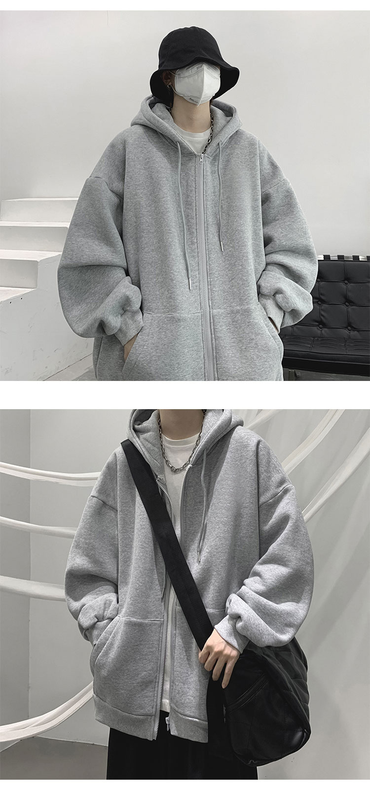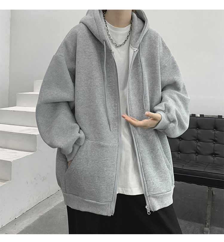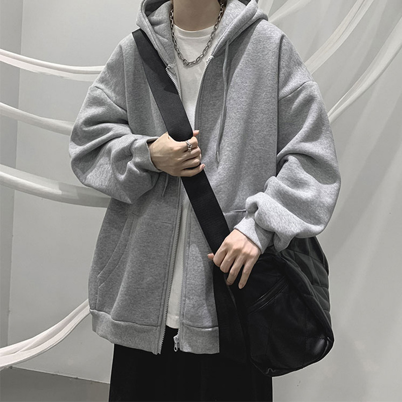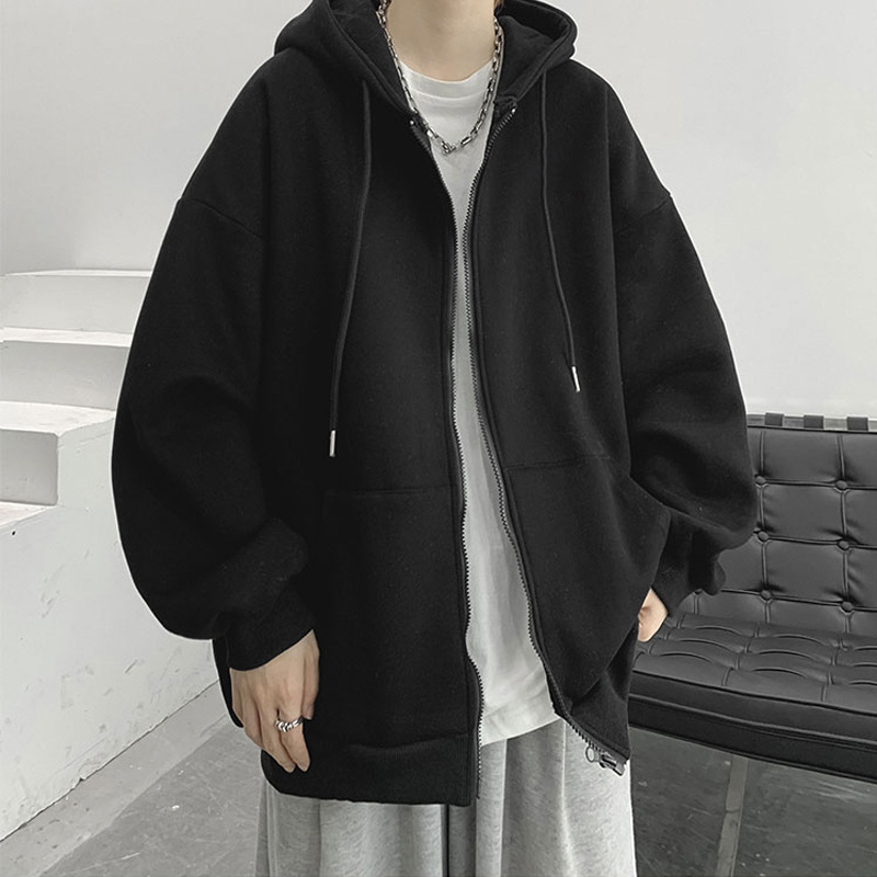 지퍼 카디건 스웨터 남자의 가을 패션 브랜드 느슨한 단색 후드 재킷 유행 복고풍 모든 매치 탑 의류
