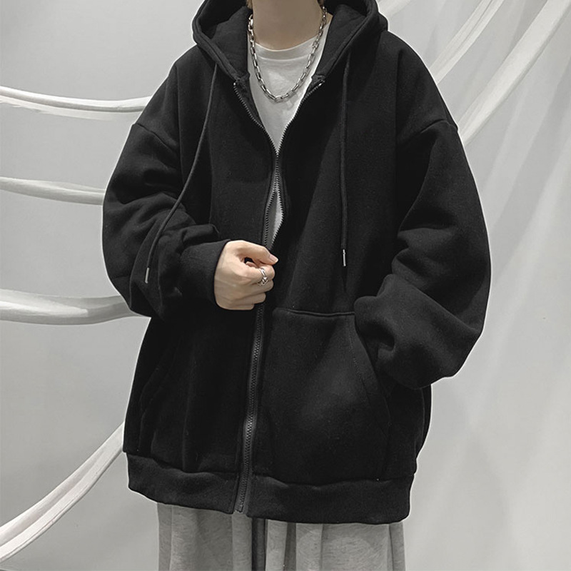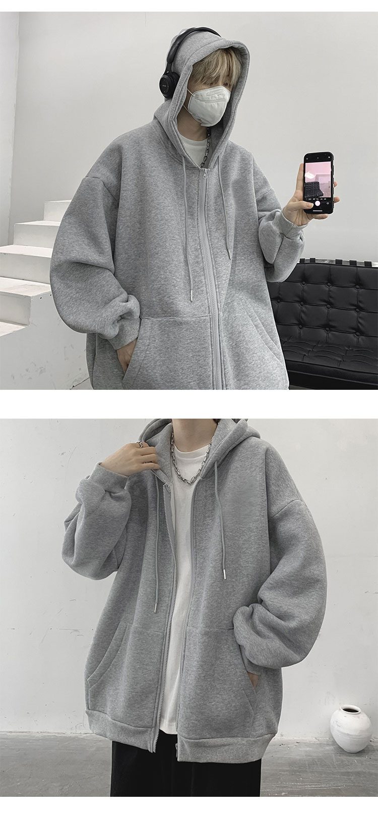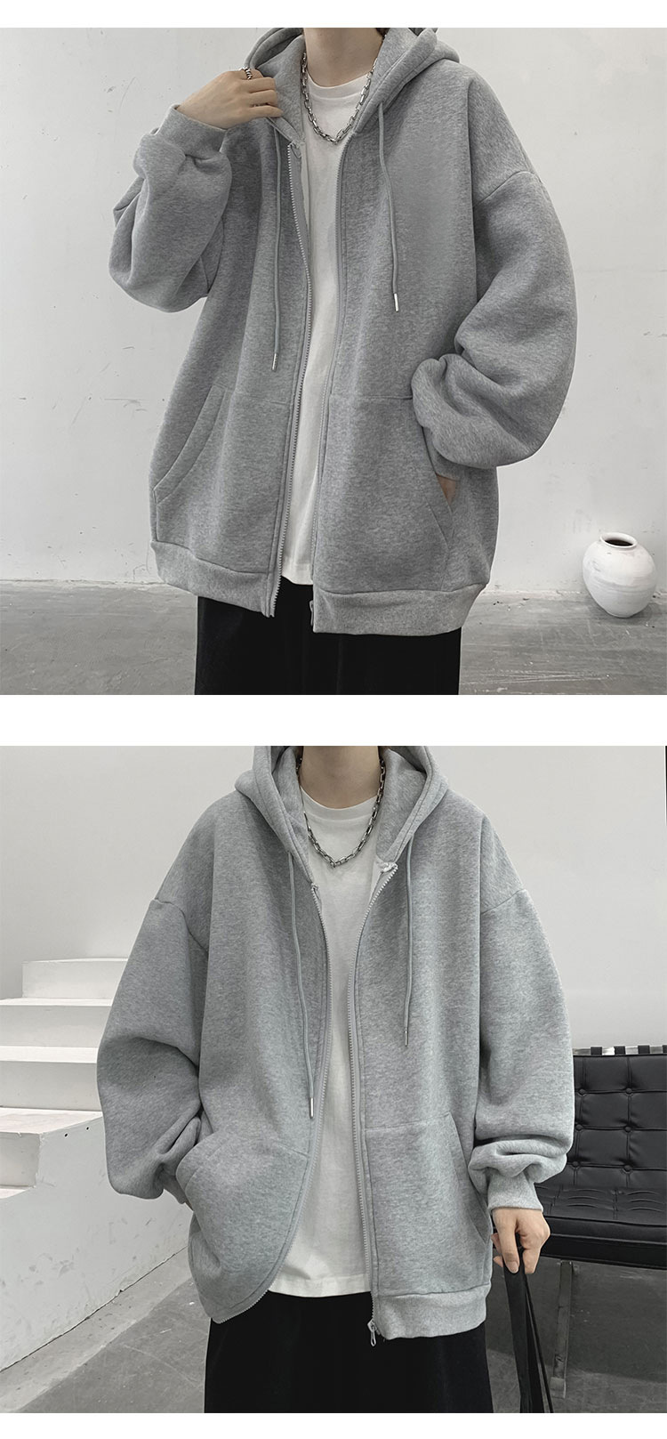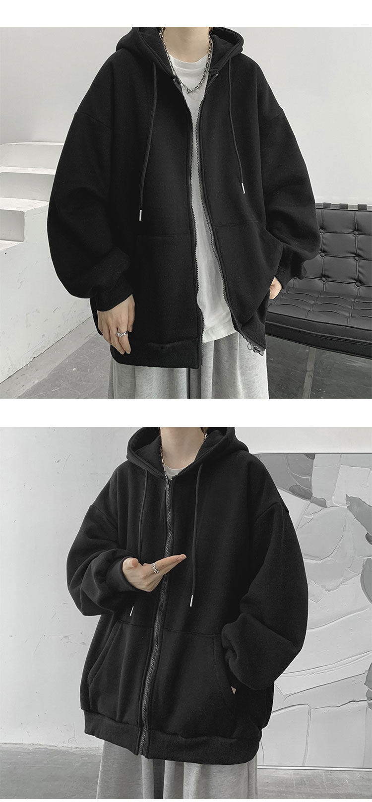 지퍼 카디건 스웨터 남자의 가을 패션 브랜드 느슨한 단색 후드 재킷 유행 복고풍 모든 매치 탑 의류