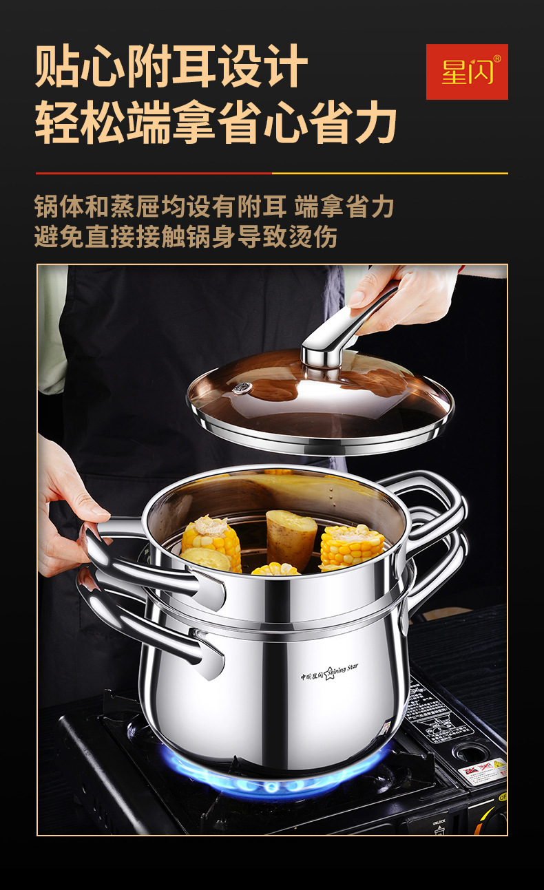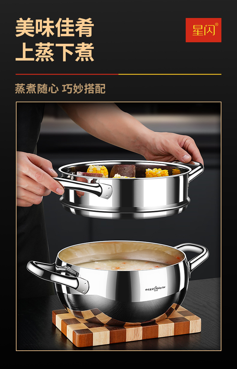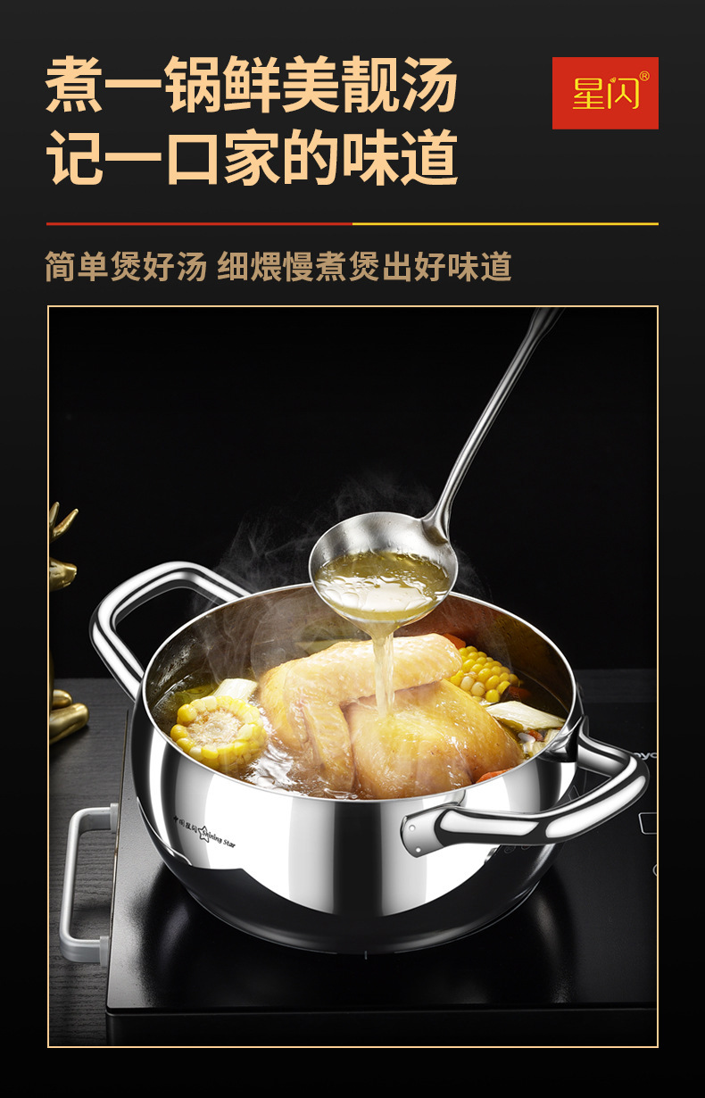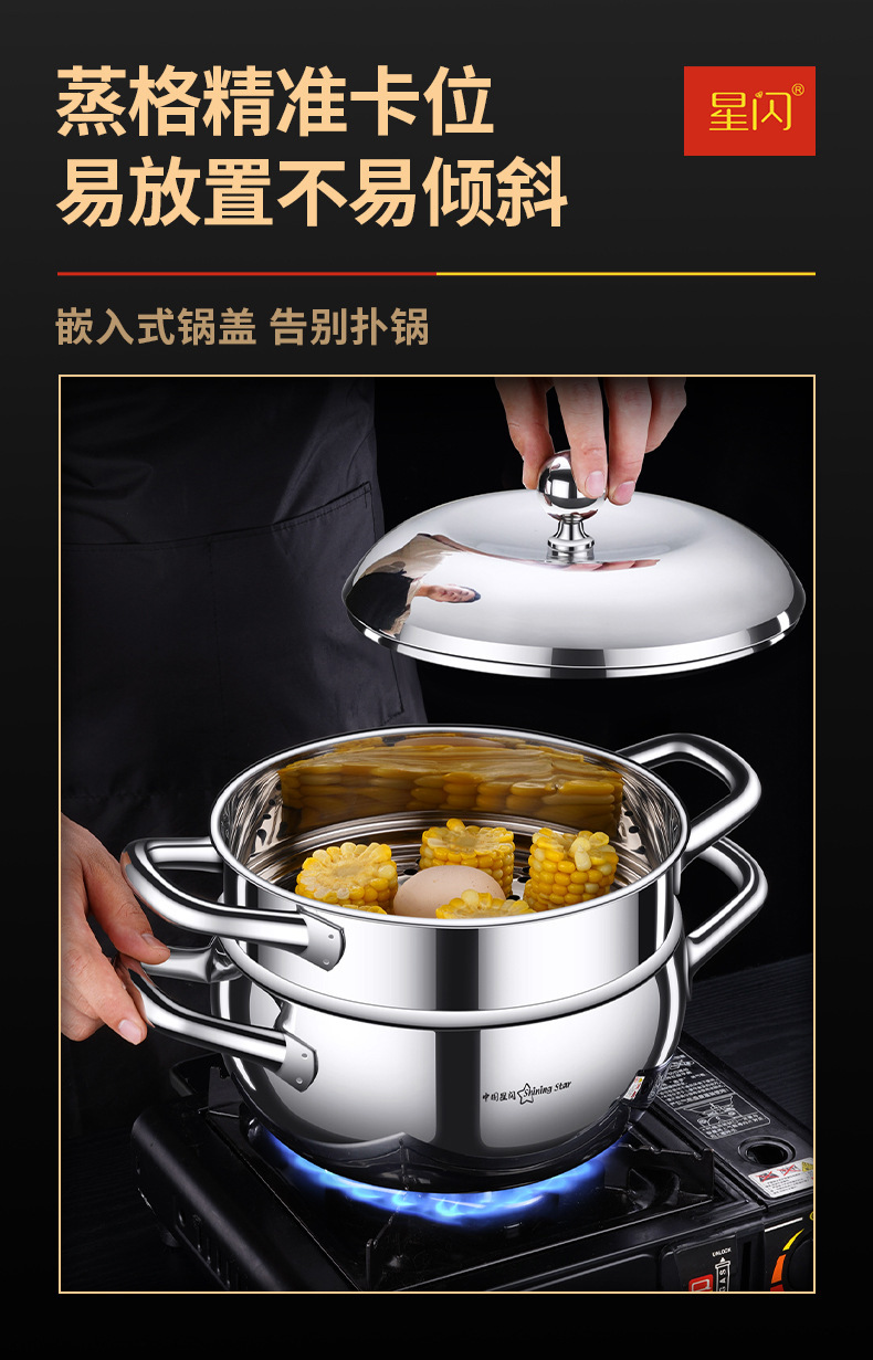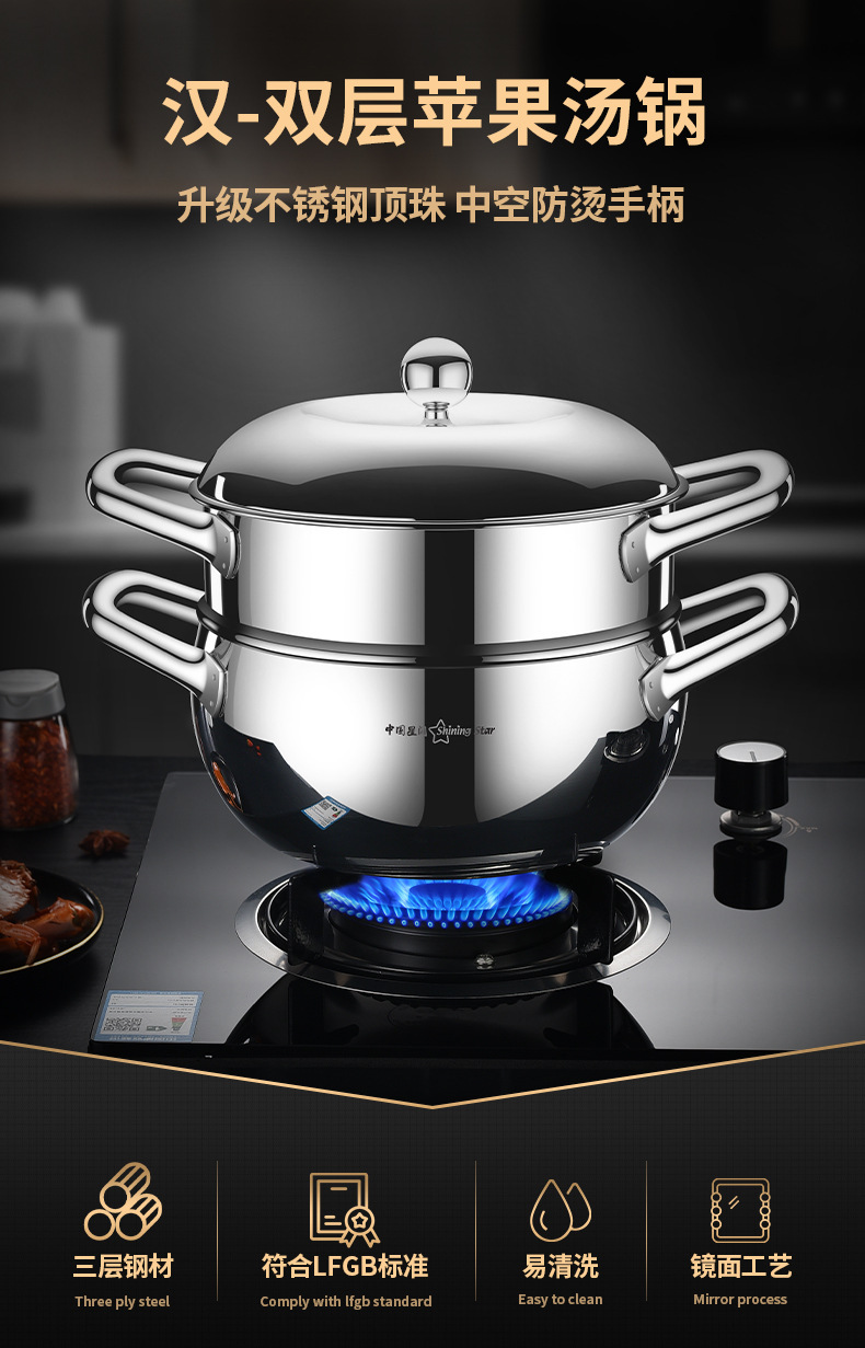 Y 스타 플래시 304 스테인레스 스틸 수프 냄비 사과 냄비 3 층 스틸 더블 레이어 기선 심화 가정 유도 쿠커 수프 냄비