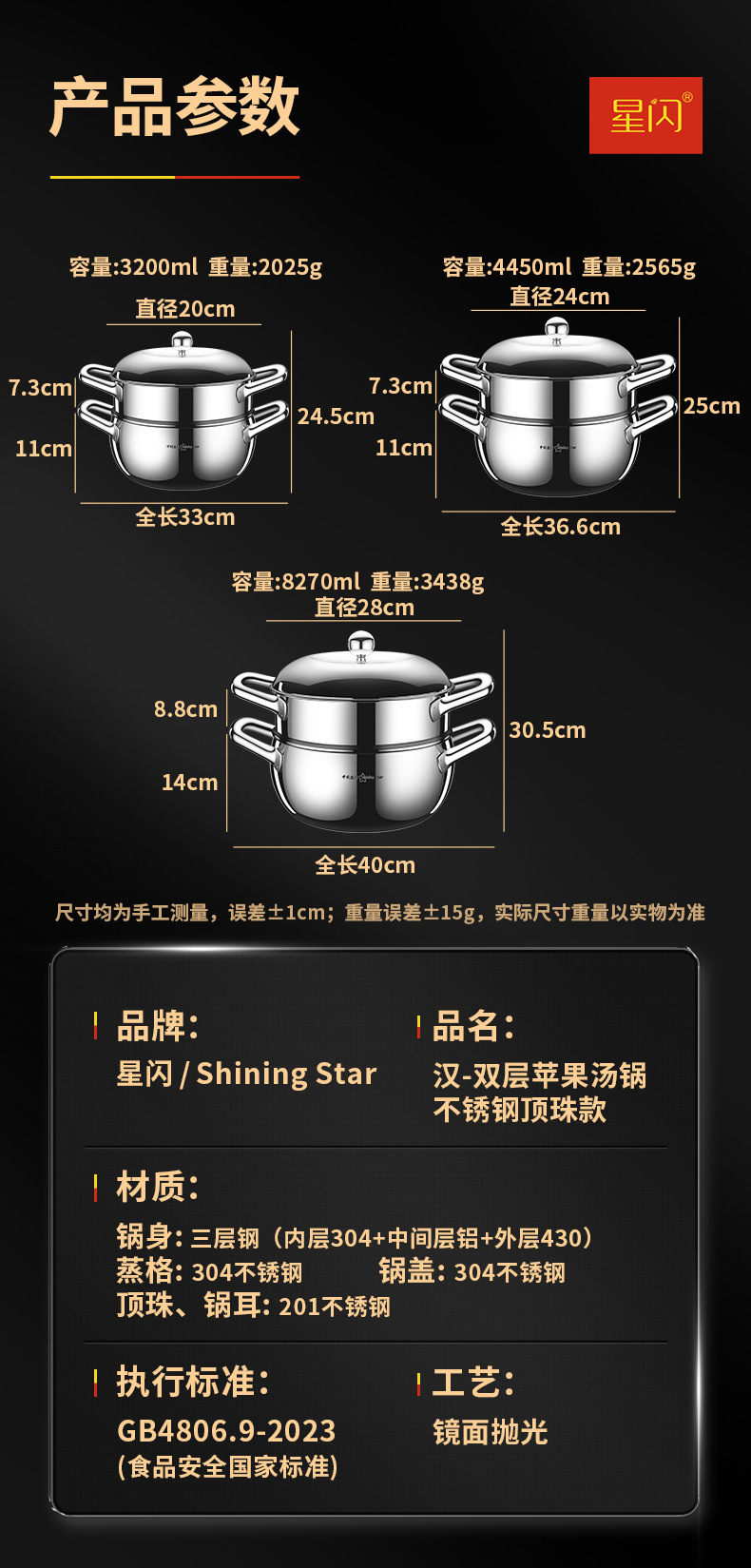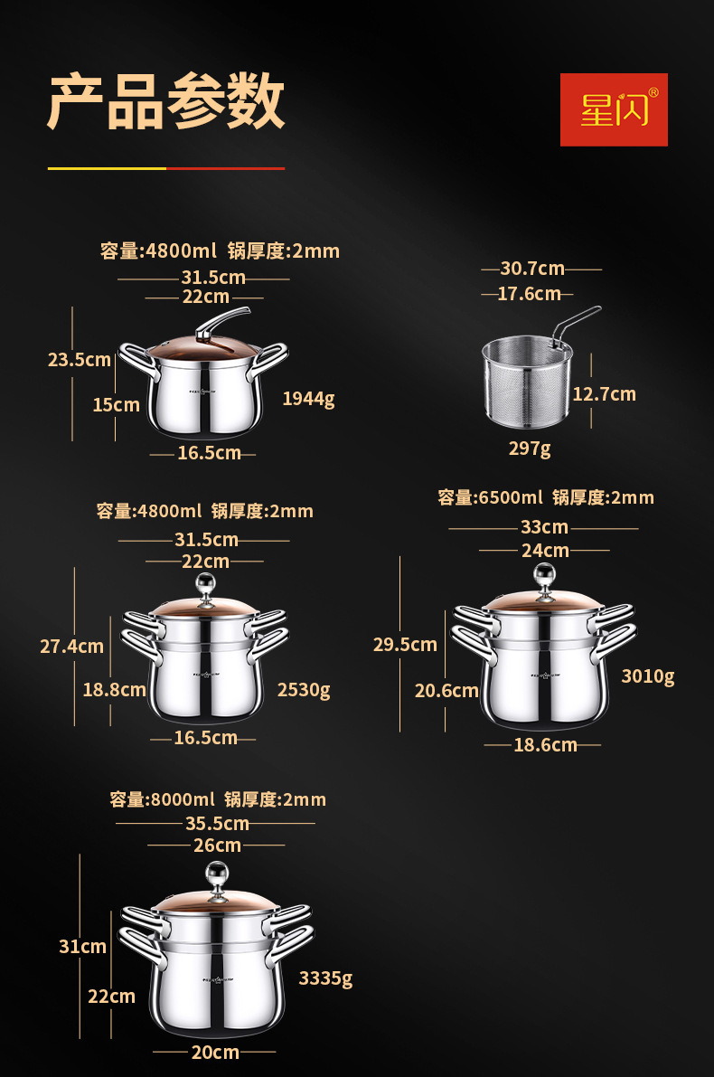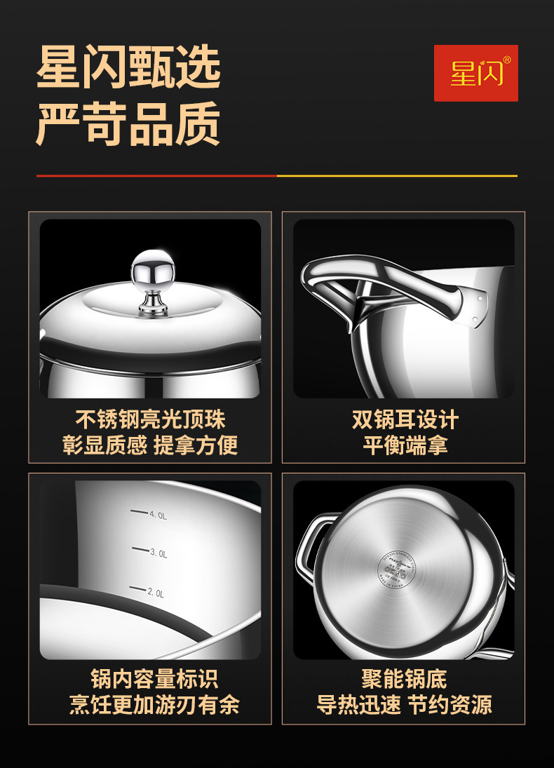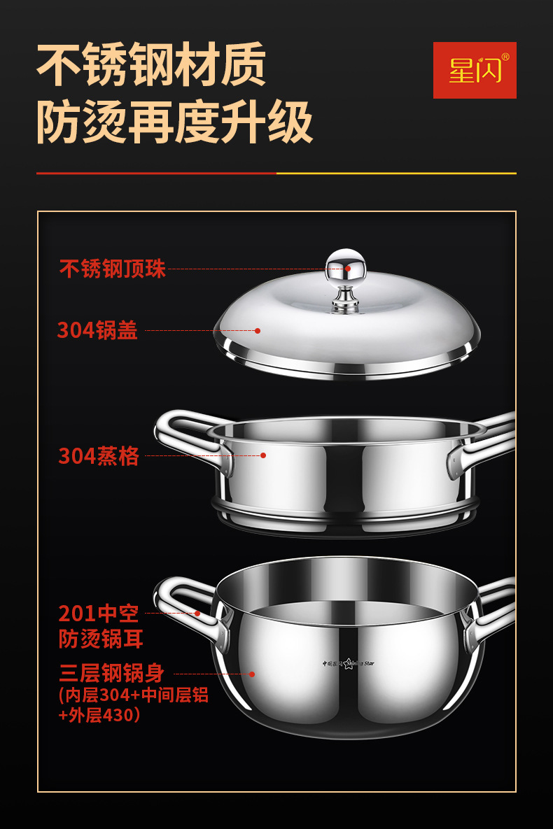 Y 스타 플래시 304 스테인레스 스틸 수프 냄비 사과 냄비 3 층 스틸 더블 레이어 기선 심화 가정 유도 쿠커 수프 냄비