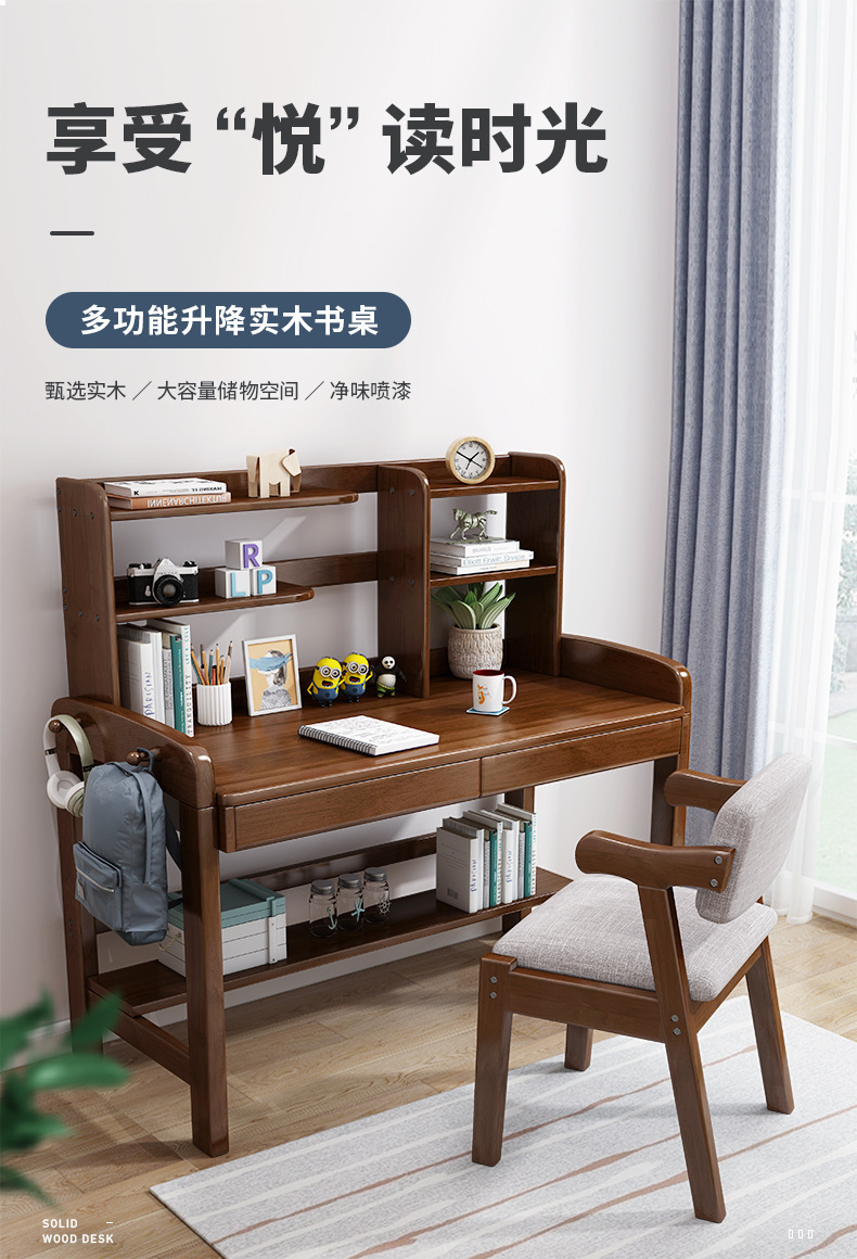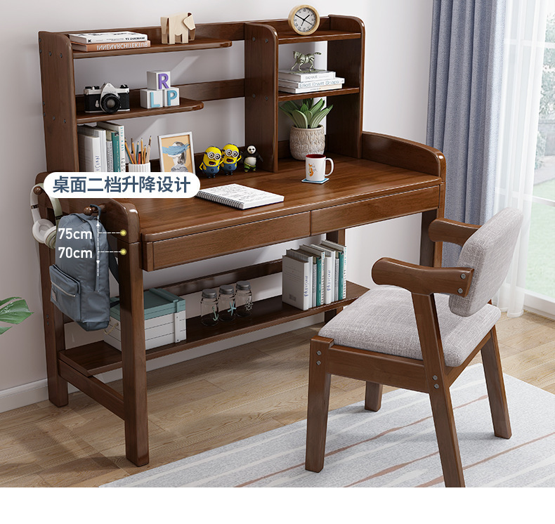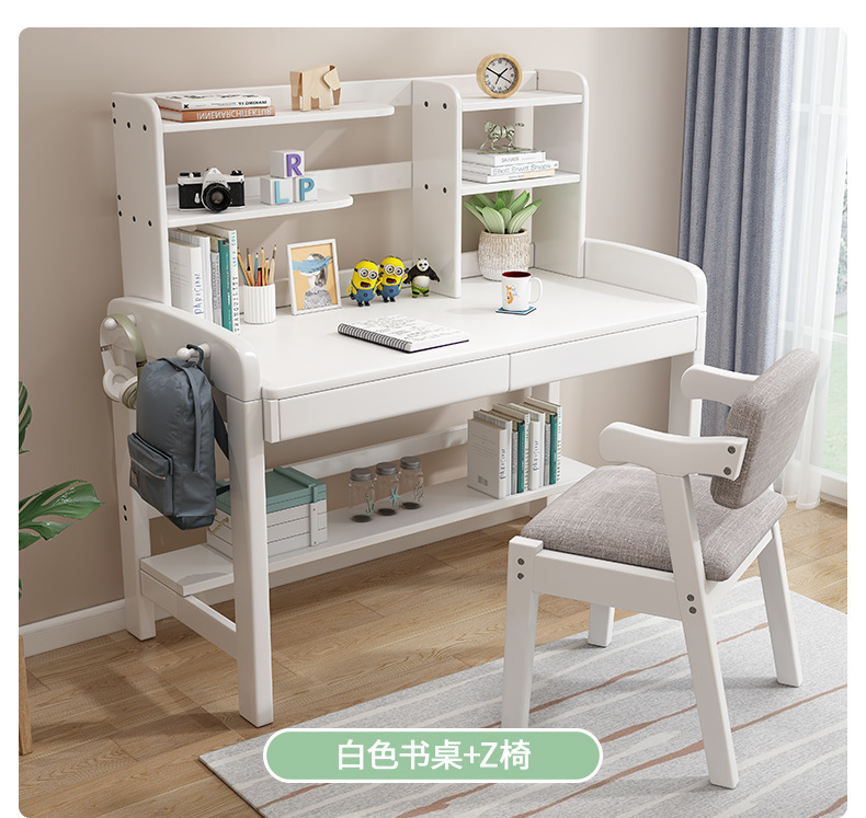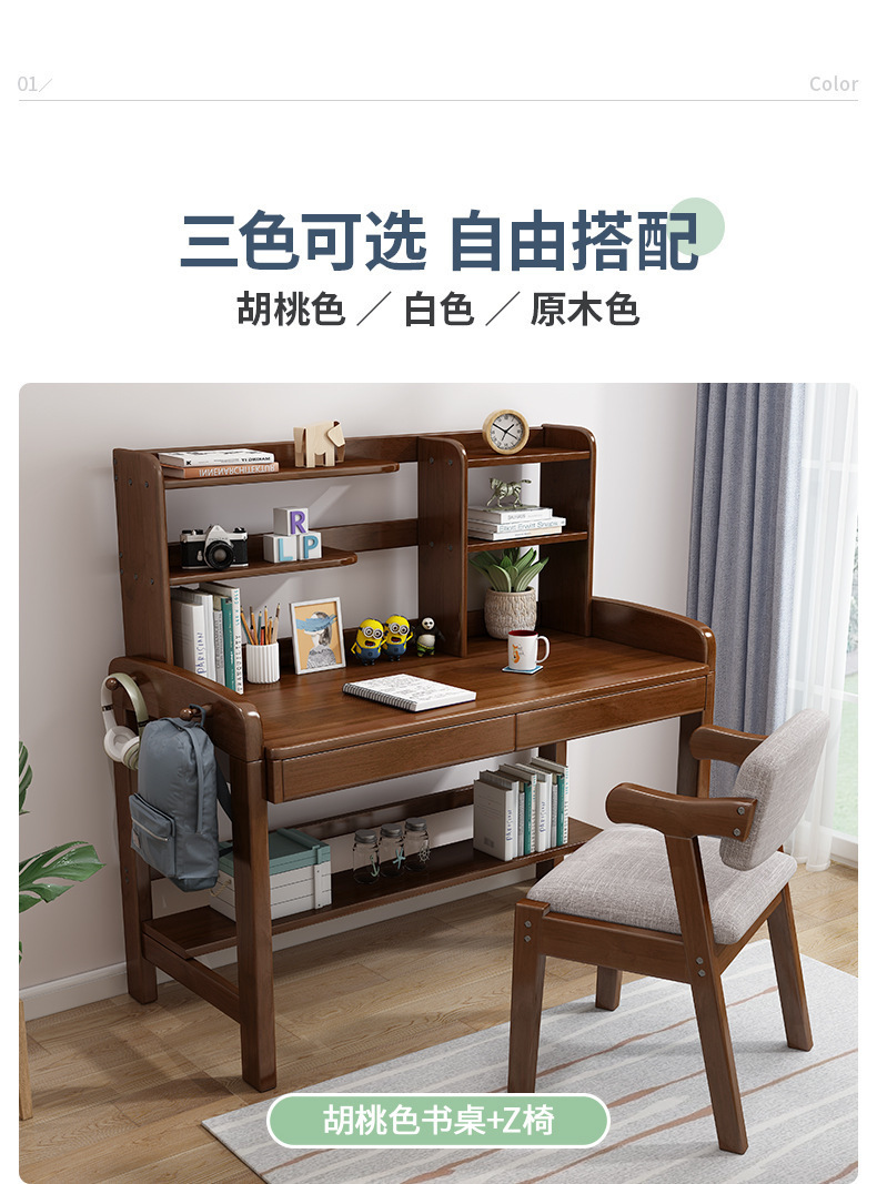 간단한 현대 책상 책장 학생 학습 테이블 캐비닛 및 의자 조합 통합 테이블 가정용 단단한 나무 컴퓨터 테이블