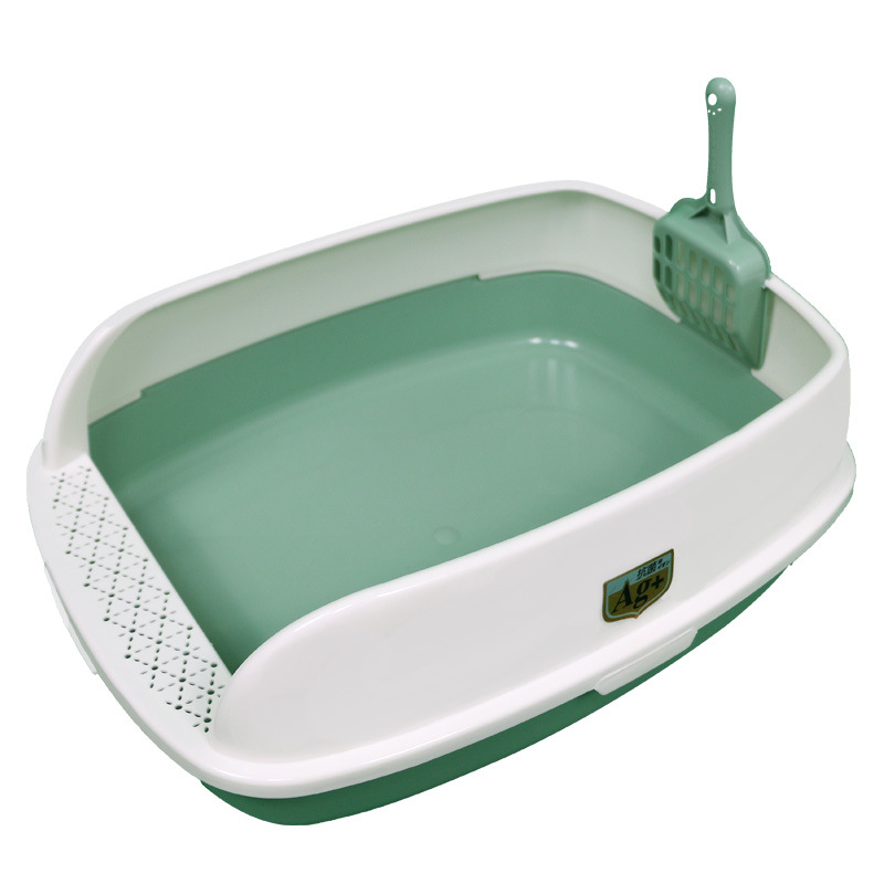 고양이 쓰레기 상자 도매 고양이 화장실 반 밀폐 고양이 용품 2 색 스티칭 애완 동물 용품 고양이 쓰레기 삽 통합