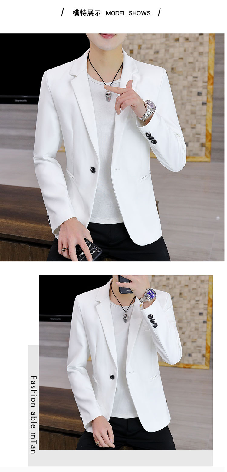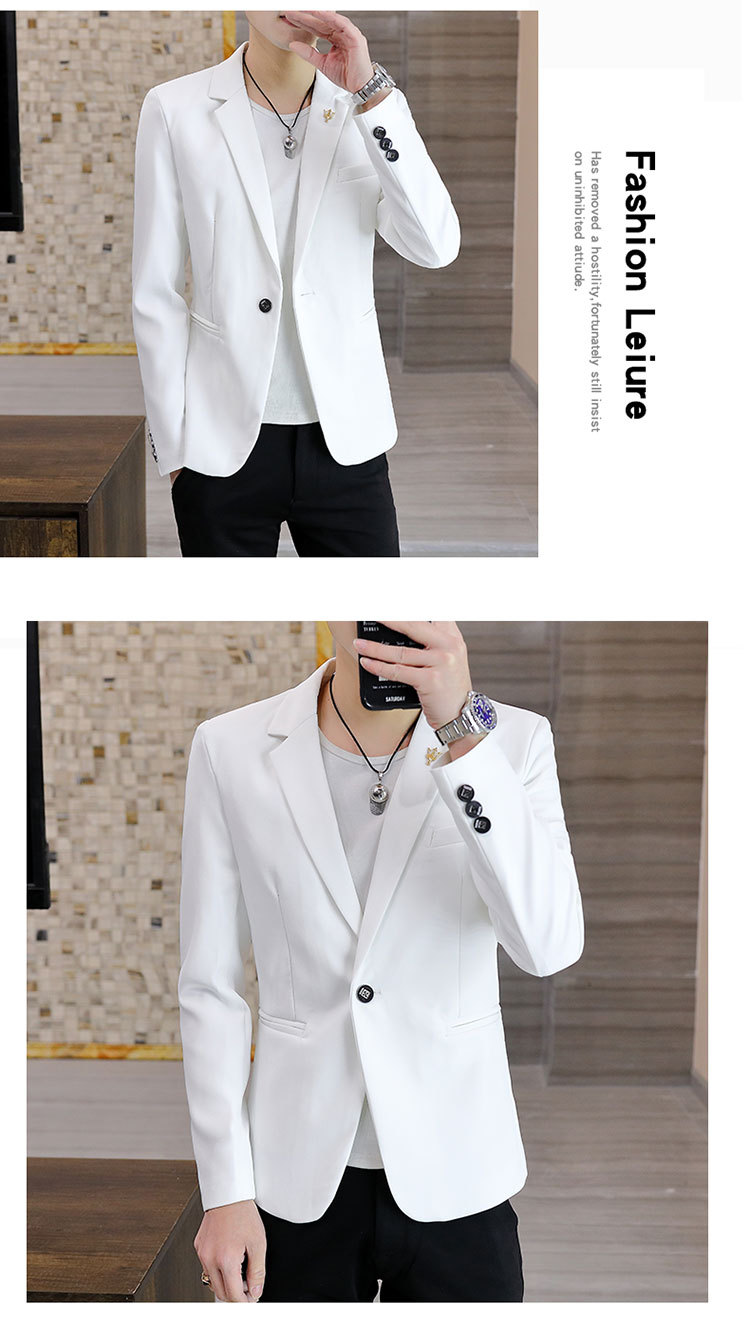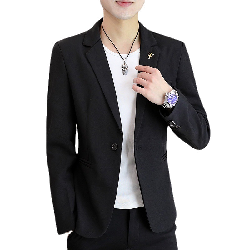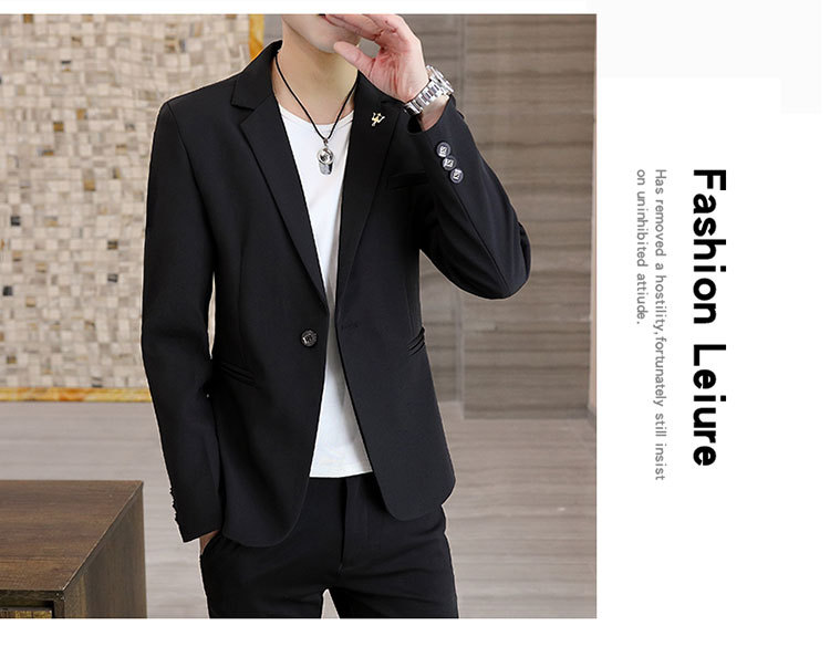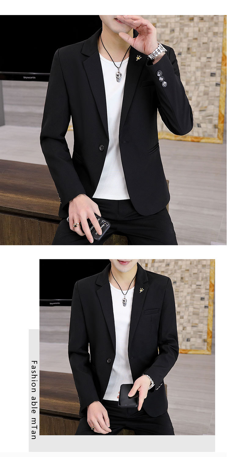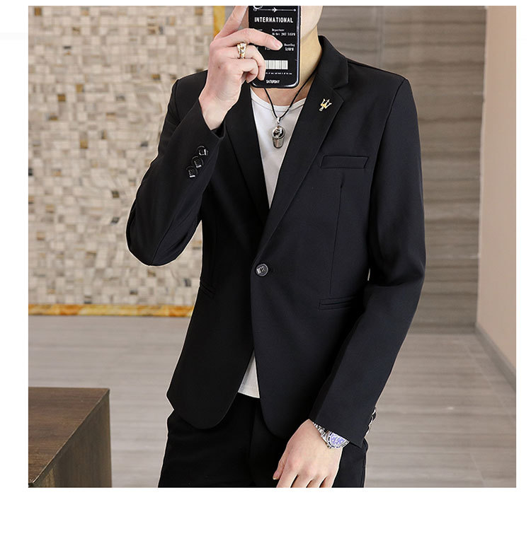 새로운 세트 남성 캐주얼 한국 스타일 슬림 핏 싱글 탑 젊은 잘 생긴 성격 작은 세트 재킷 트렌드