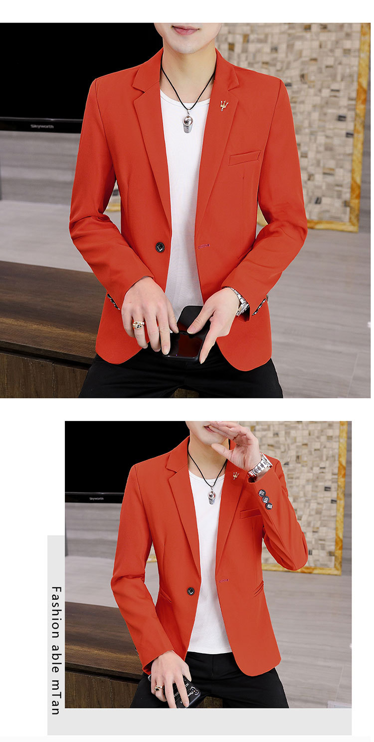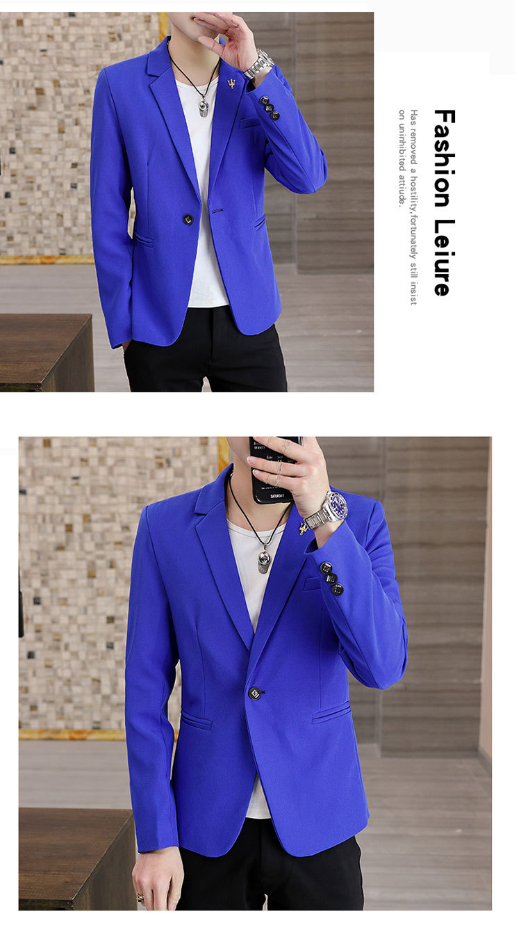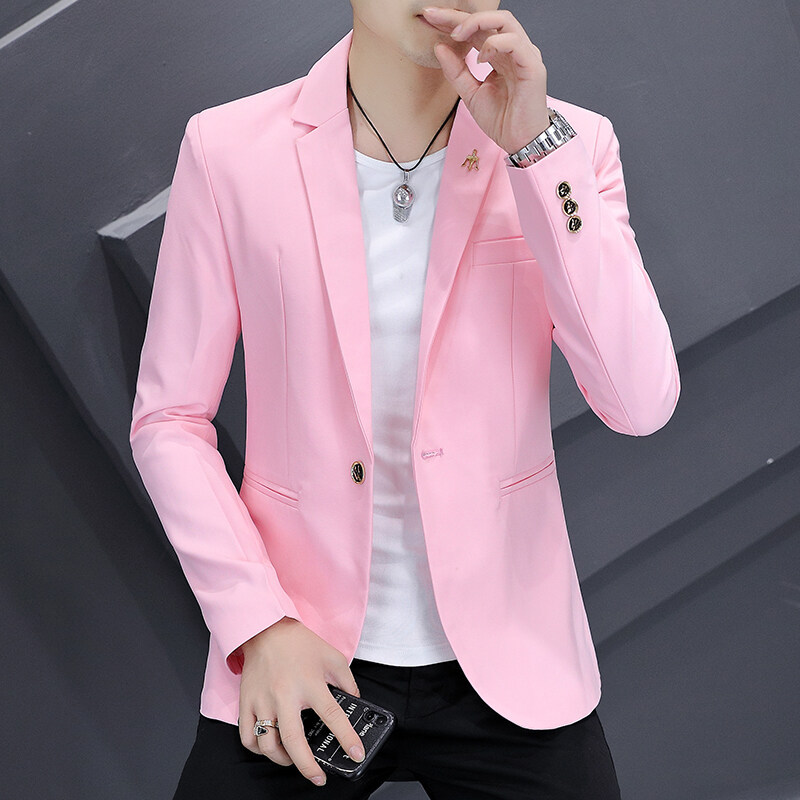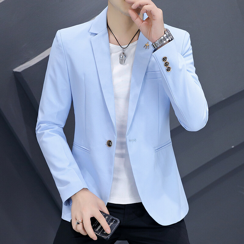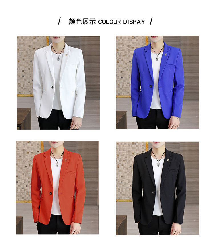 새로운 세트 남성 캐주얼 한국 스타일 슬림 핏 싱글 탑 젊은 잘 생긴 성격 작은 세트 재킷 트렌드
