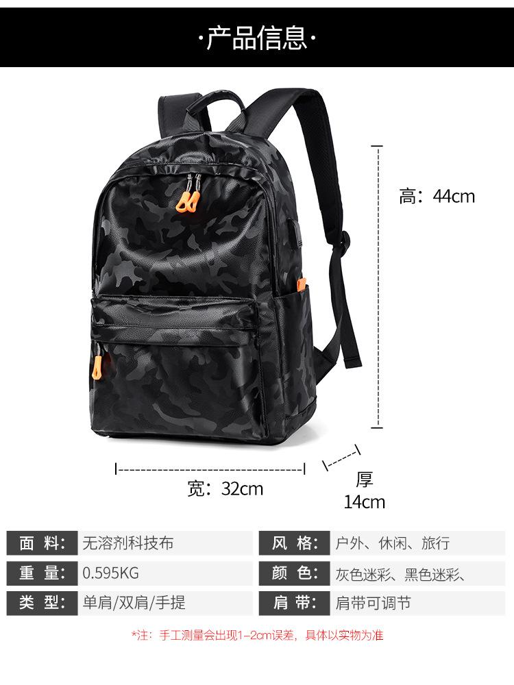 국경을 넘는 새로운 스타일의 백팩, 한국 스타일의 트렌디하고 패셔너블한 위장무늬 컴퓨터 백팩, 대학생 가방, 야외 여행 가방, 남성용