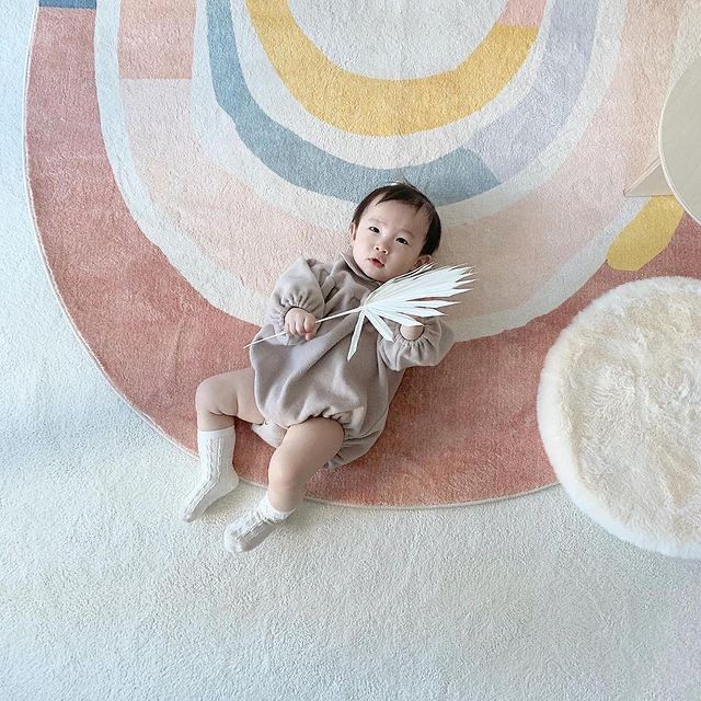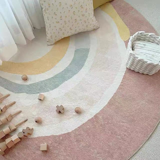 In 레인보우 컬러 반원 바닥 매트 어린이 방 장식 공주 침실 침대 옆 담요 크롤링 매트 사진 사진 촬영 소품