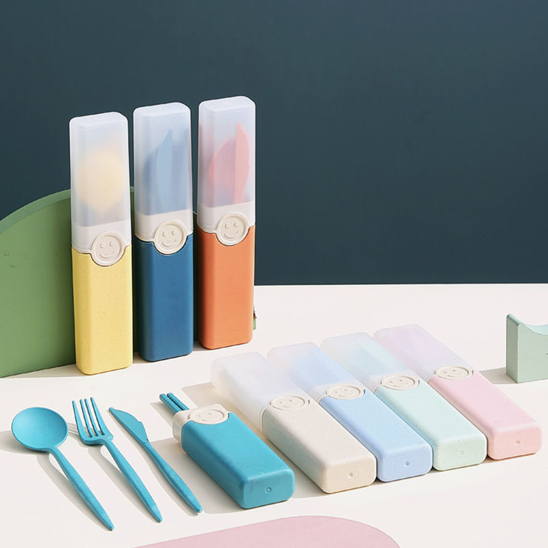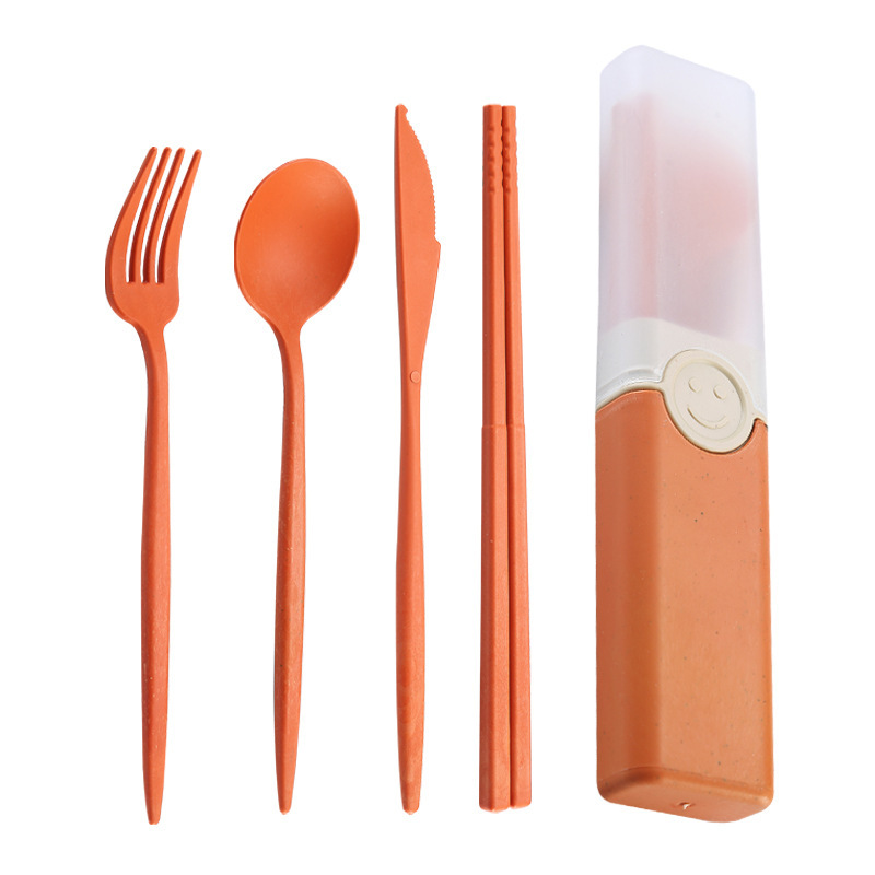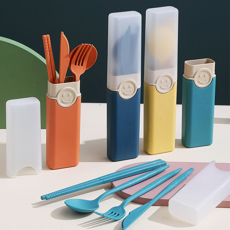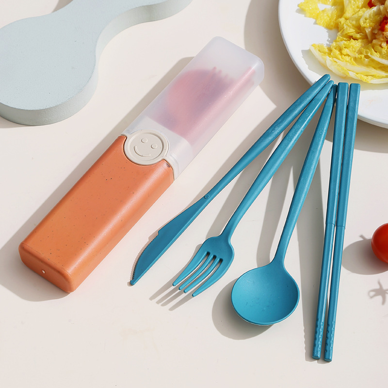 아마존 밀짚 플라스틱 나이프, 포크, 스푼 식기 세트 학생 야외 식당 휴대용 도시락 접이식