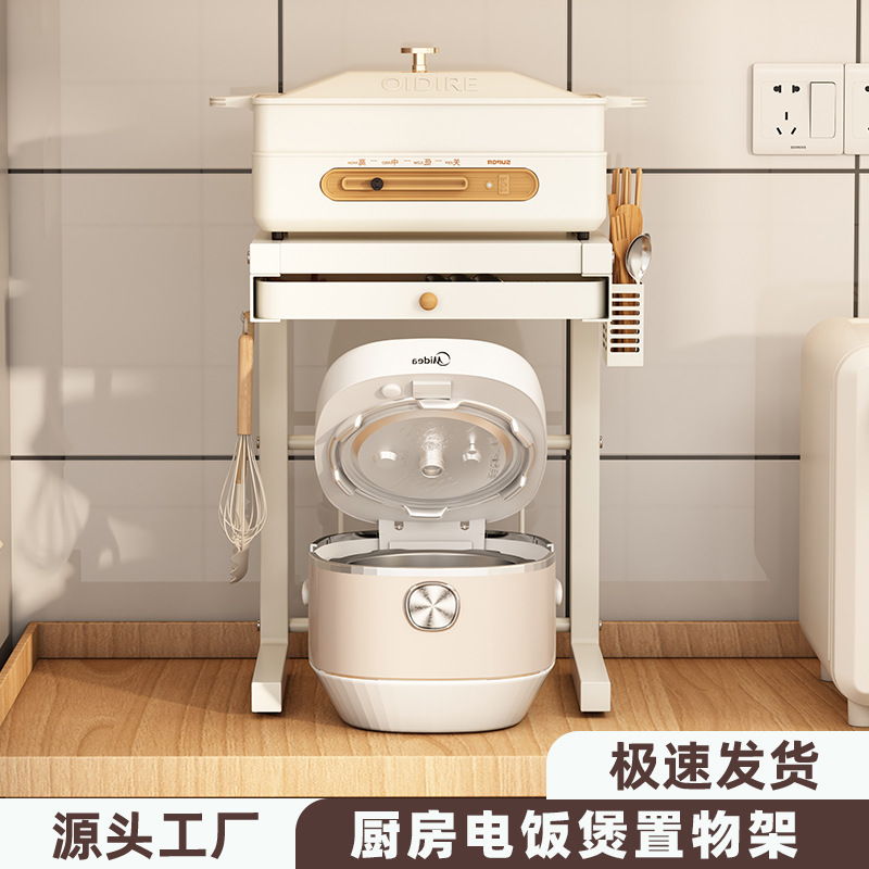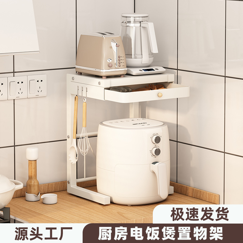 주방 밥솥 보관 랙 조리대 전기 제품 보관 랙 더블 레이어 에어 프라이어 랙 드로어블