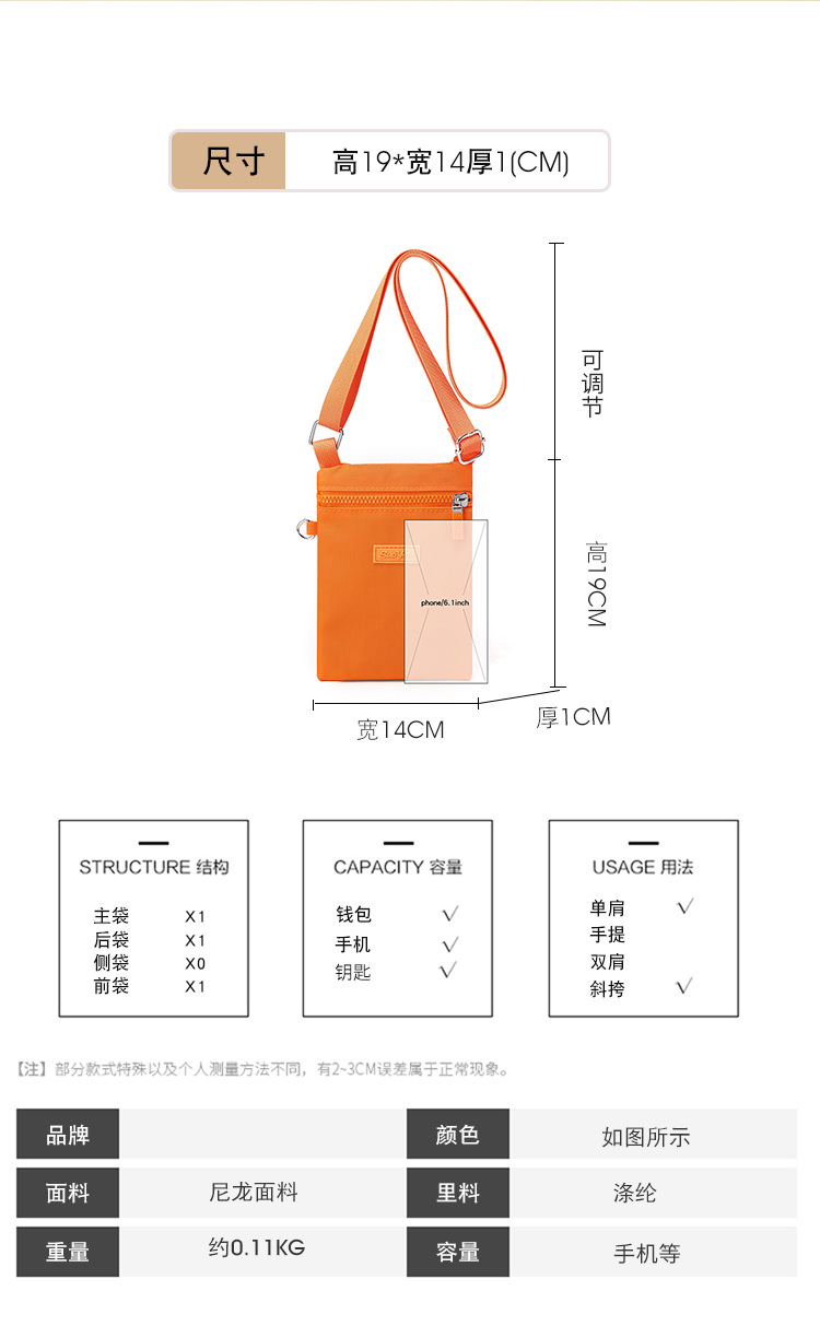 휴대폰 가방 여성용 크로스백 2026 신상 한국 스타일 나일론 가방 캐주얼 숄더백 작은 사각 가방 목걸이 가방 동전 지갑