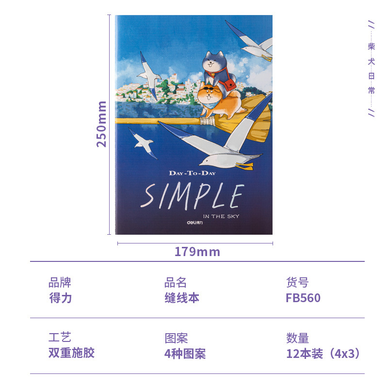 델리 FB560 스티치 메모장 펜 노트북 B5 노트북 초등 및 중등 학교 학생의 워크 북 60 라인북