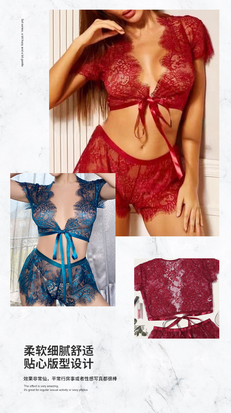 2022 새로운 크로스 보더 무도회 여왕의 원피스 레이스 란제리 세트 아마존 여성의 유혹 홈웨어