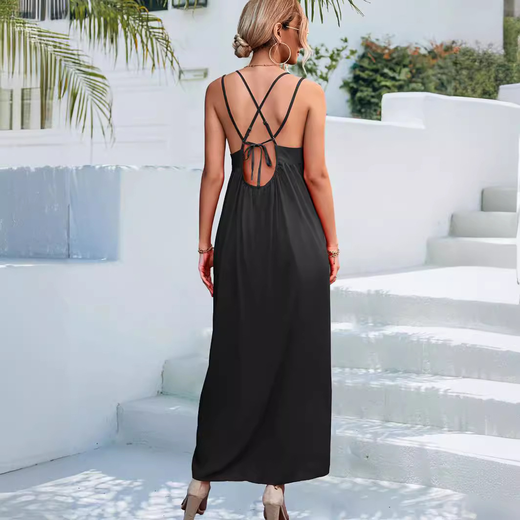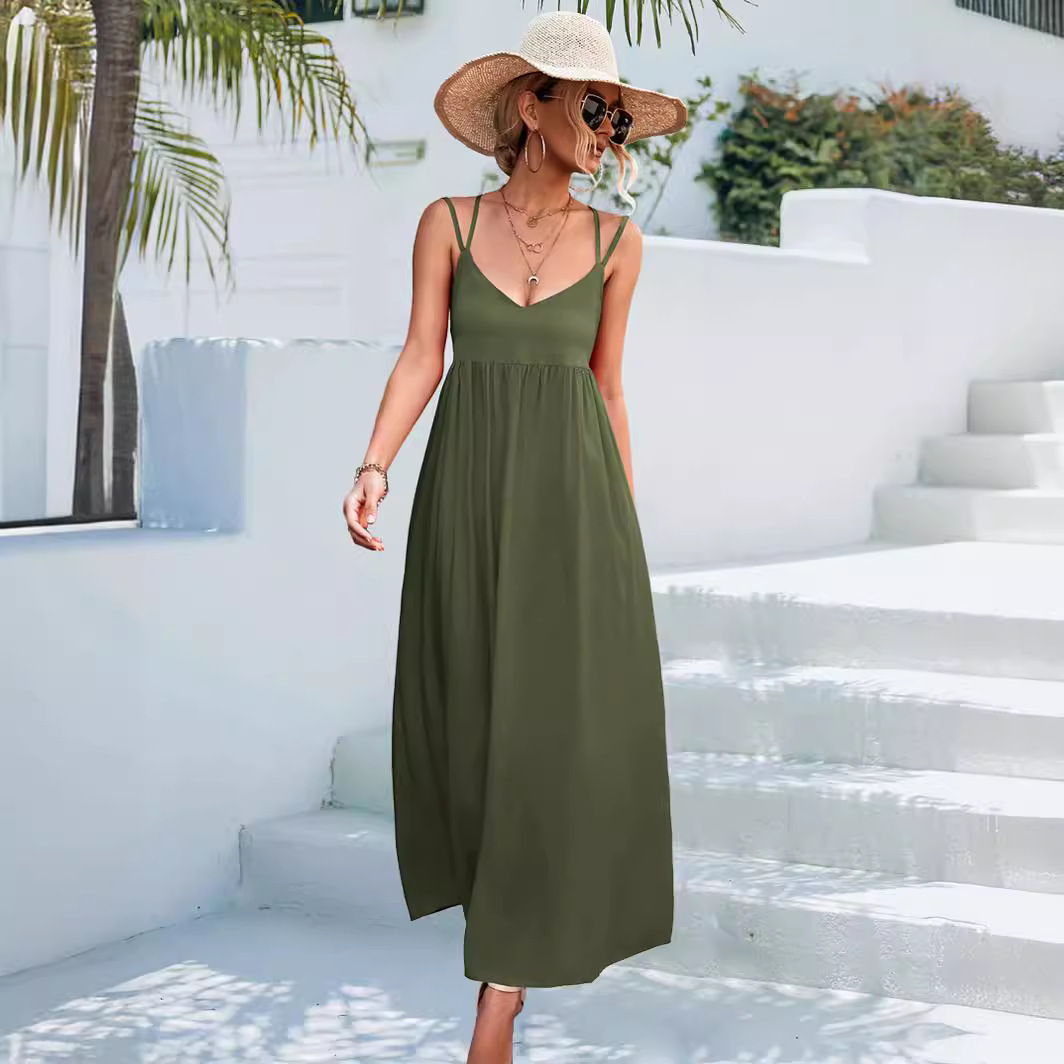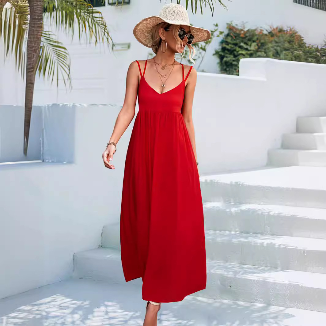 2023 봄과 여름 새로운 아마존 독립 역 뜨거운 폭발 섹시한 V-넥 등이없는 스트랩 원피스 비치 원피스