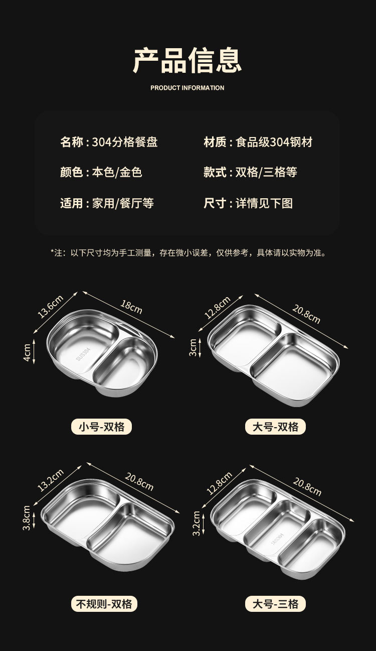 304 스테인레스 스틸 전기 디너 플레이트 스쿨 매점 디너 플레이트 가정용 식기 심화 된 두꺼운 접시 어린이 디너 플레이트