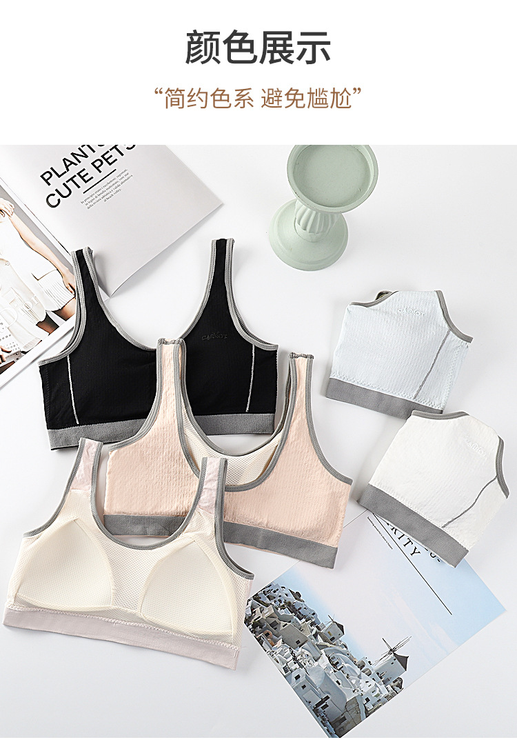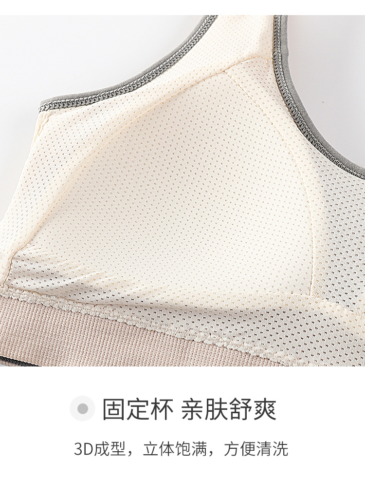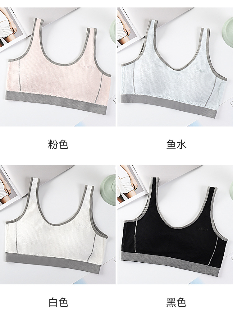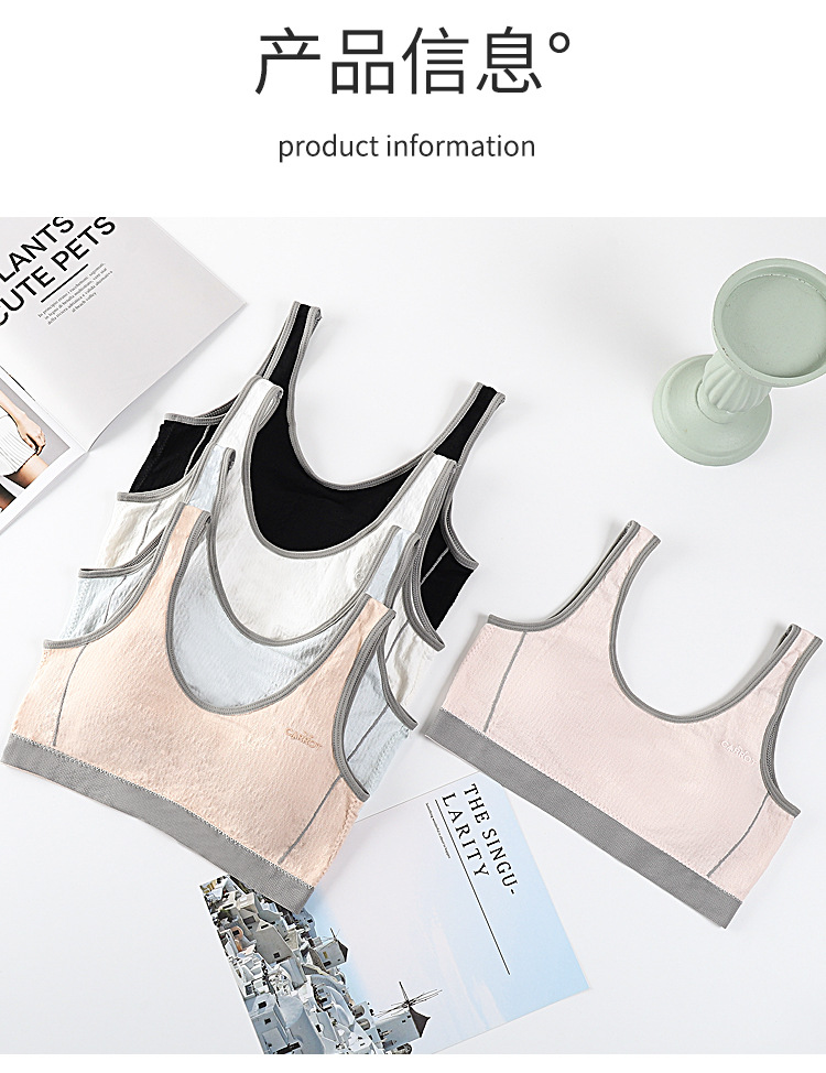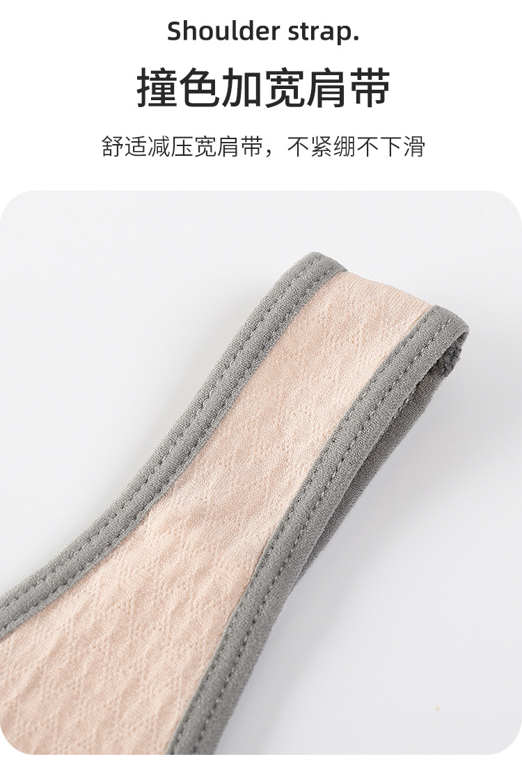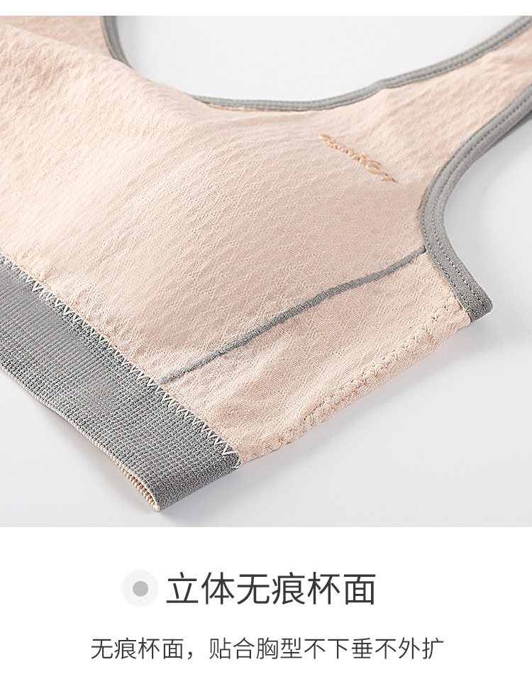 【特点】无缝工艺锦纶面料,轻薄柔软,撞色设计,立体滴胶字母装饰,宽肩带,蚕丝蛋白透气内里,乳胶固定杯。