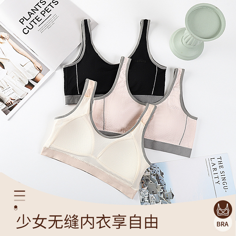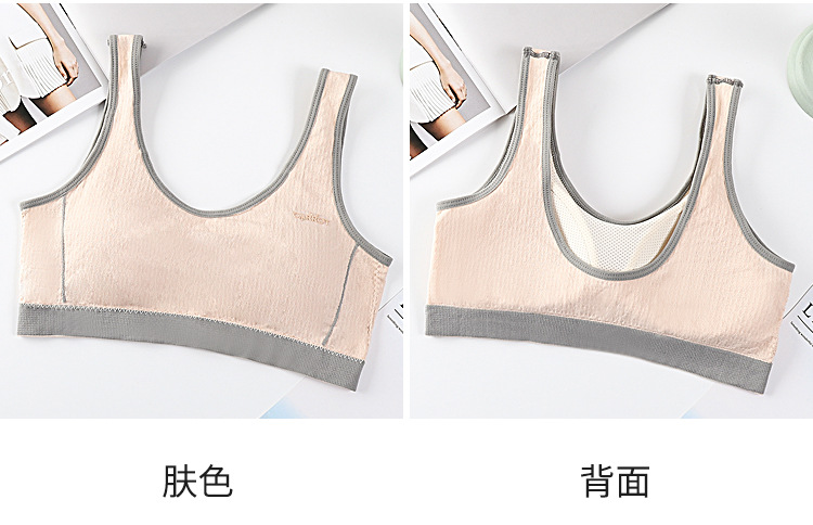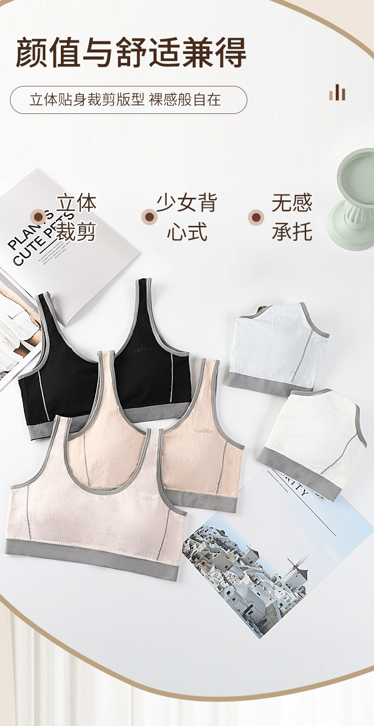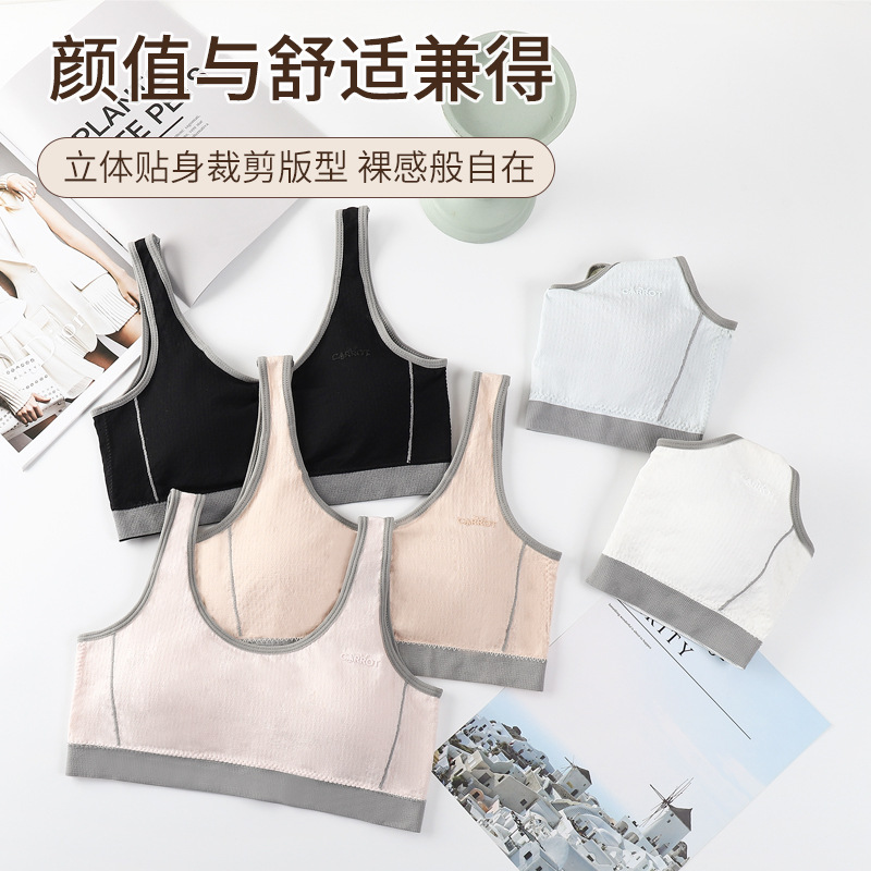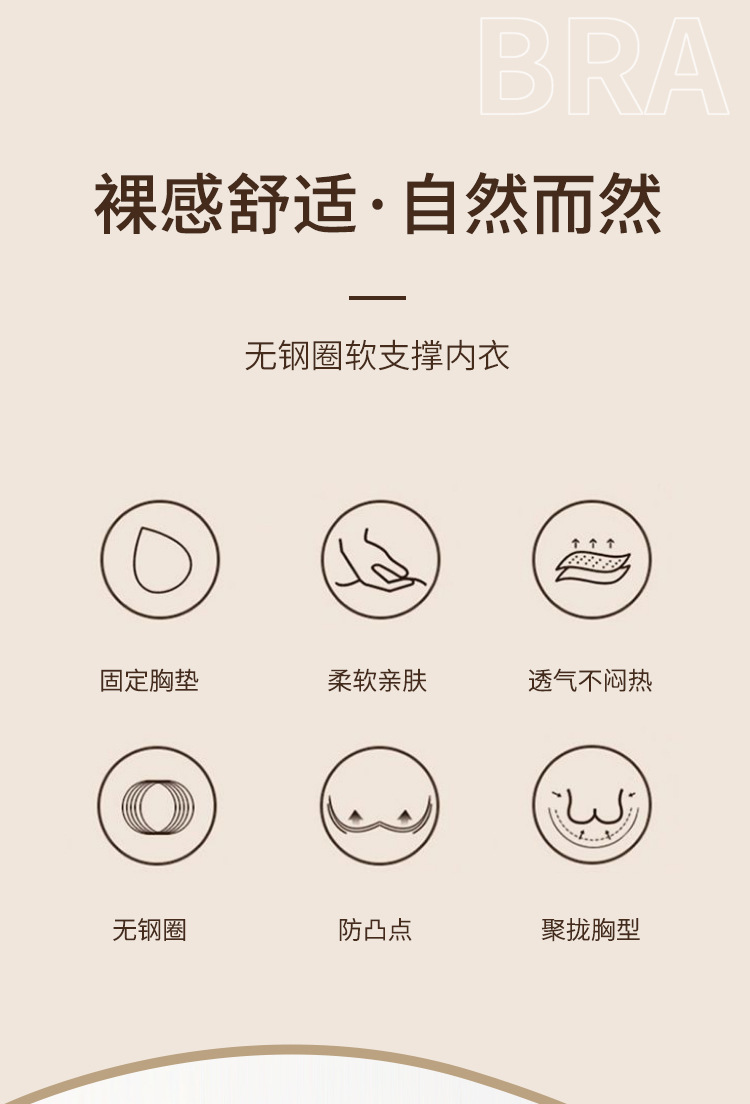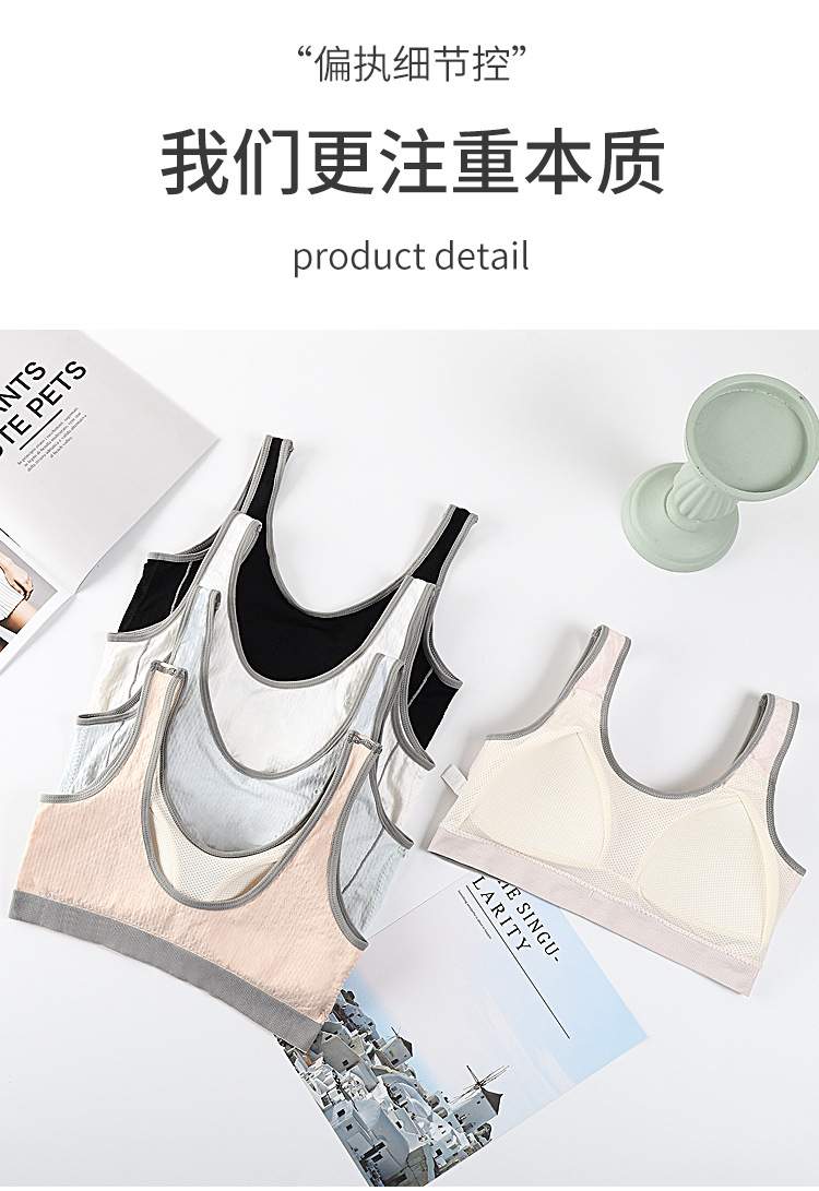 【特点】无缝工艺锦纶面料,轻薄柔软,撞色设计,立体滴胶字母装饰,宽肩带,蚕丝蛋白透气内里,乳胶固定杯。