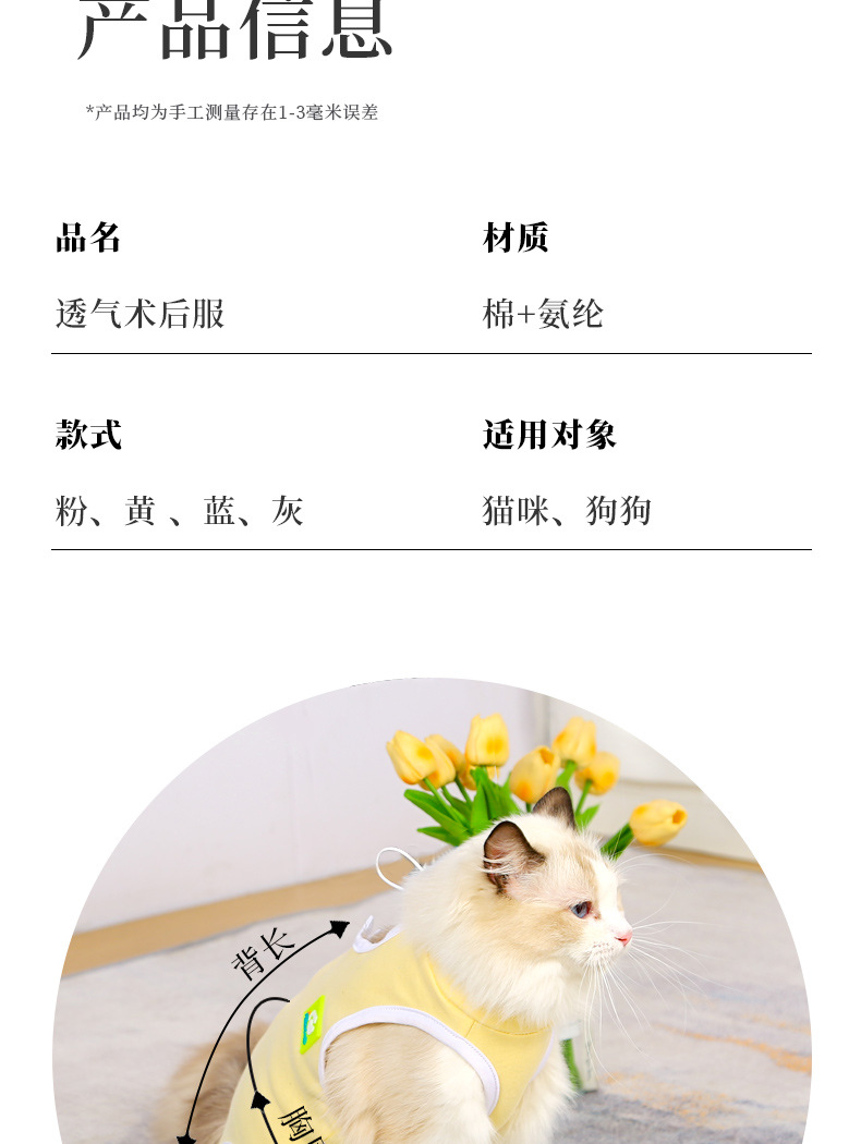 도매 애완 동물 살균 의류 통기성 답답하지 않은 수술 후 의류 핥기 방지 스크래치 방지 고양이 의류 조정 가능한 고양이 살균 의류