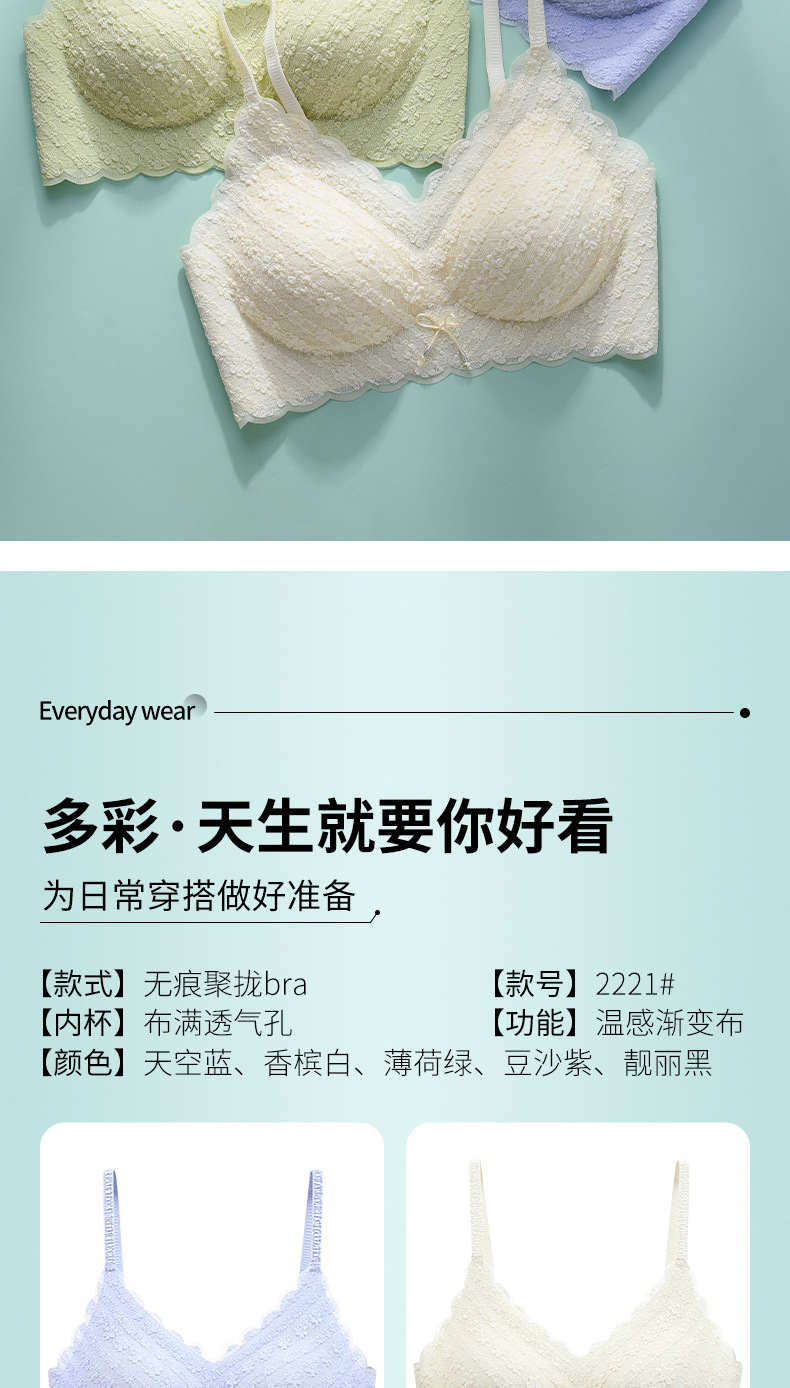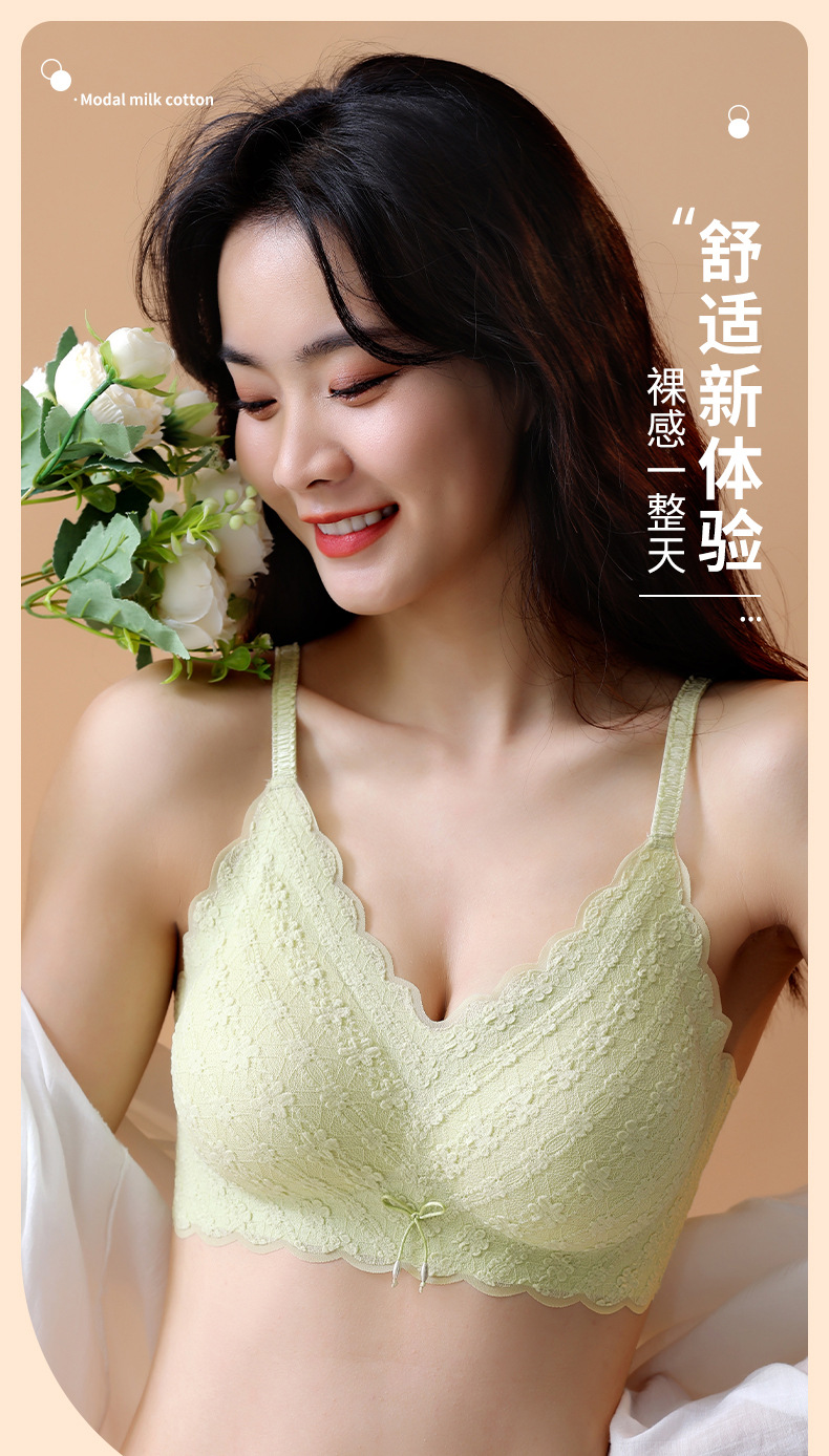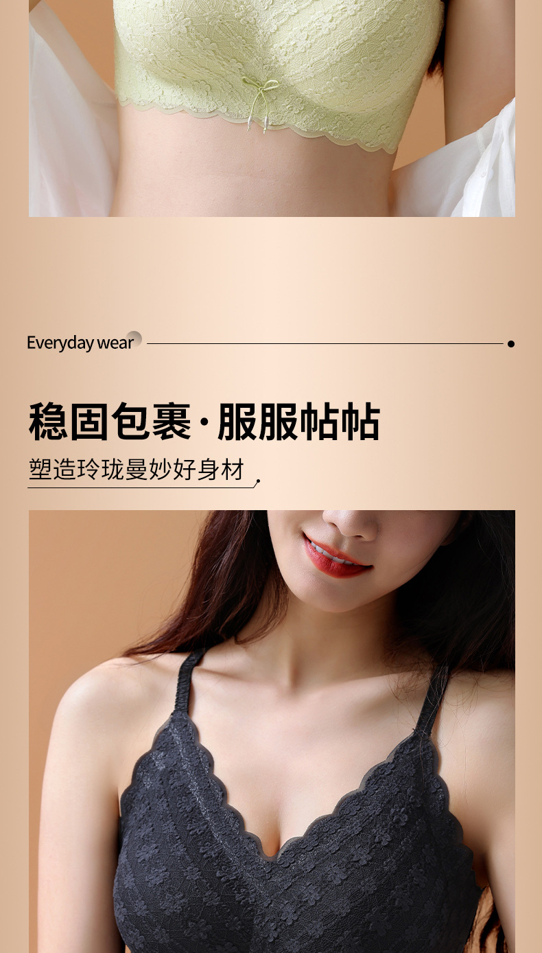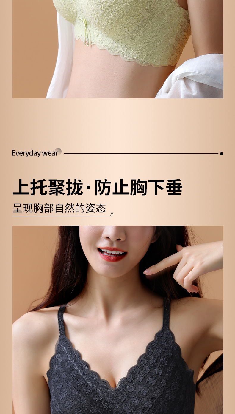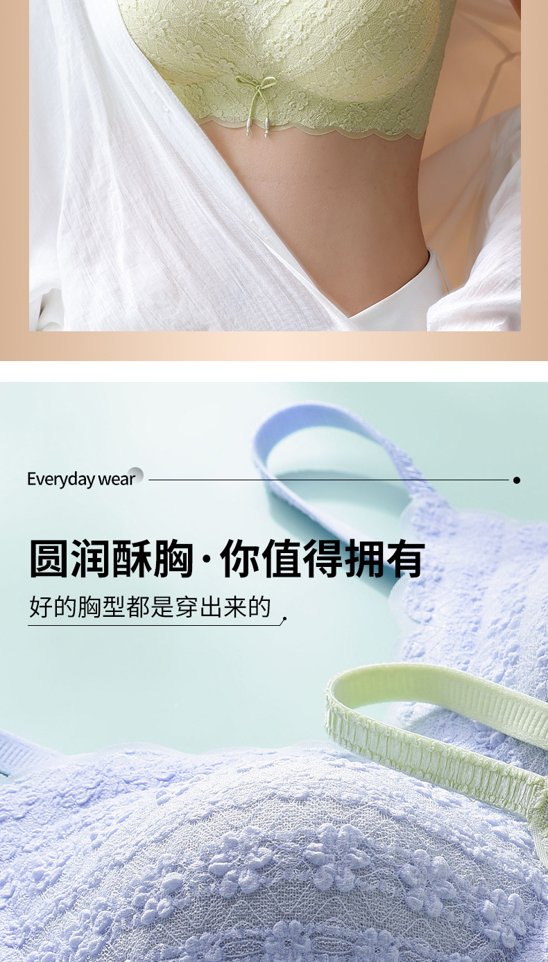 새로운 스타일 레이스 슬링 큰 가슴 작은 라텍스 속옷 여성용 푸시 업 시크릿 노 스틸 링 온도 변화 편안한 통기성 브래지어