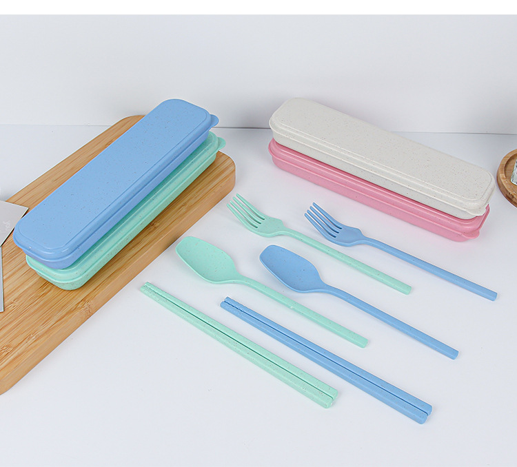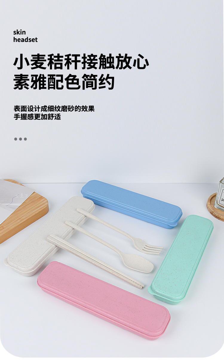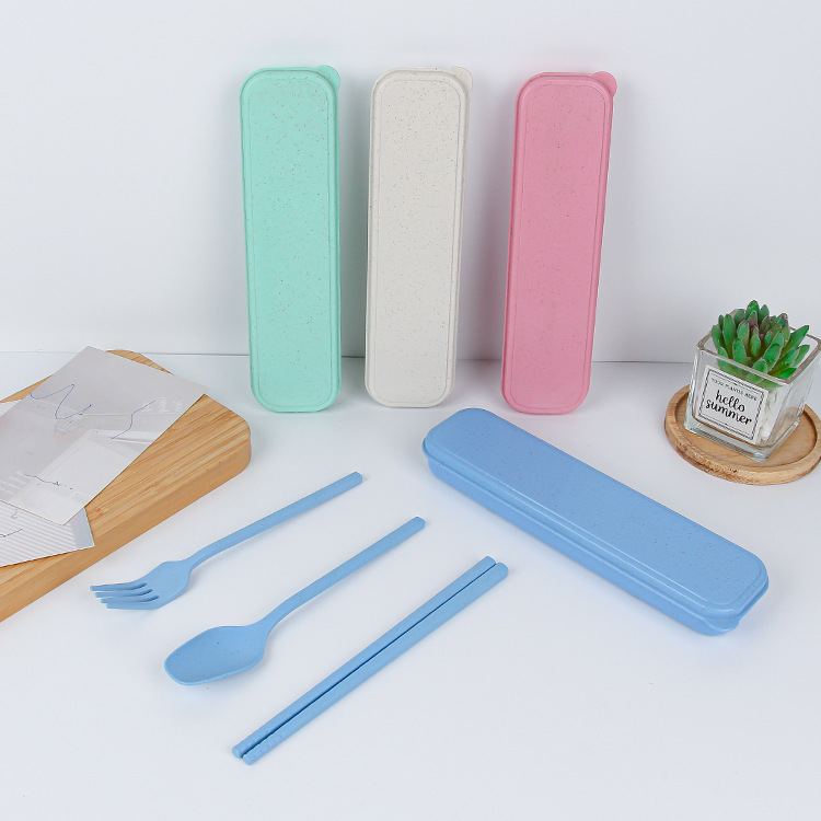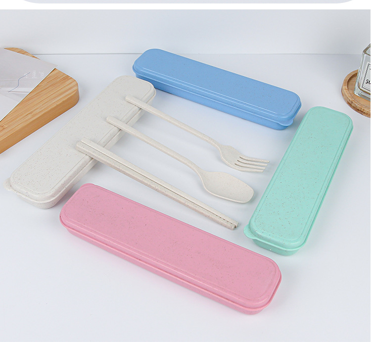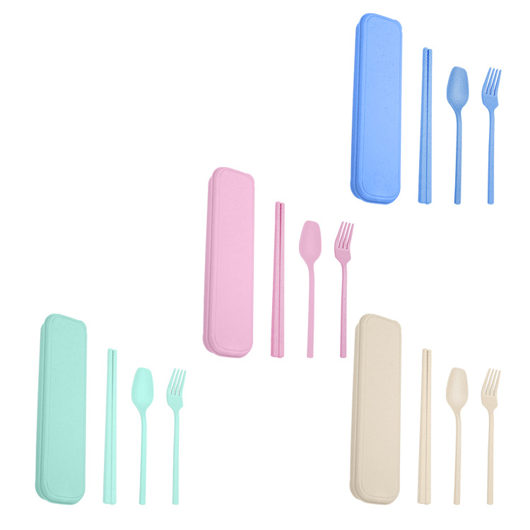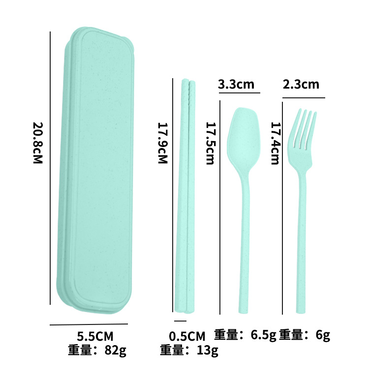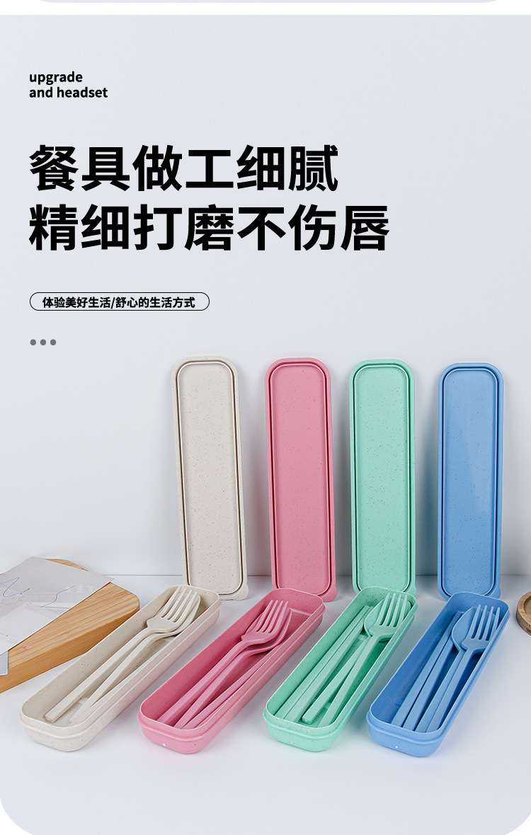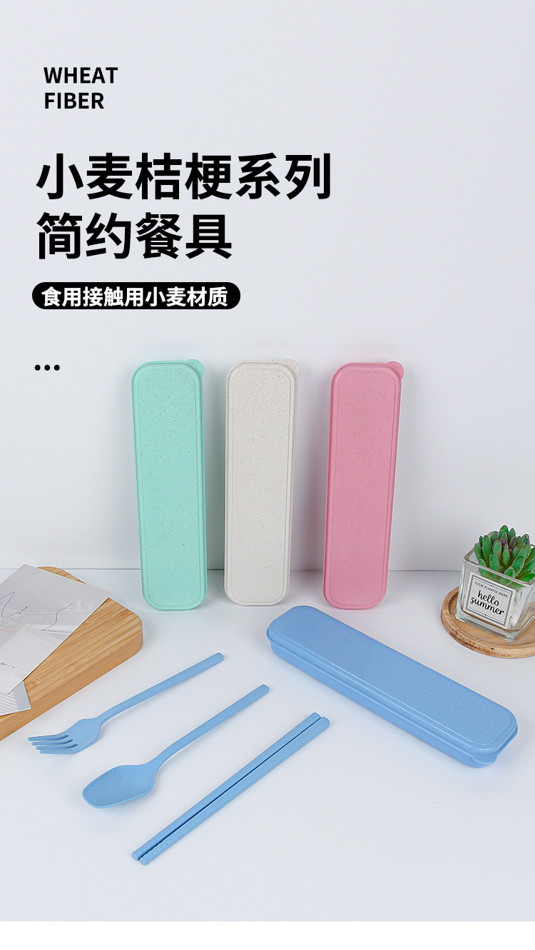 크로스보더 밀짚 식기 스푼 포크 젓가락 3 종 세트 학생 휴대용 식기 보관함 선물 세트 도매