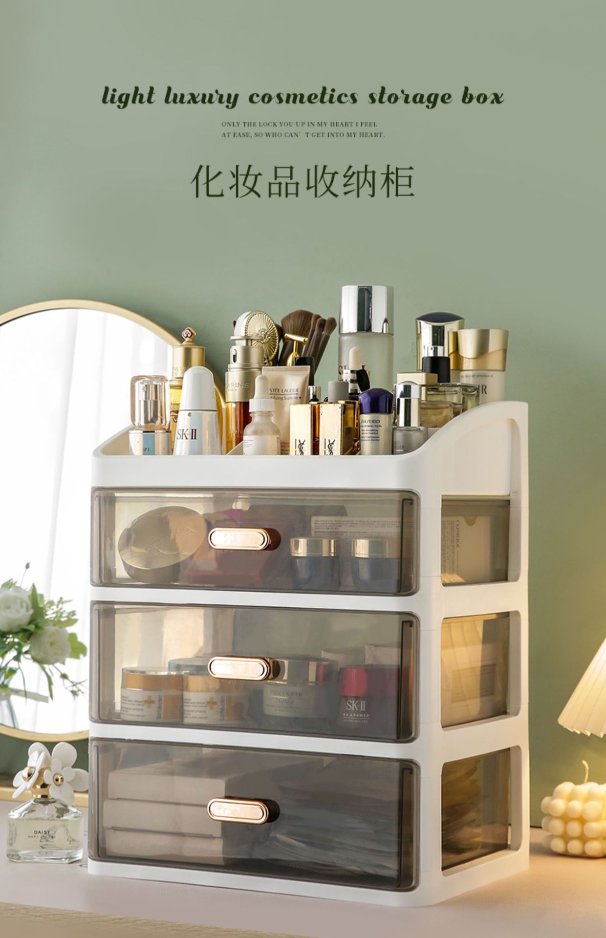 화장품 보관함 서랍 화장대 보관 랙 데스크탑 마스크 스킨 케어 캐비닛 대용량 투명 방진