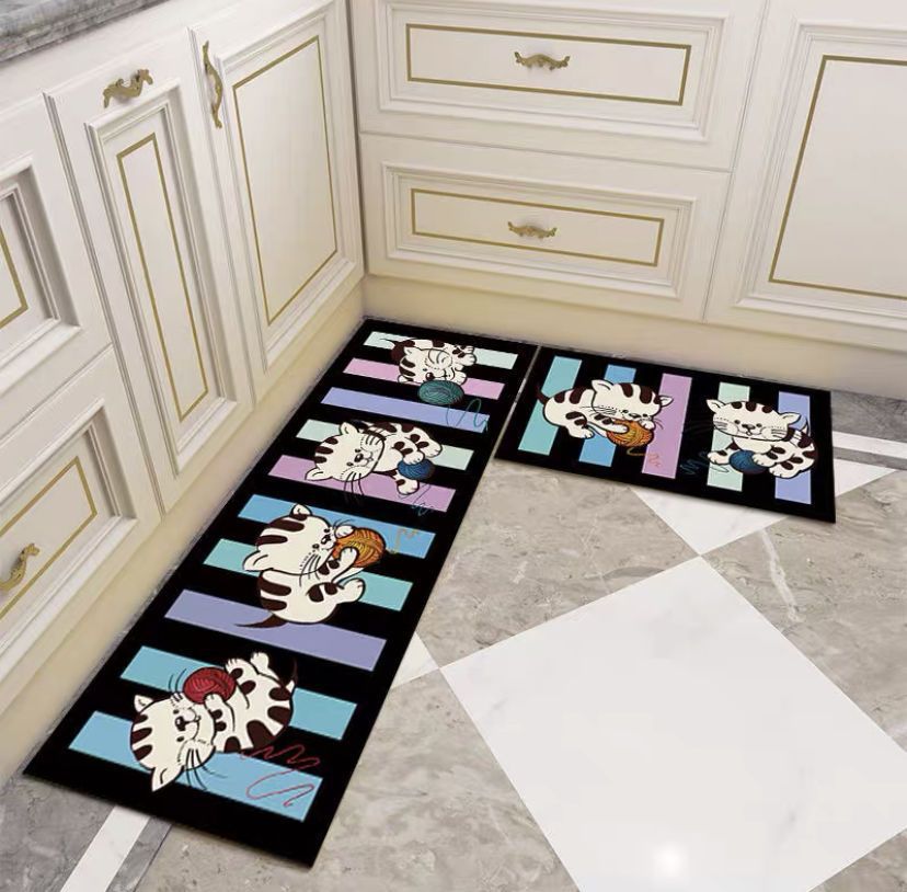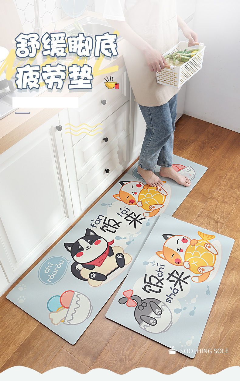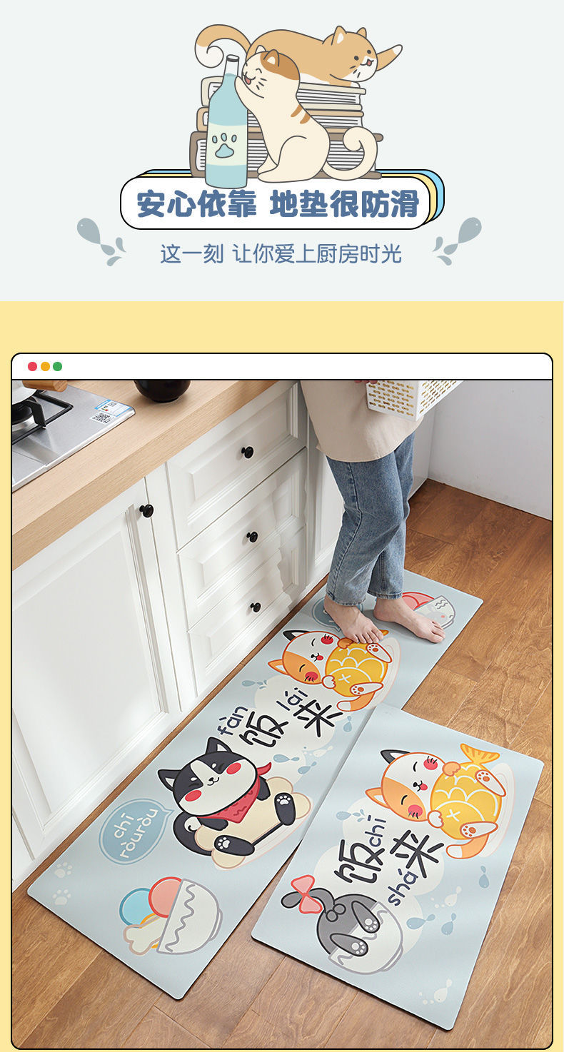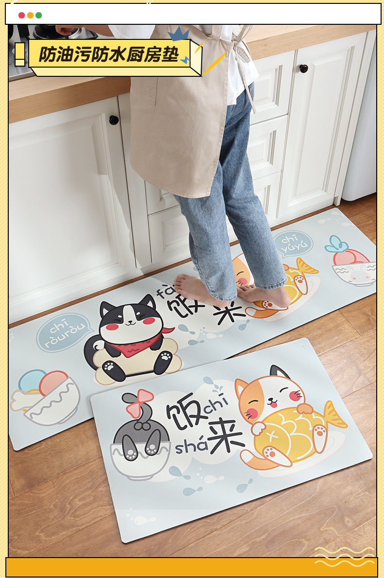 주방 바닥 매트 흡수성 기름 흡수 미끄럼 방지 방수 발 매트 가정용 현관 매트 카펫 침실 만화