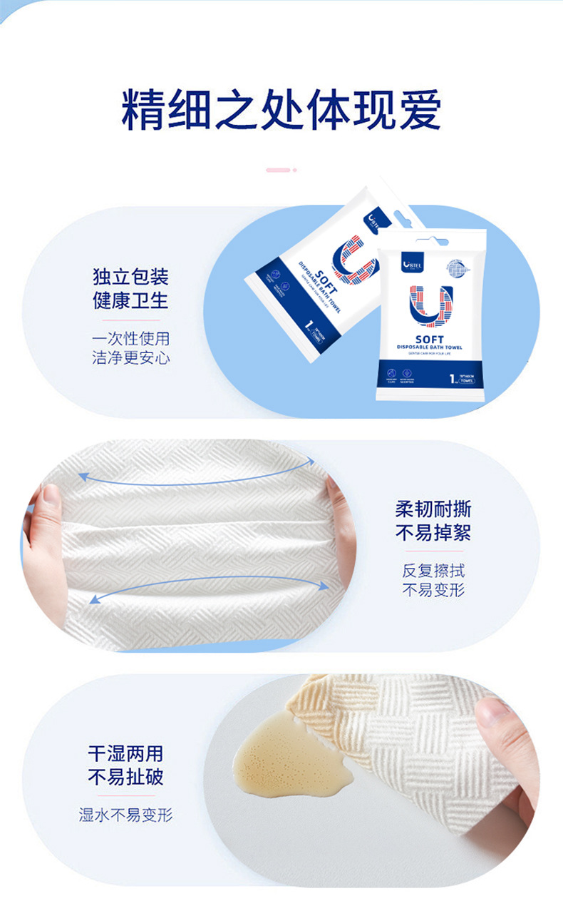 USTEL 일회용 부드럽고 피부 친화적인 목욕타월 두꺼운 개별포장 여행출장 및 호텔용