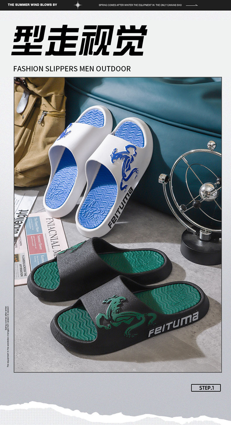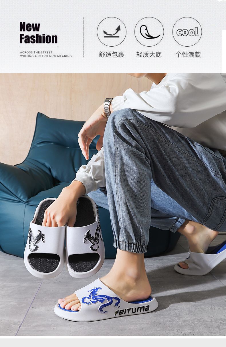 Feitumar 남성용 슬리퍼 트렌디 한 여름 미끄럼 방지 내마모성 가정용 욕실 용 두꺼운 밑창 슬리퍼