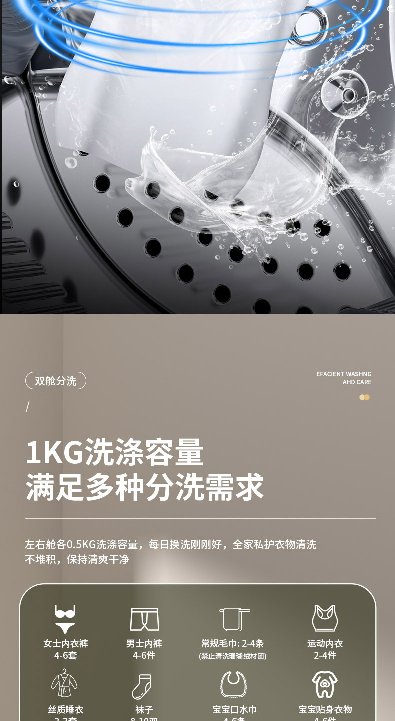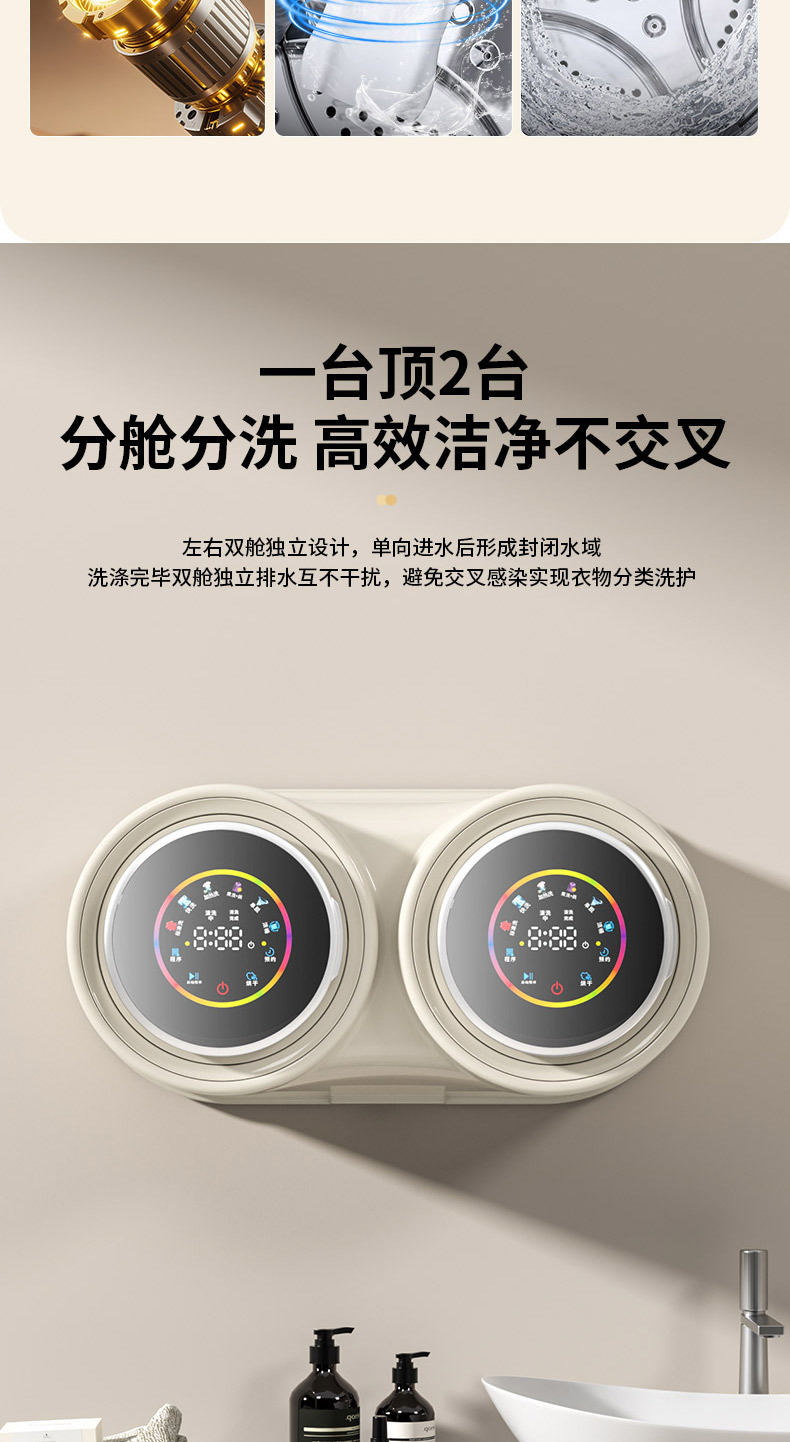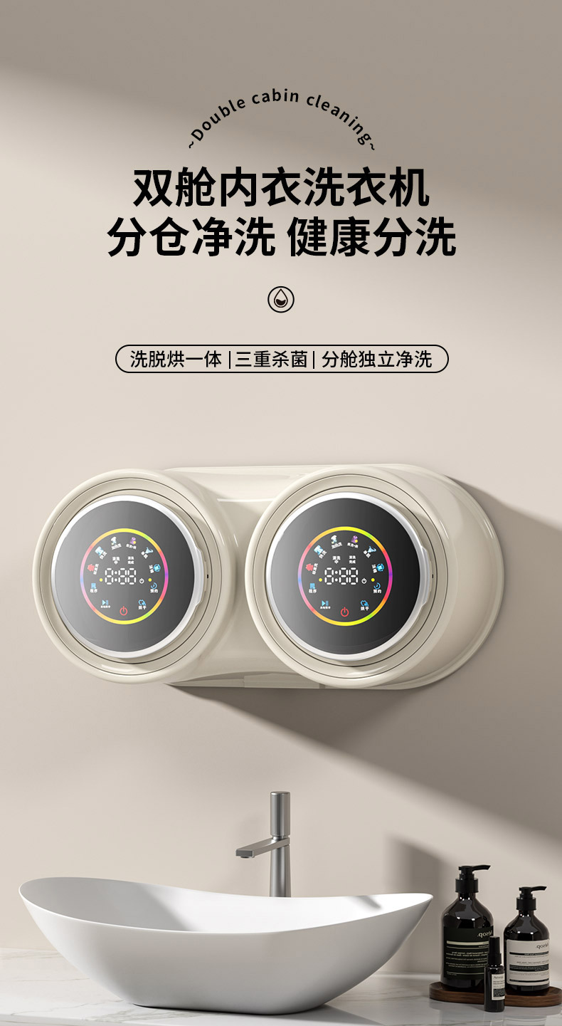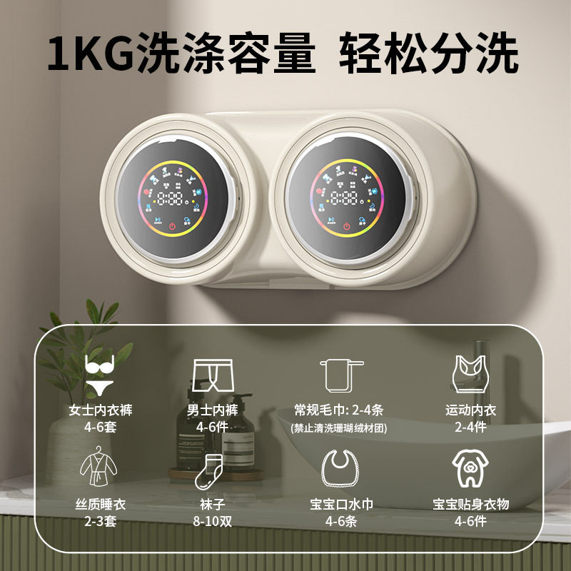 벽걸이형 이중통 세탁기, 속옷 분리 세탁, 자동 소형 전용 미니 양말 세탁, 세탁-탈수-건조 일체형