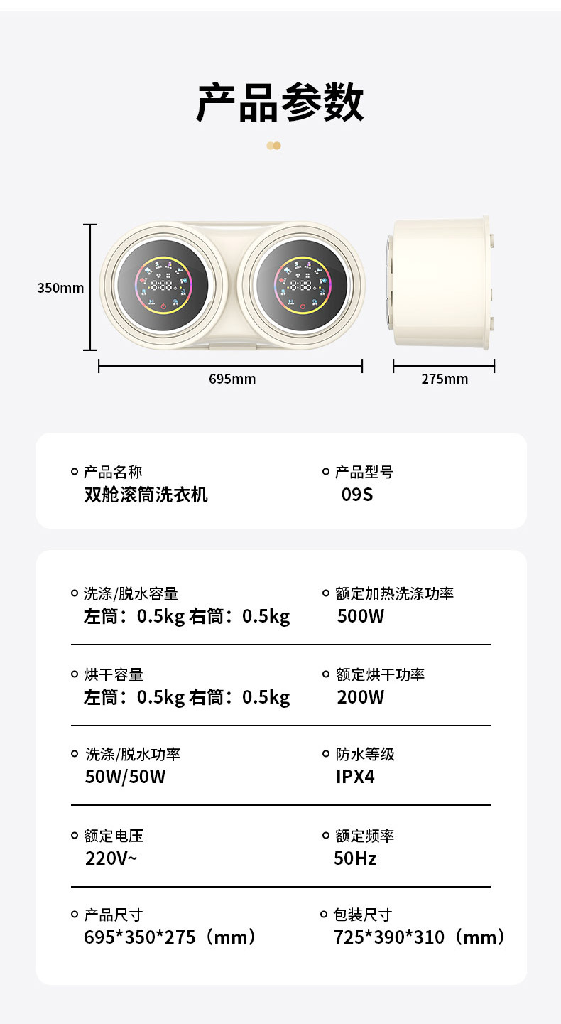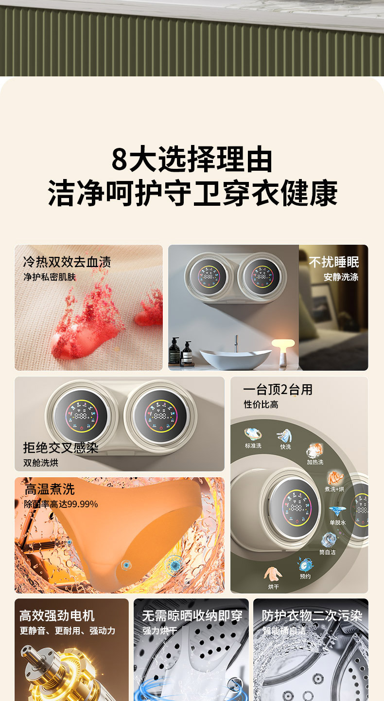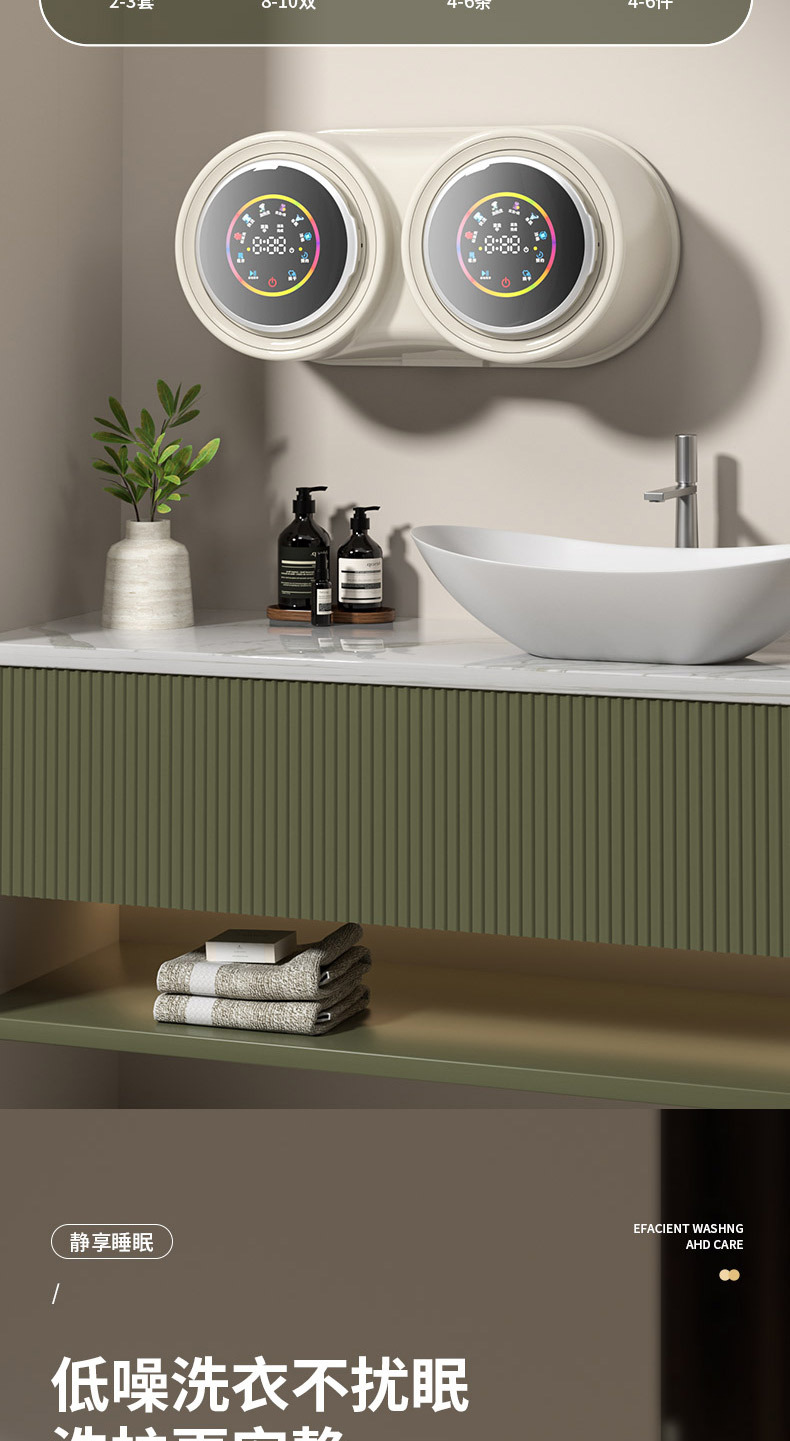벽걸이형 이중통 세탁기, 속옷 분리 세탁, 자동 소형 전용 미니 양말 세탁, 세탁-탈수-건조 일체형