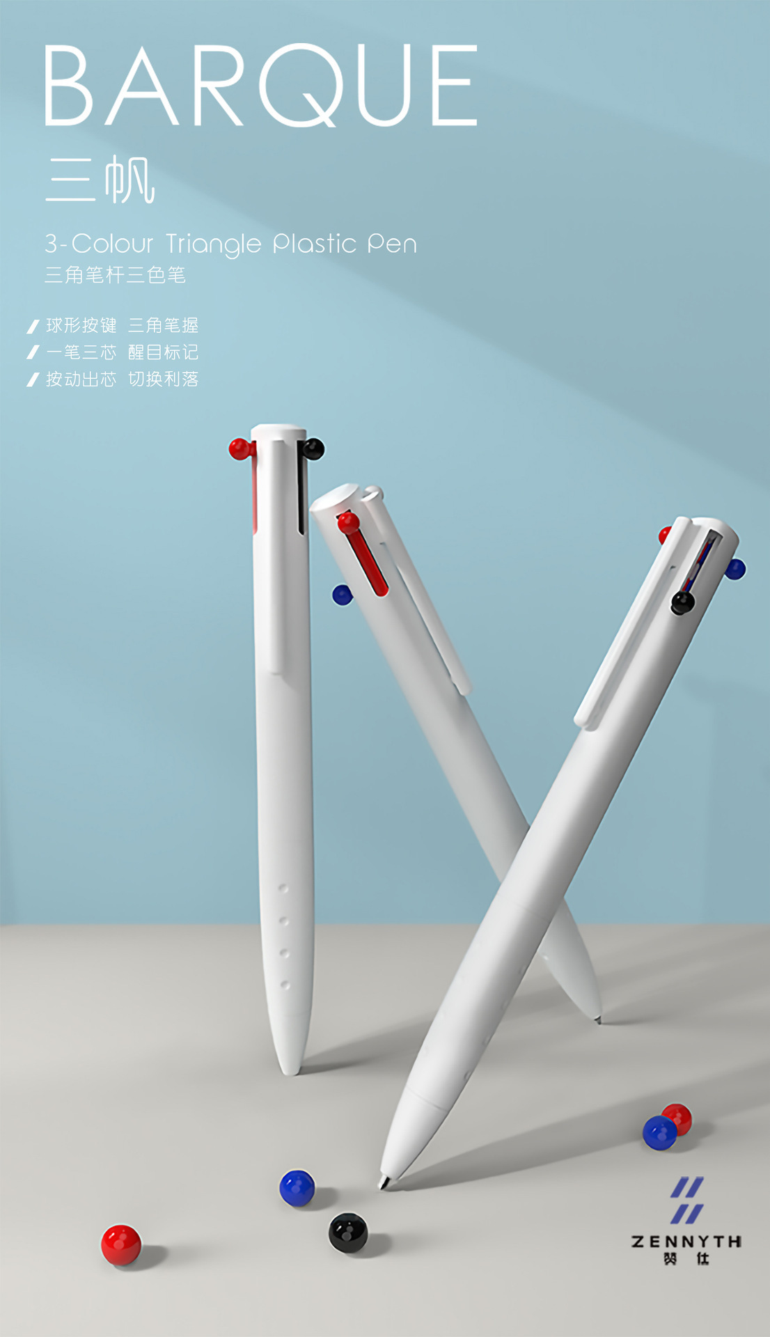 Zanshi Sanfan 3 색 프레스 젤 펜 특수 블랙 블루 레드 3-in -1 다기능 고 가치 손 계정 펜