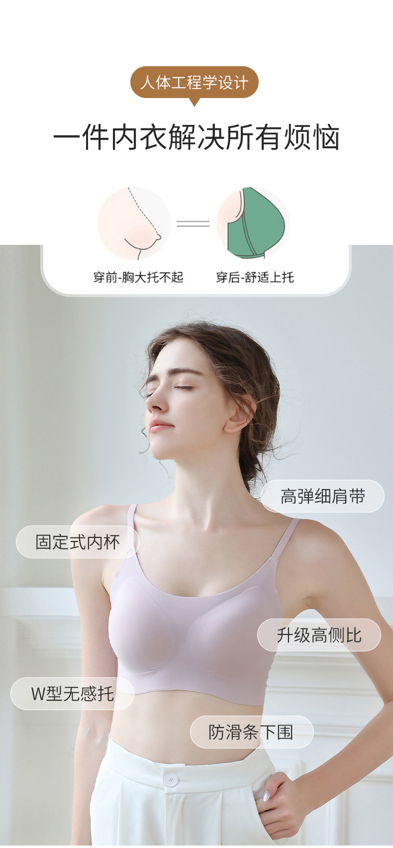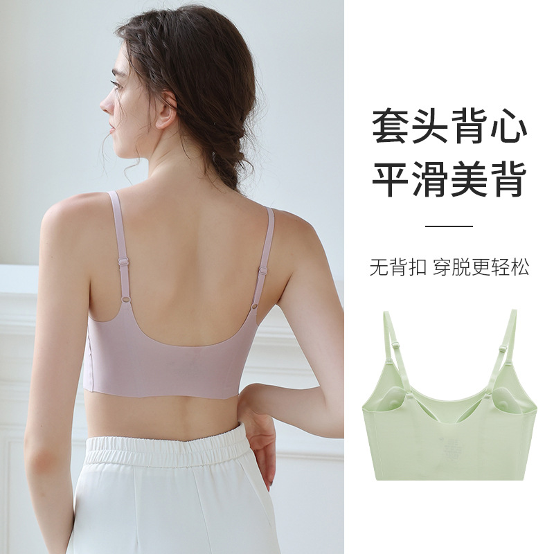 고정 컵 탈착식 가슴 패드 원피스 심리스 슬링 속옷 여성용 원피스 비 테 알몸 수면 브라