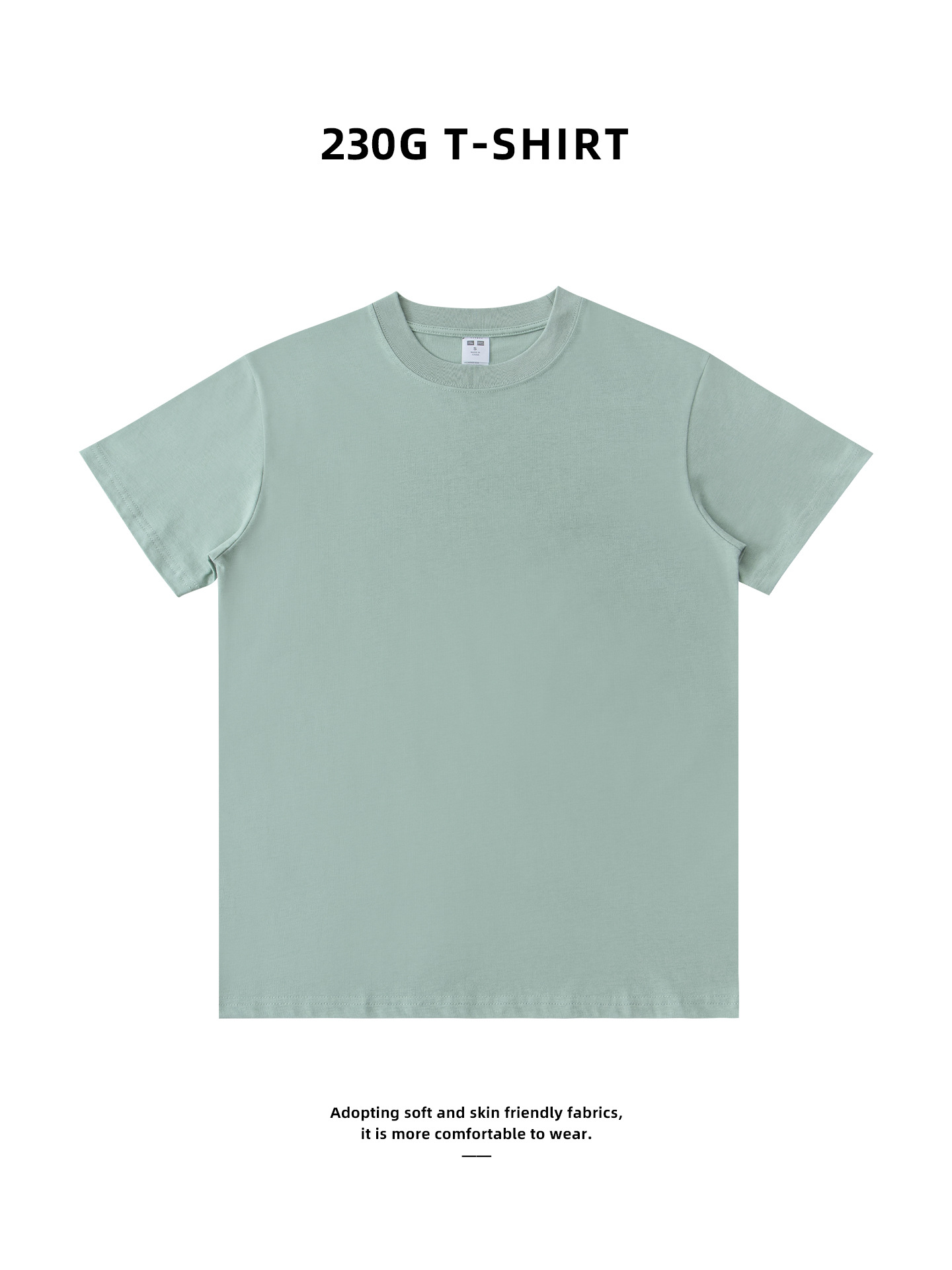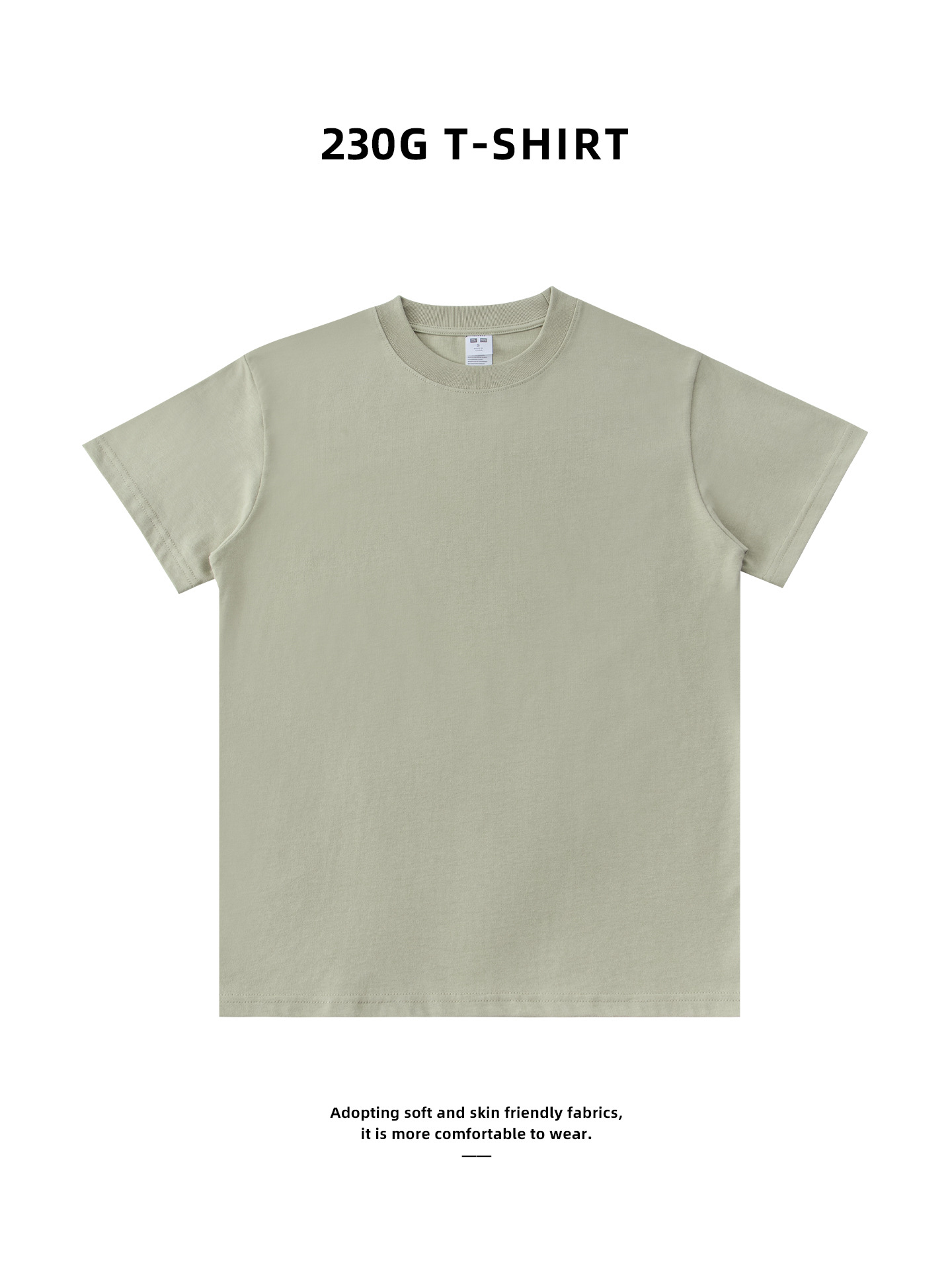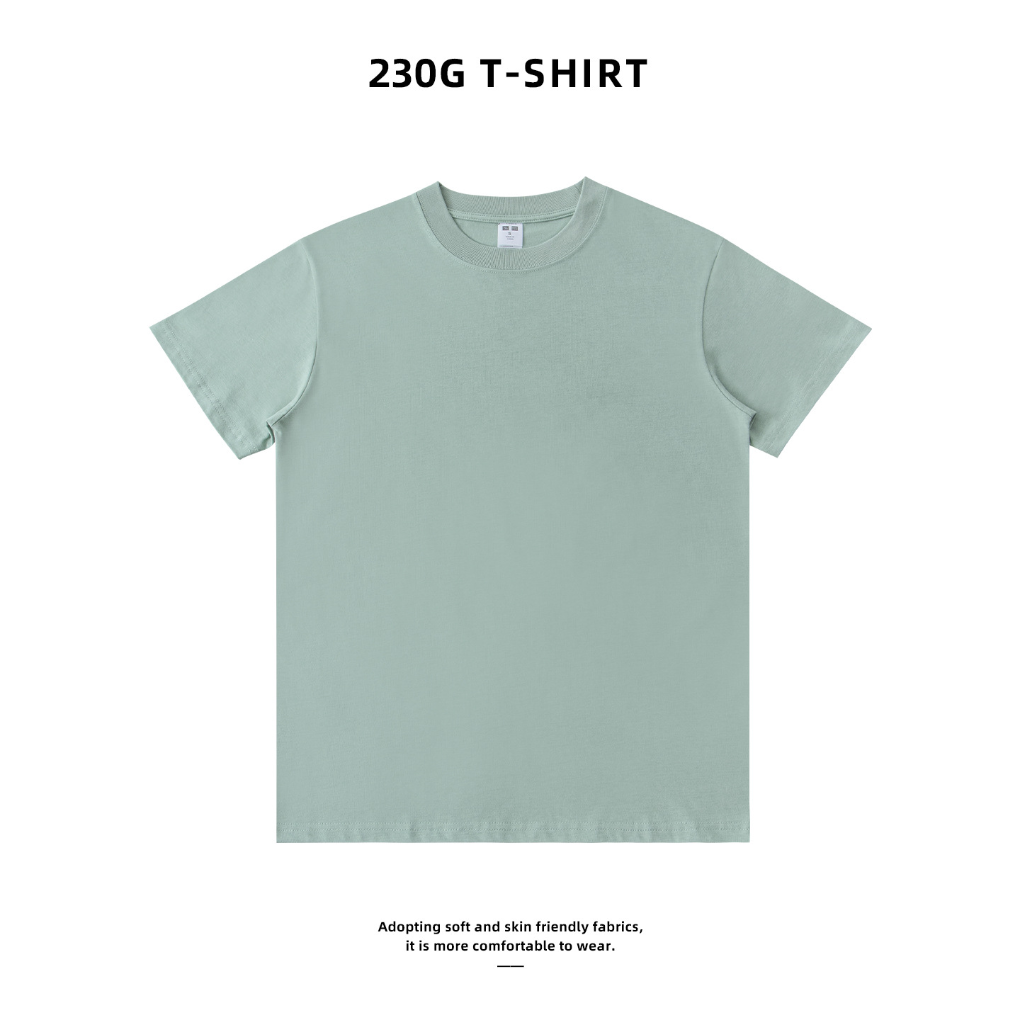 230G 순면 반팔 티셔츠 남성 기본형 라운드넥 다용도 헐렁한 여름 신상 커플용 상의 티셔츠