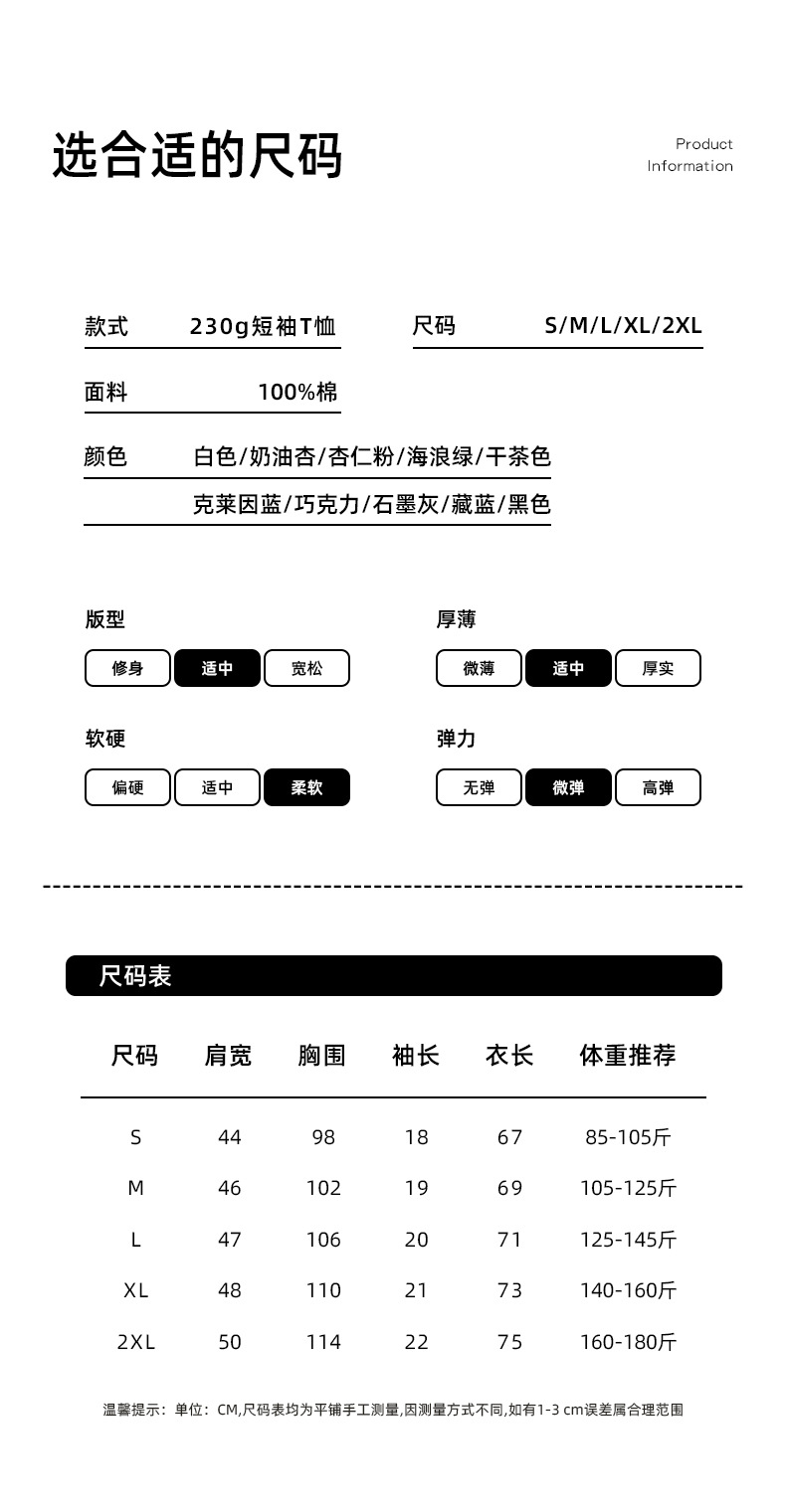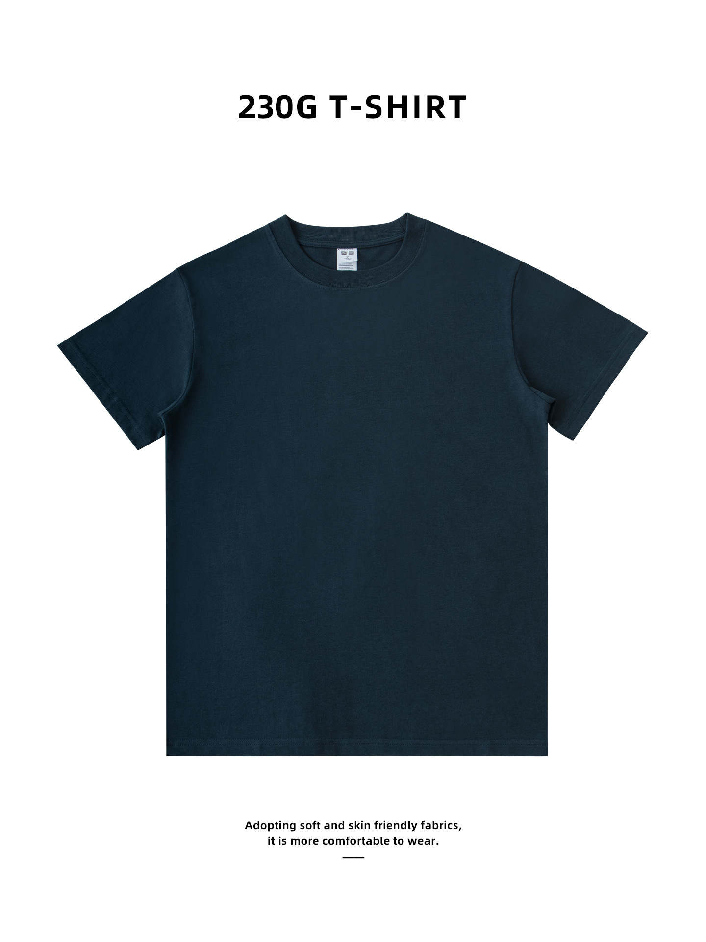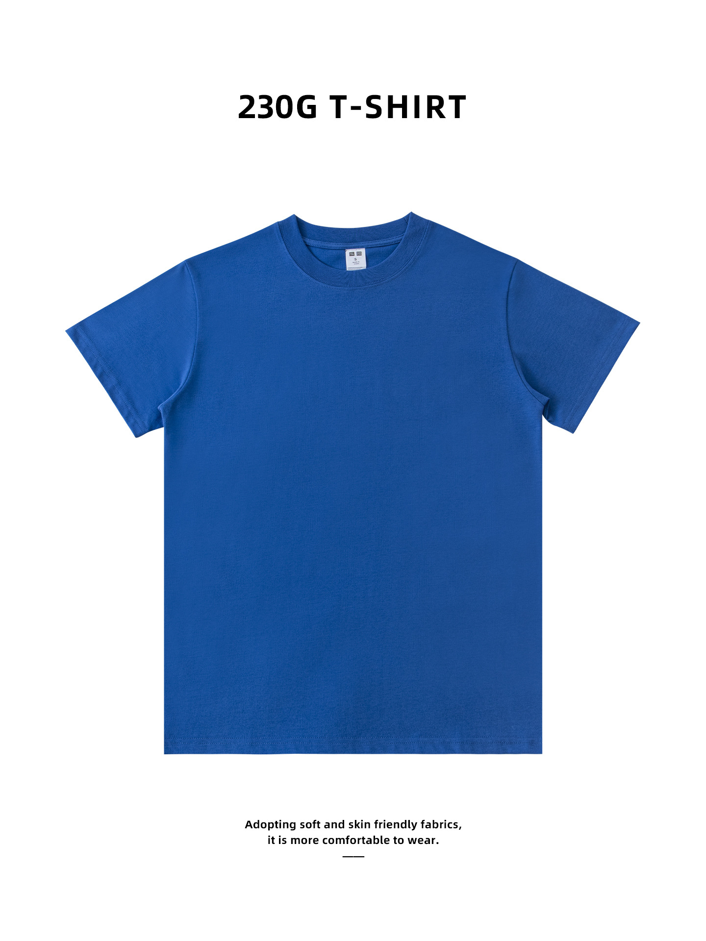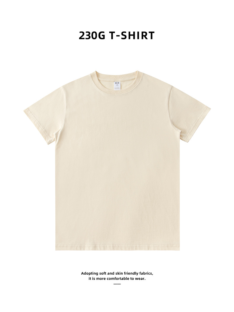 230G 순면 반팔 티셔츠 남성 기본형 라운드넥 다용도 헐렁한 여름 신상 커플용 상의 티셔츠
