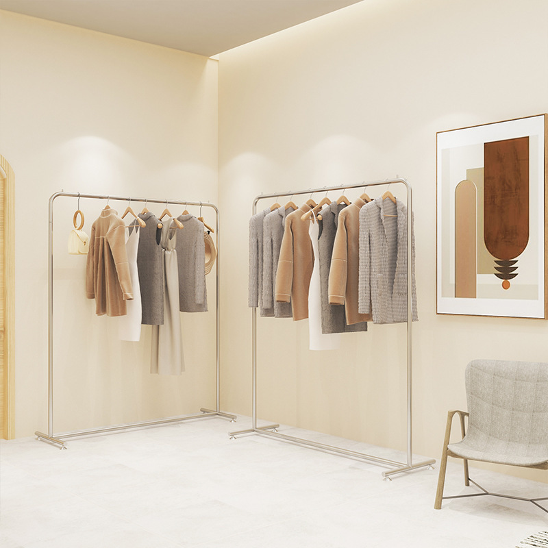 의류 매장 옷걸이 스테인리스 실버 진열대 여성복 매장 아일랜드형 디스플레이 랙 플로어 스탠딩 옷걸이