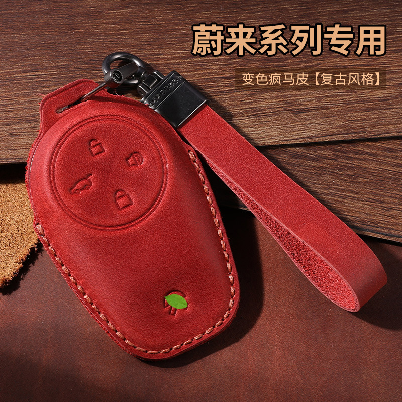 미친 말 가죽 자동차 키 케이스 Weilai 특수 키 케이스 열쇠 고리가있는 수제 키 케이스